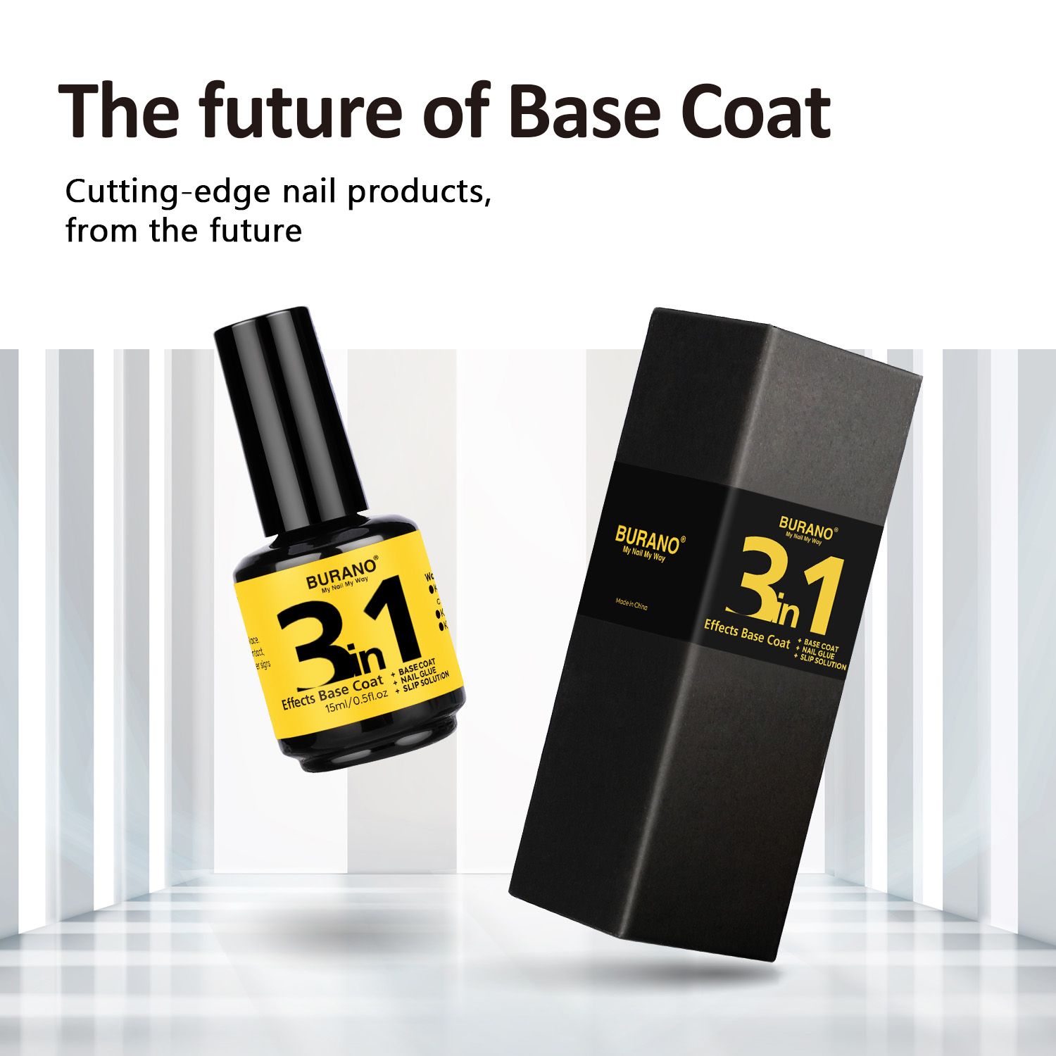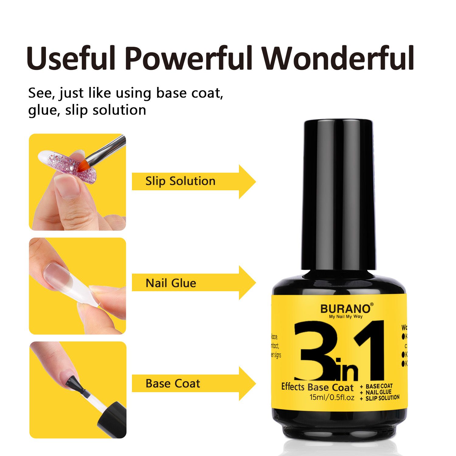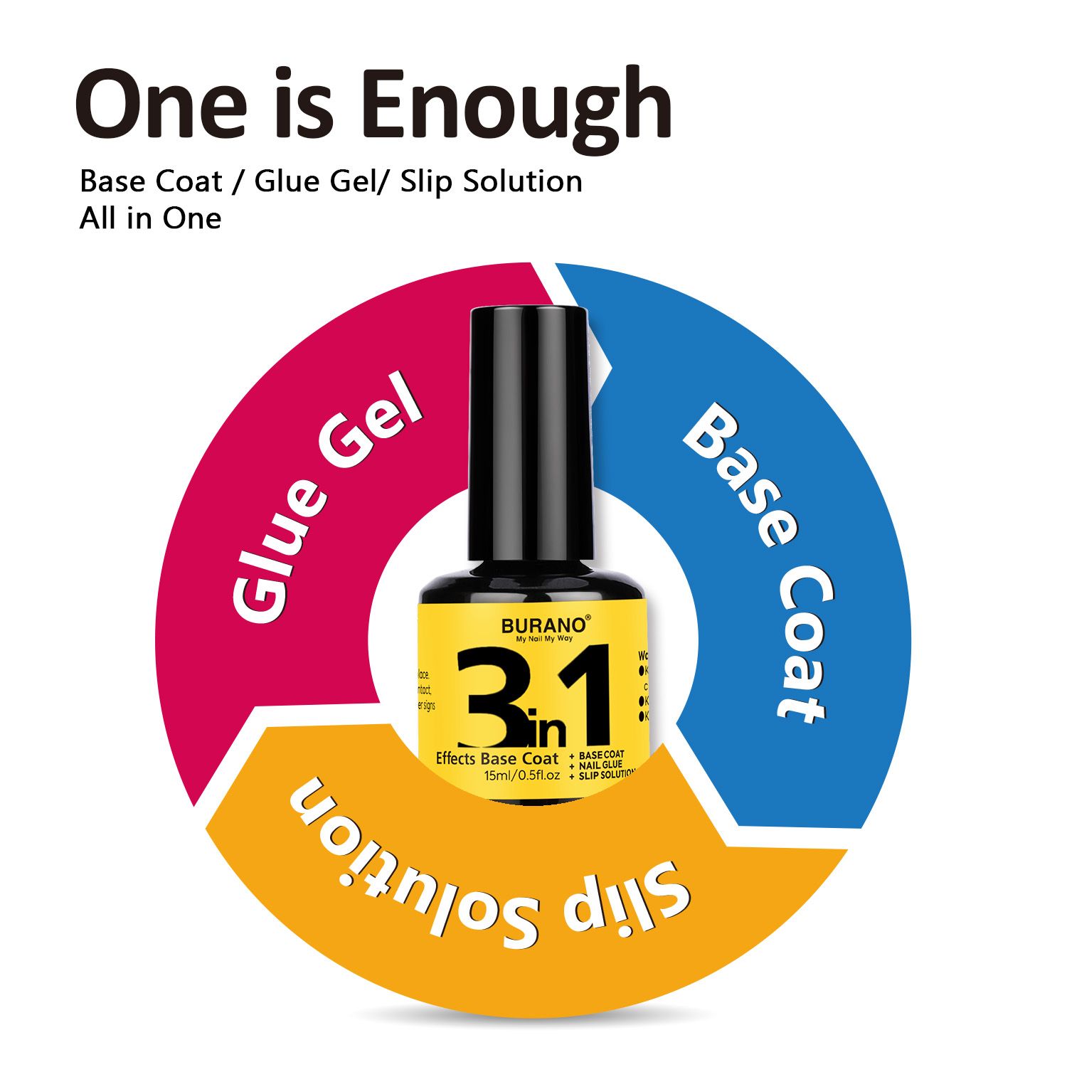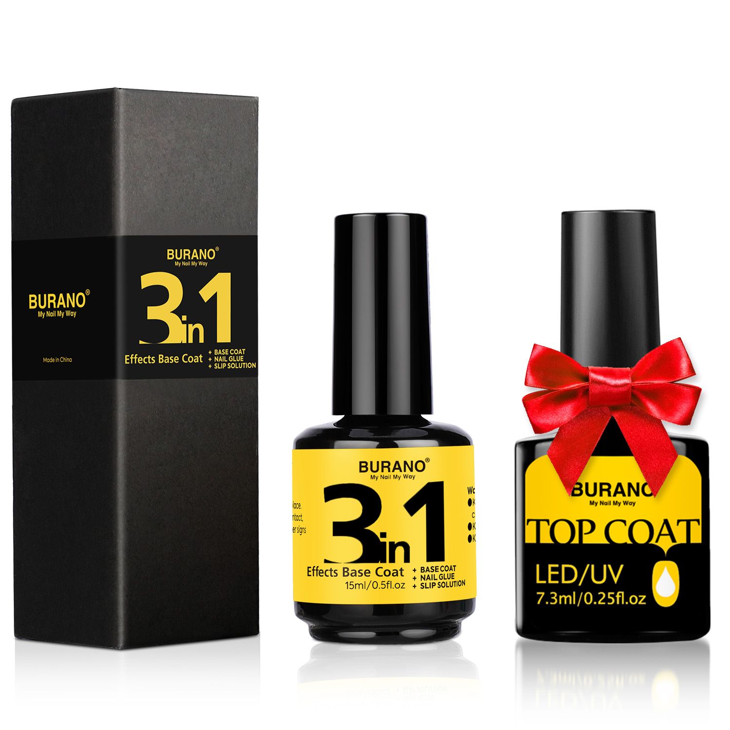 BURANO 3 in 1 Base Coat 15ML Nail Gel Glue & Top Coat Set