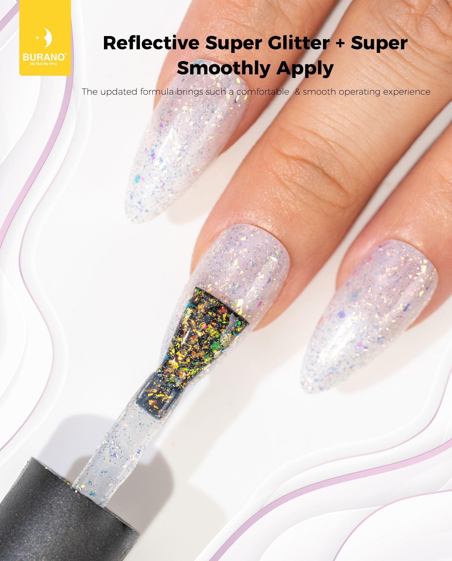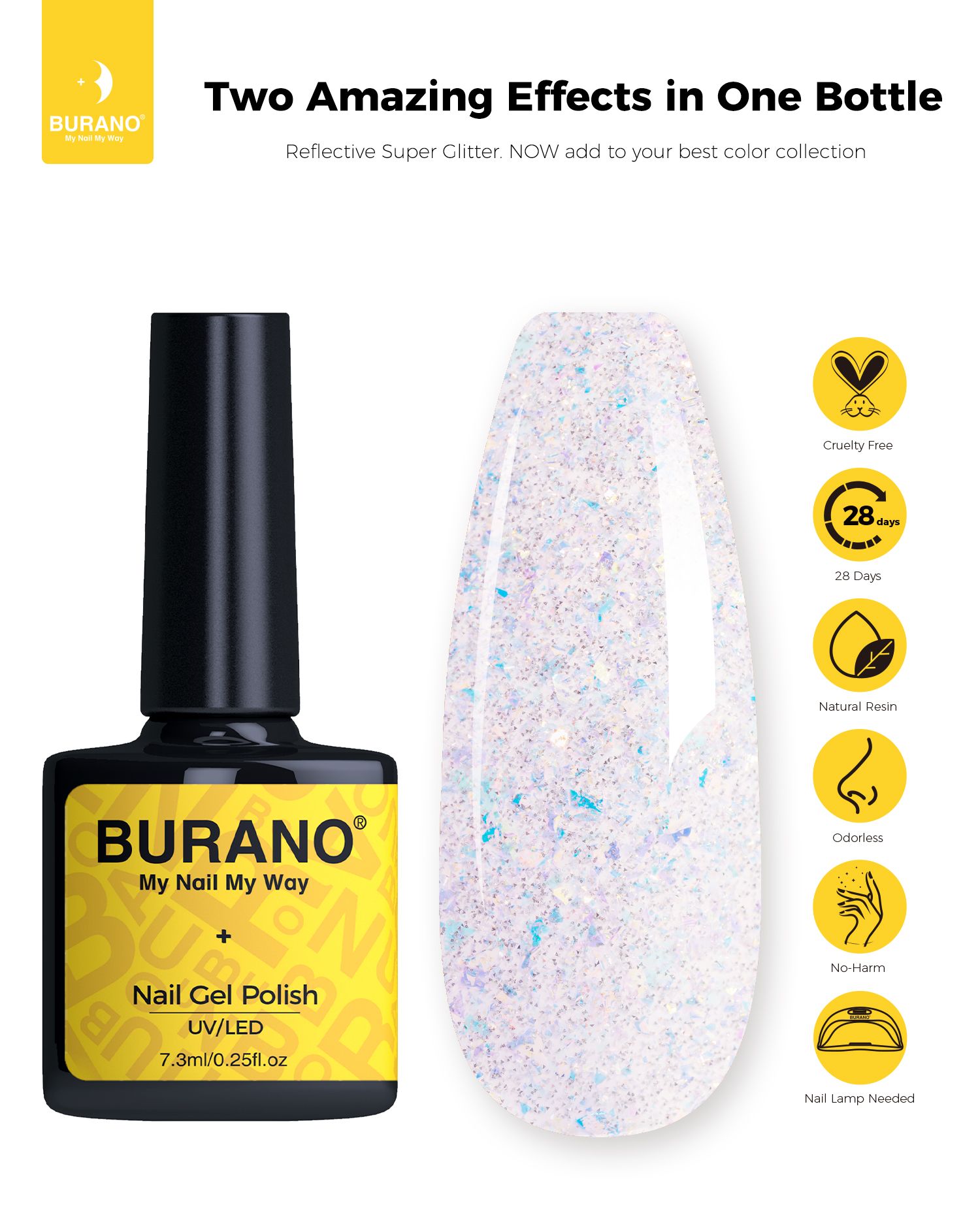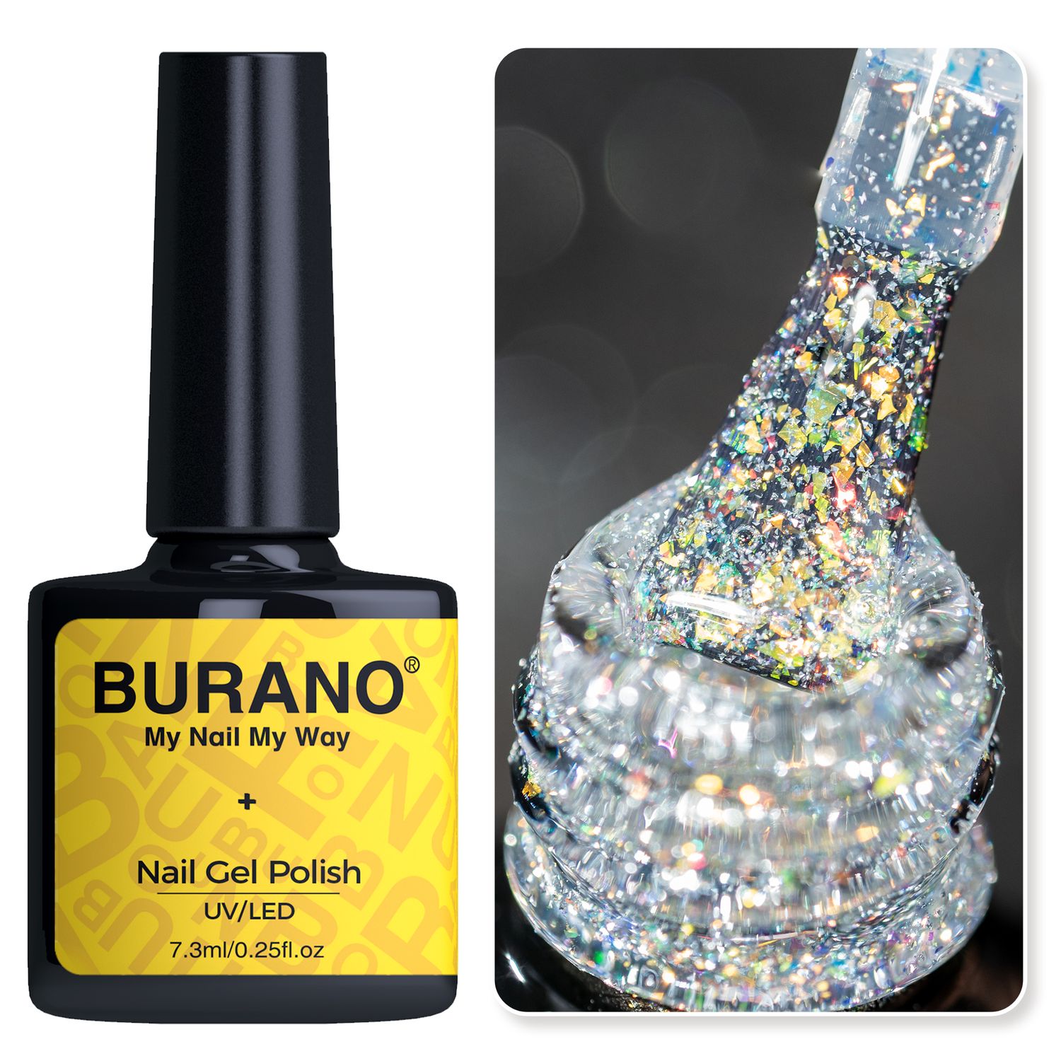 BURANO Holographic Gel Polish, Reflective Glitter Gel Polish 7.3ml UV LED Pink Glitter Gel Nail Polish for Home DIY, Diamond Gel Nail Polish Curing Required (YH22)