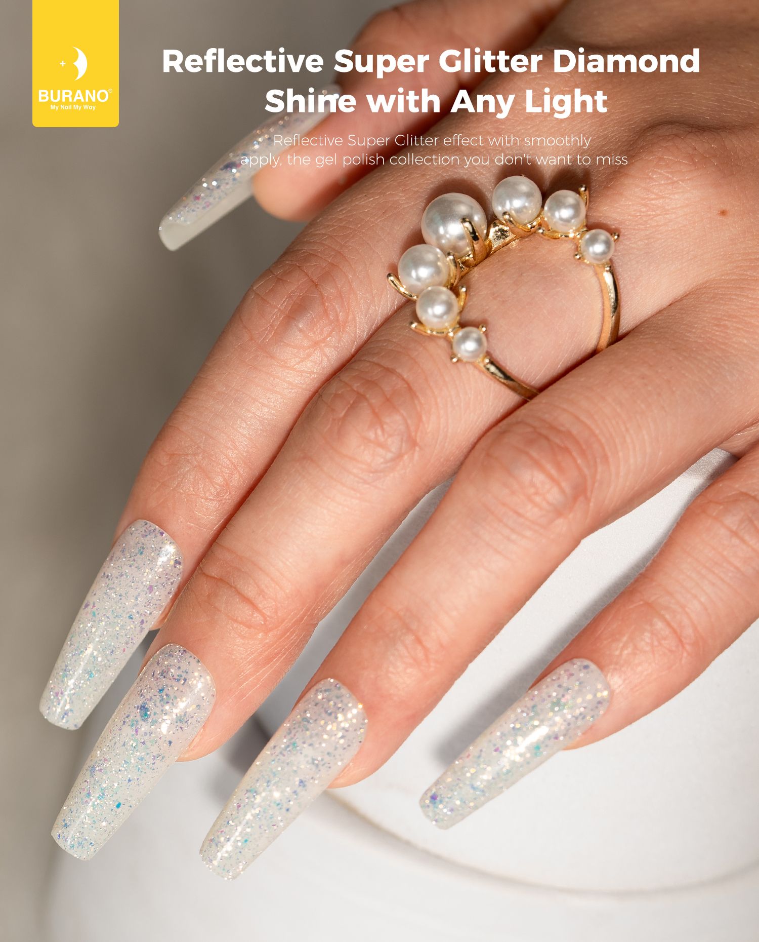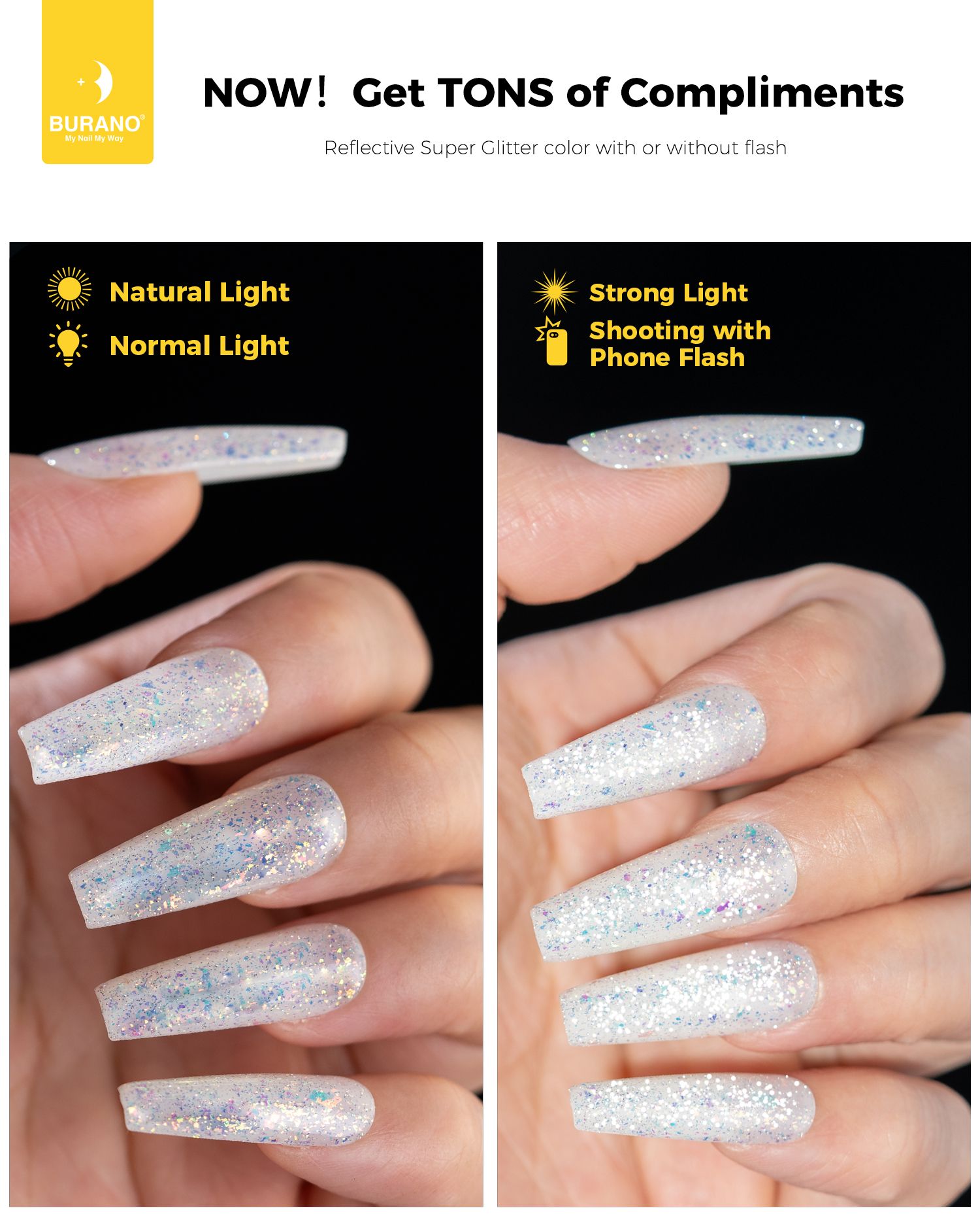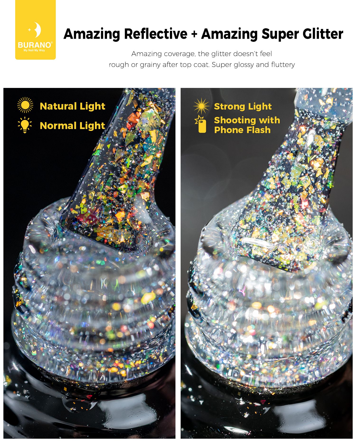 BURANO Holographic Gel Polish, Reflective Glitter Gel Polish 7.3ml UV LED Pink Glitter Gel Nail Polish for Home DIY, Diamond Gel Nail Polish Curing Required (YH22)