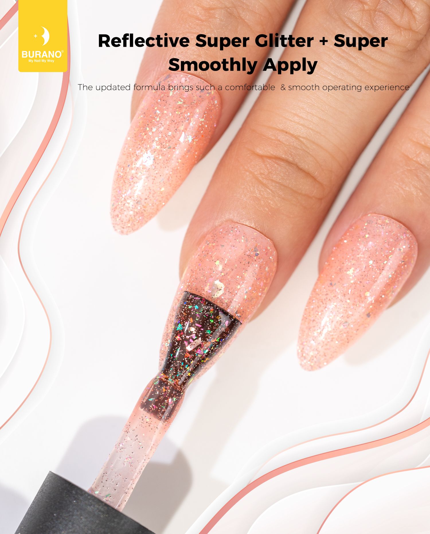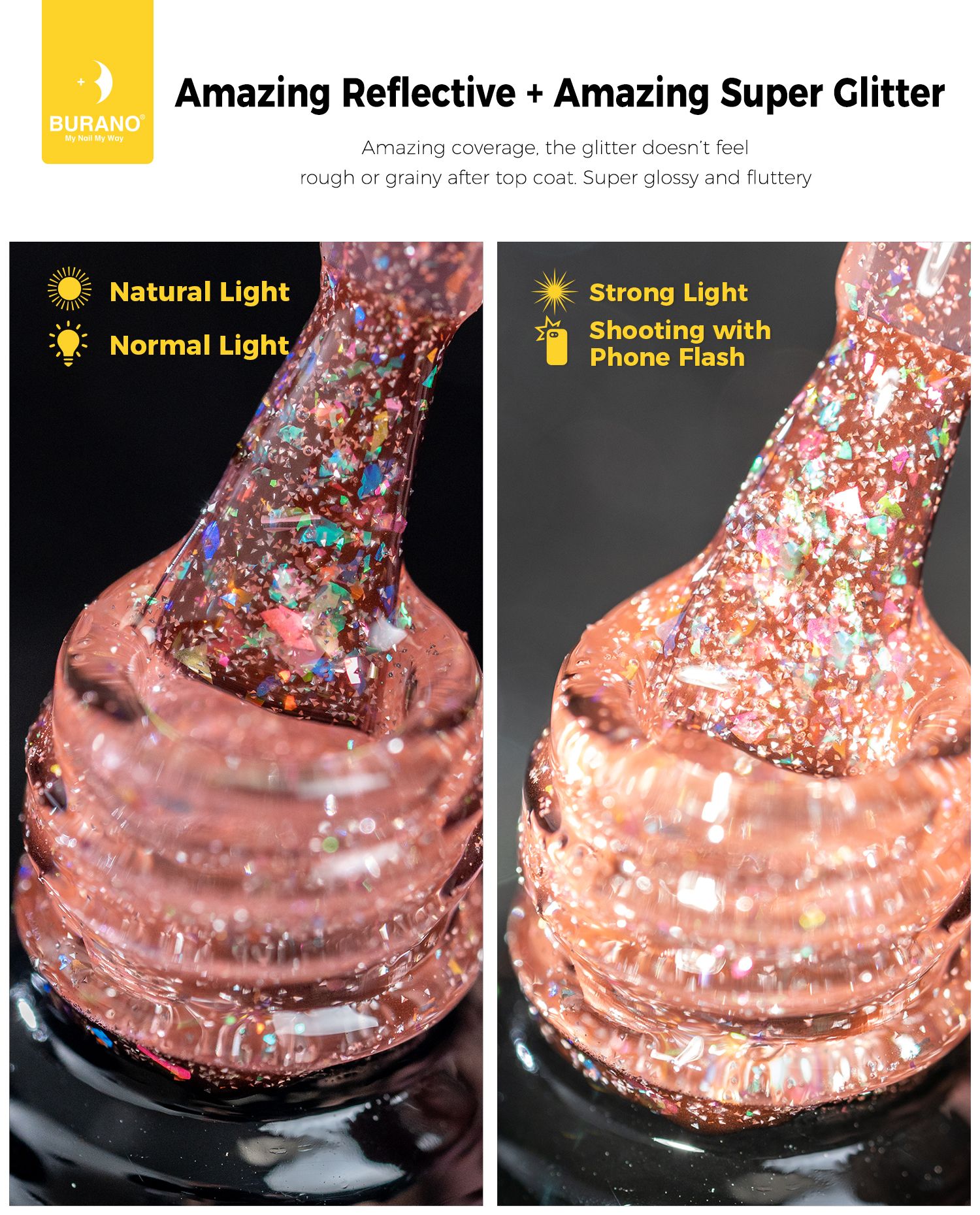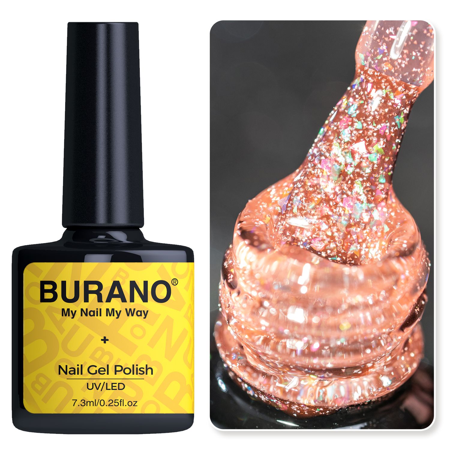 BURANO Holographic Gel Polish, Reflective Glitter Gel Polish 7.3ml UV LED Pink Glitter Gel Nail Polish for Home DIY, Diamond Gel Nail Polish Curing Required (YH24)