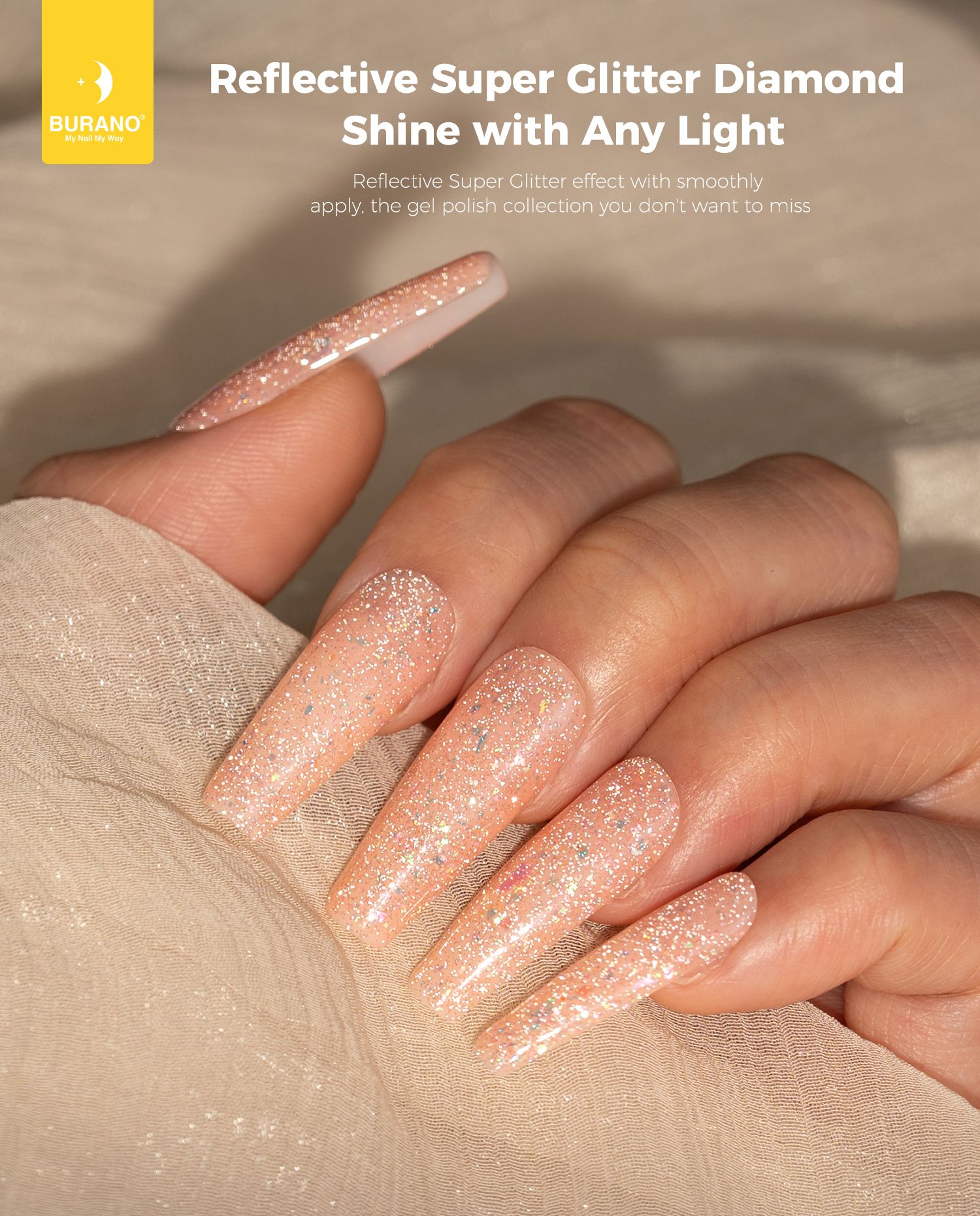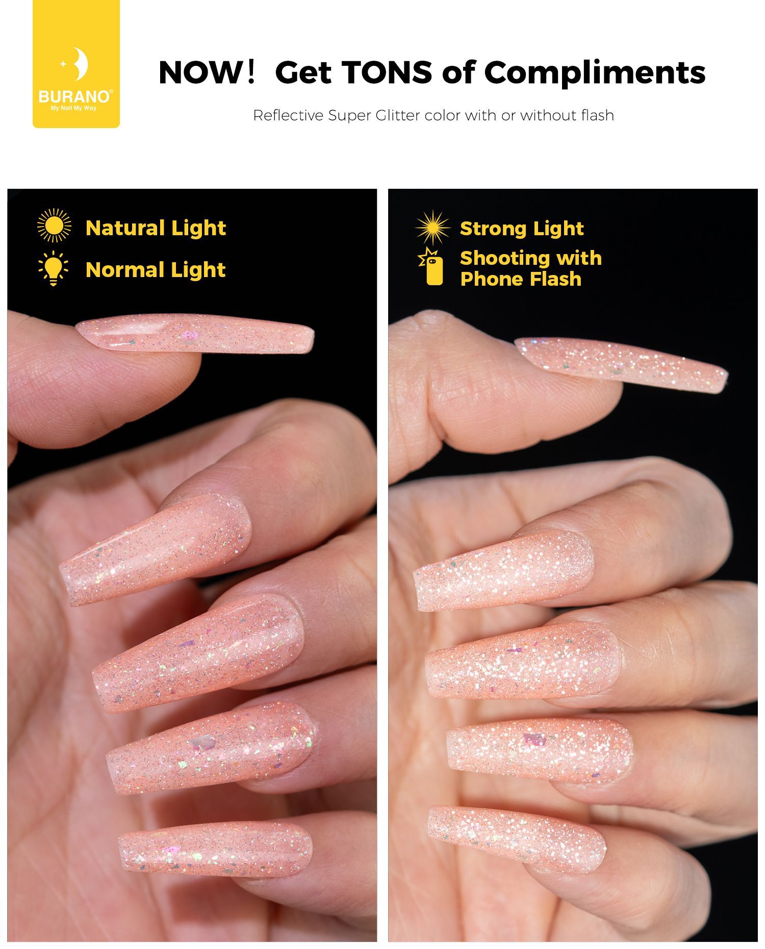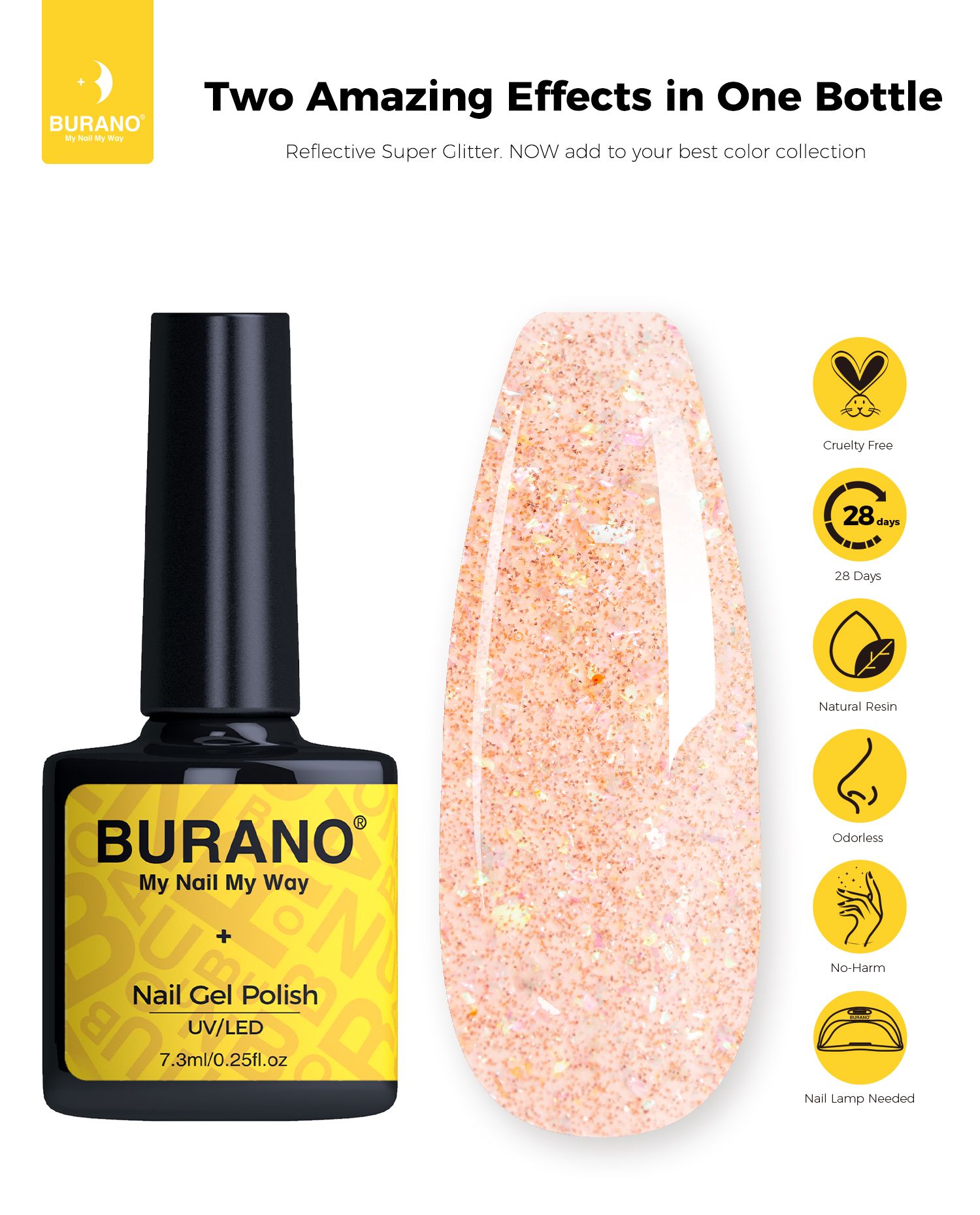 BURANO Holographic Gel Polish, Reflective Glitter Gel Polish 7.3ml UV LED Pink Glitter Gel Nail Polish for Home DIY, Diamond Gel Nail Polish Curing Required (YH24)