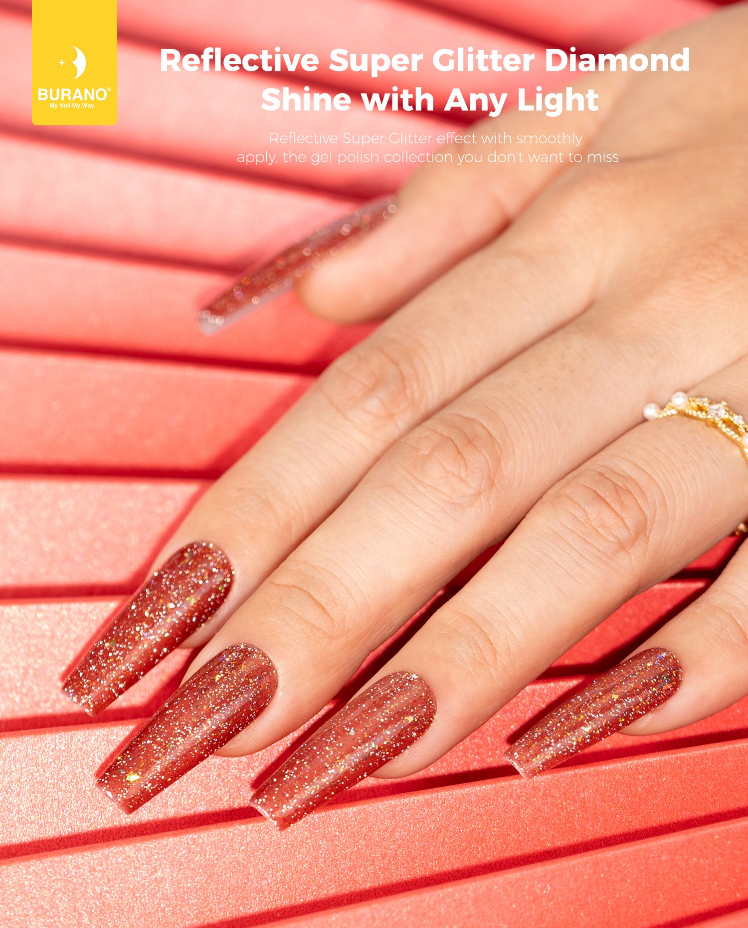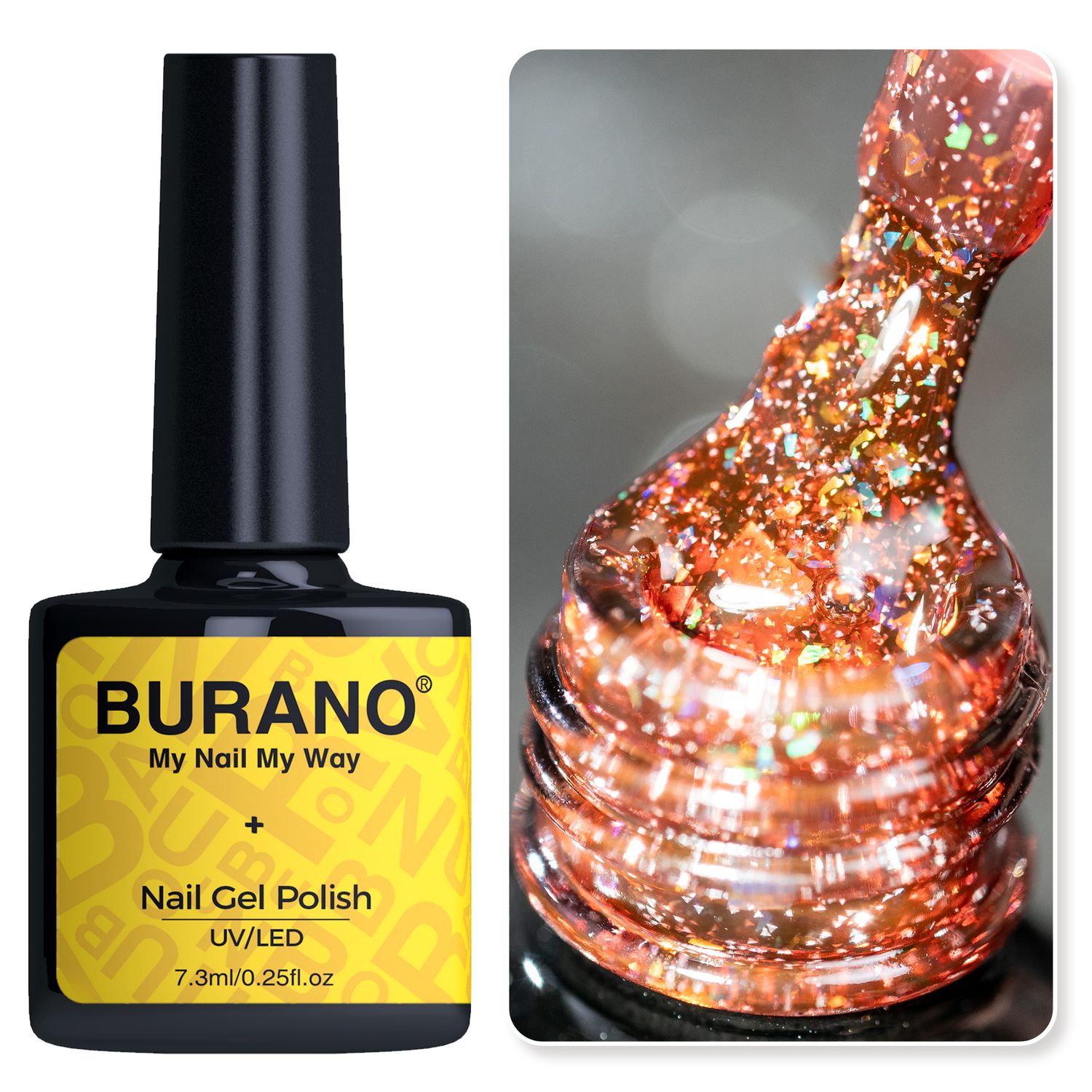 BURANO Holographic Gel Polish, Reflective Glitter Gel Polish 7.3ml UV LED Pink Glitter Gel Nail Polish for Home DIY, Diamond Gel Nail Polish Curing Required (YH38)