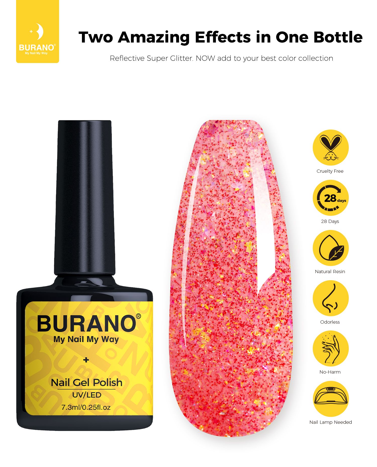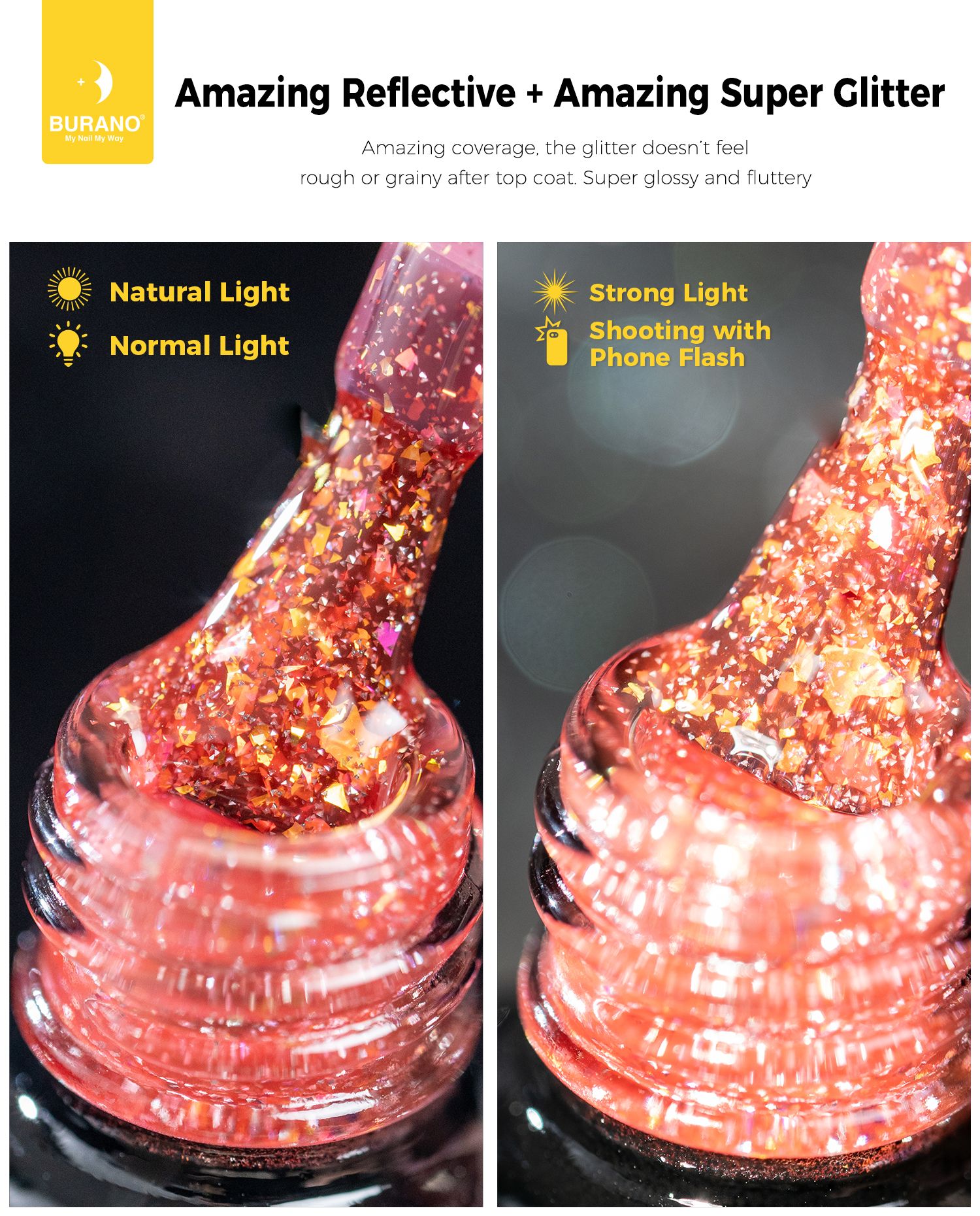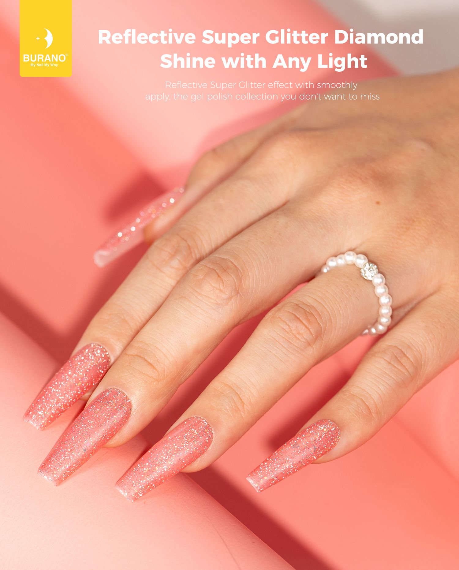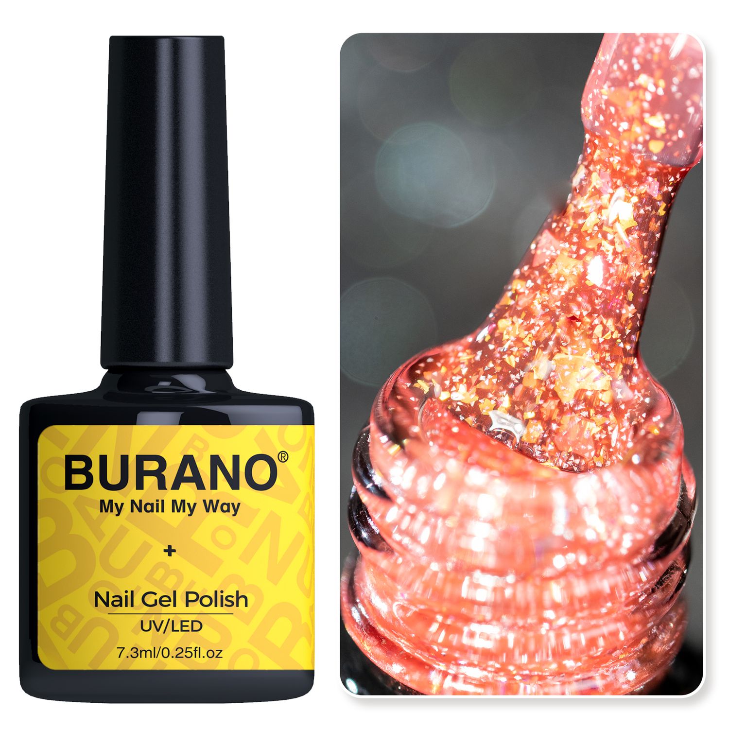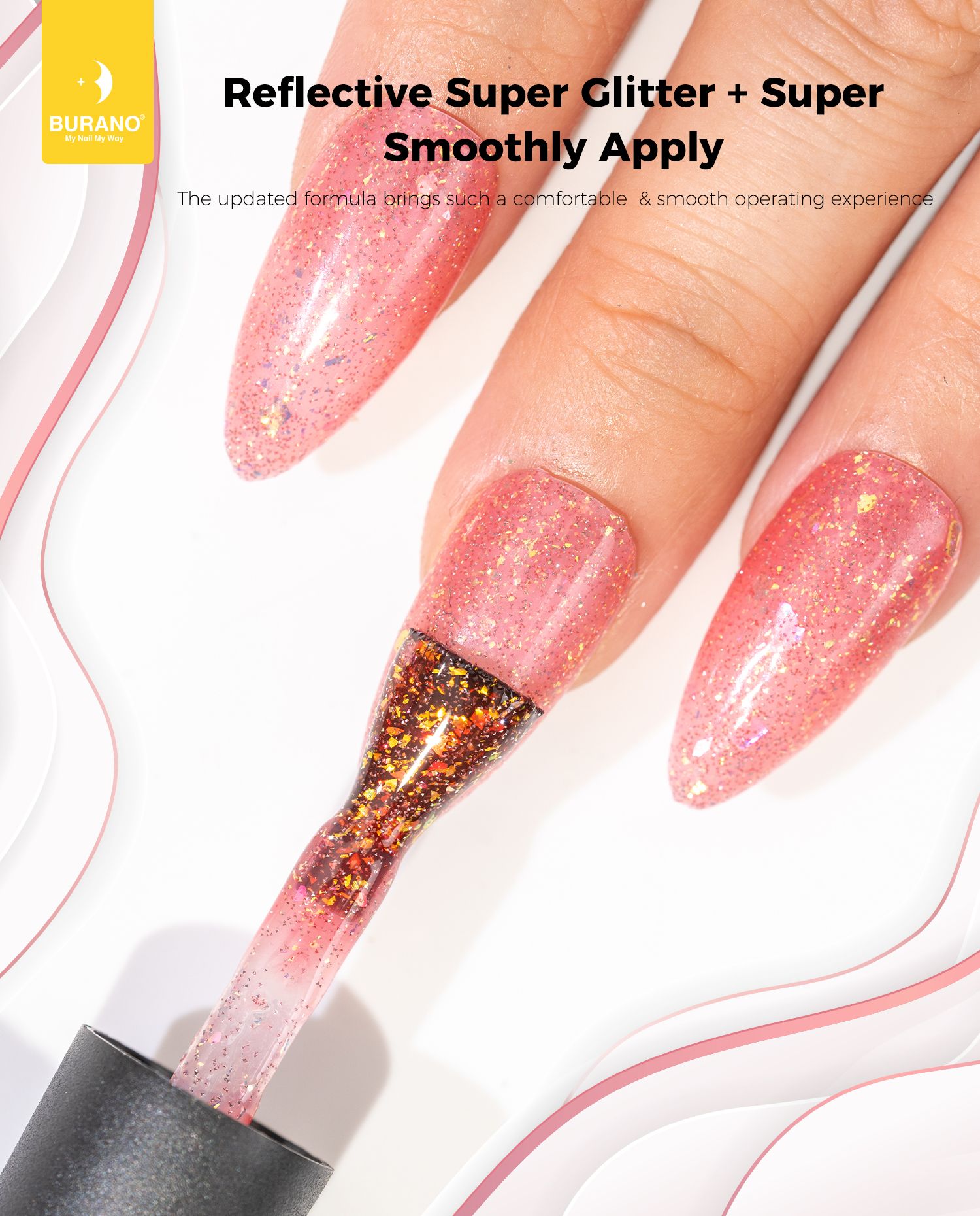 BURANO Holographic Gel Polish, Reflective Glitter Gel Polish 7.3ml UV LED Pink Glitter Gel Nail Polish for Home DIY, Diamond Gel Nail Polish Curing Required (YH39)