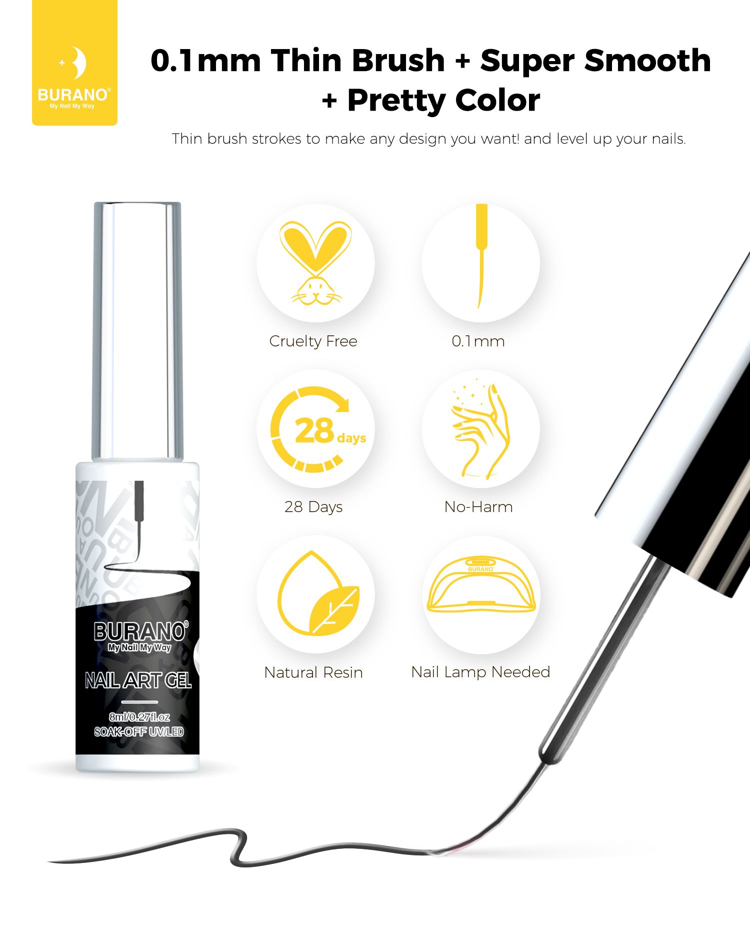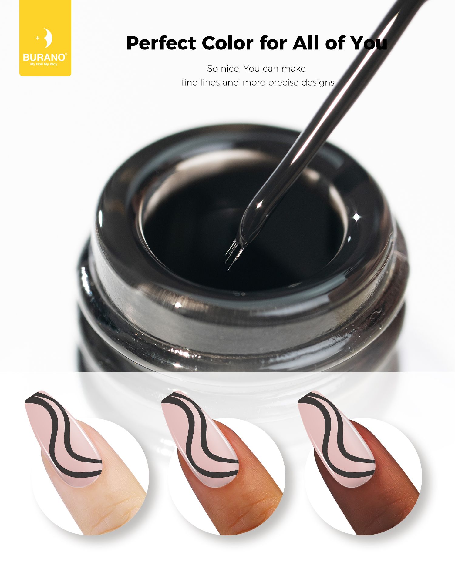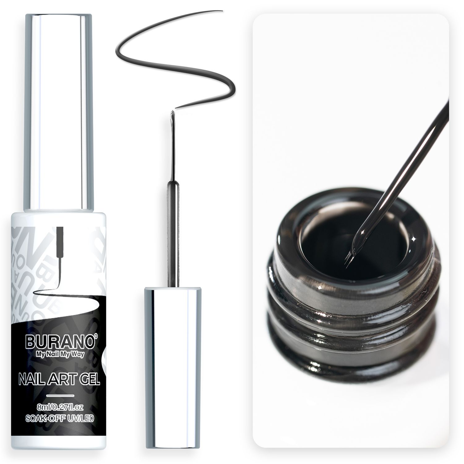 BURANO Gel Nail Polish Liner Nail Art Polish, Black White Purple Red Pink Painted Gel Nail Design Polish 1 Bottle, Build in Thin Nail Brush Chrome Gel Nail Polish Curing Required 8ml (LX11)