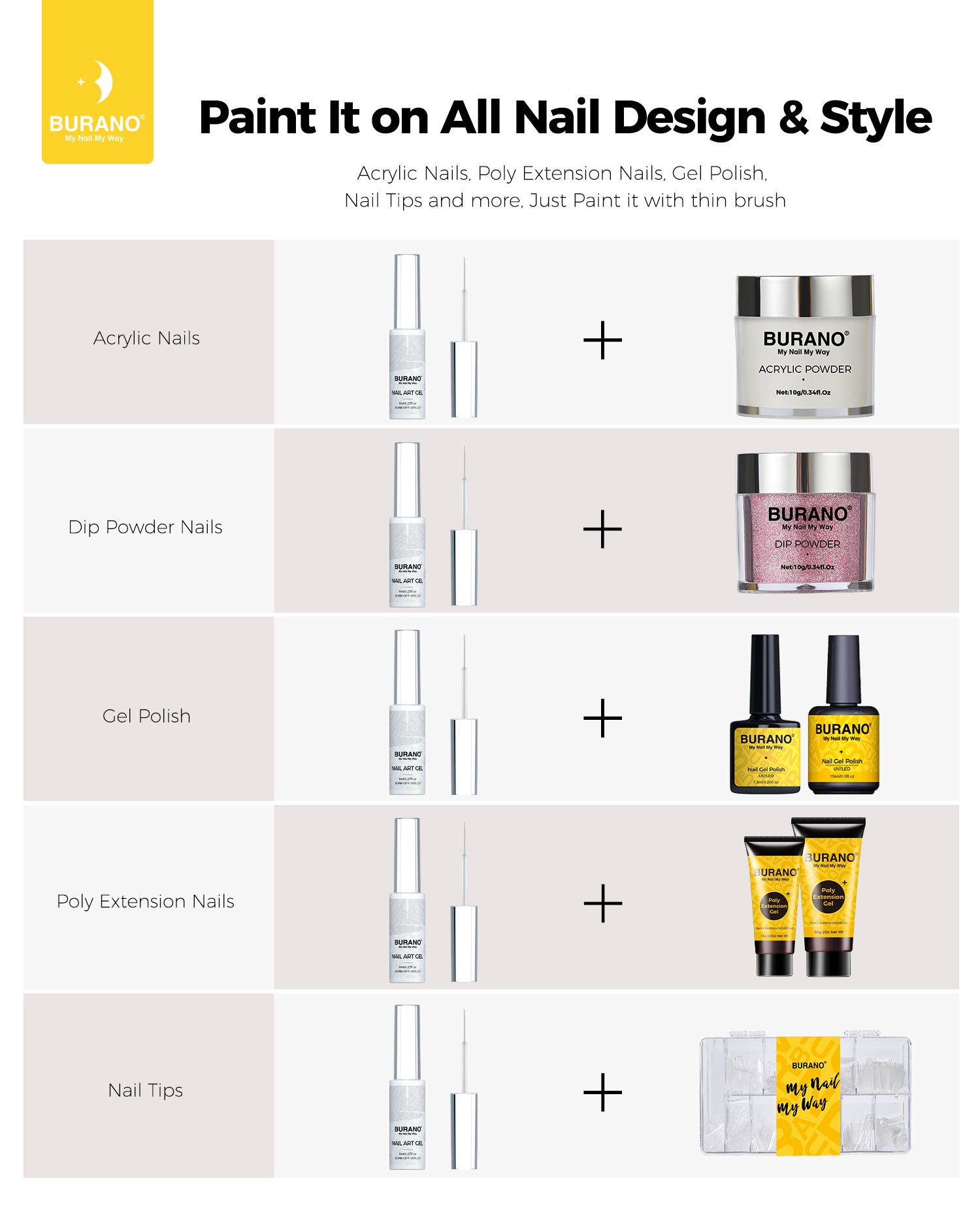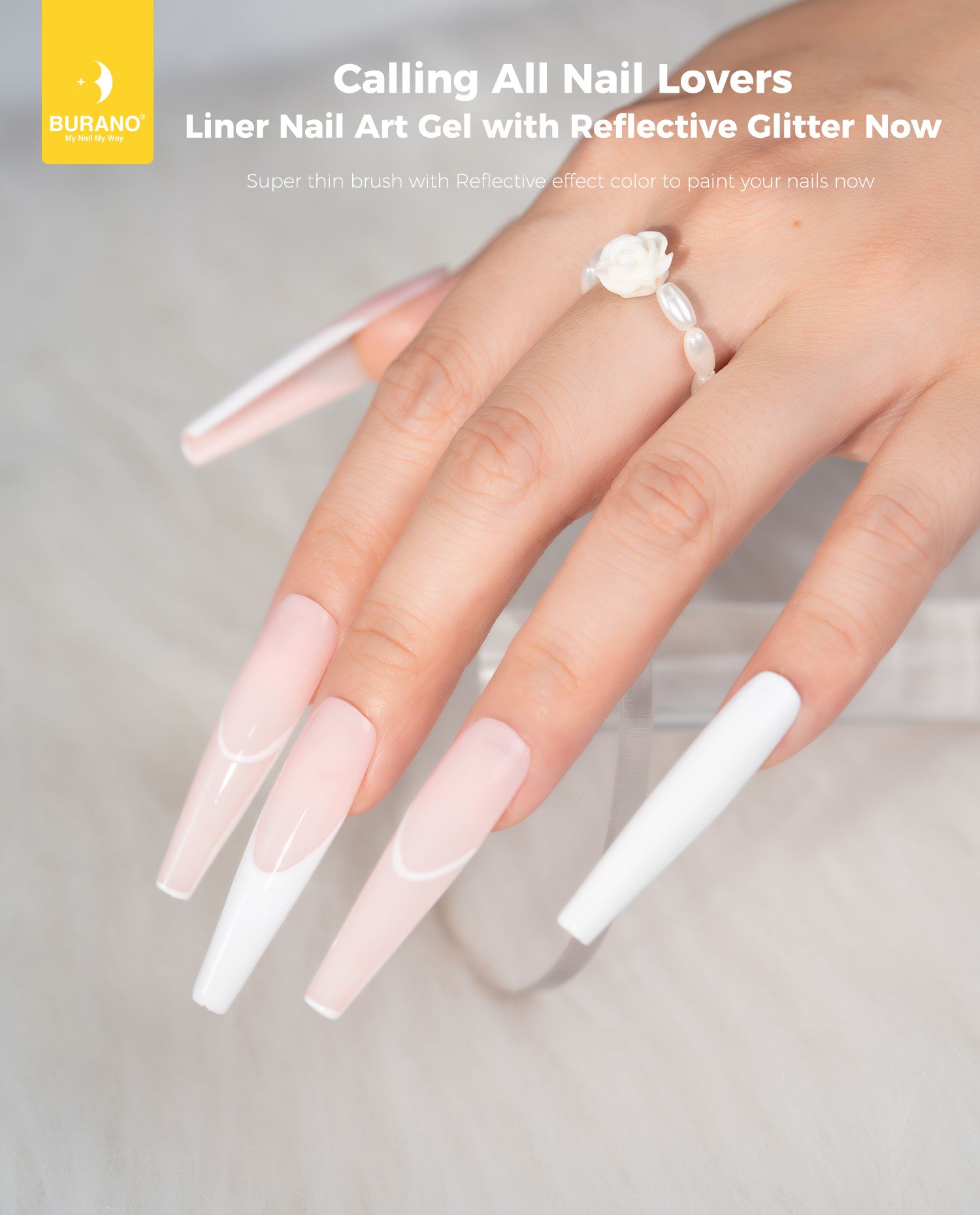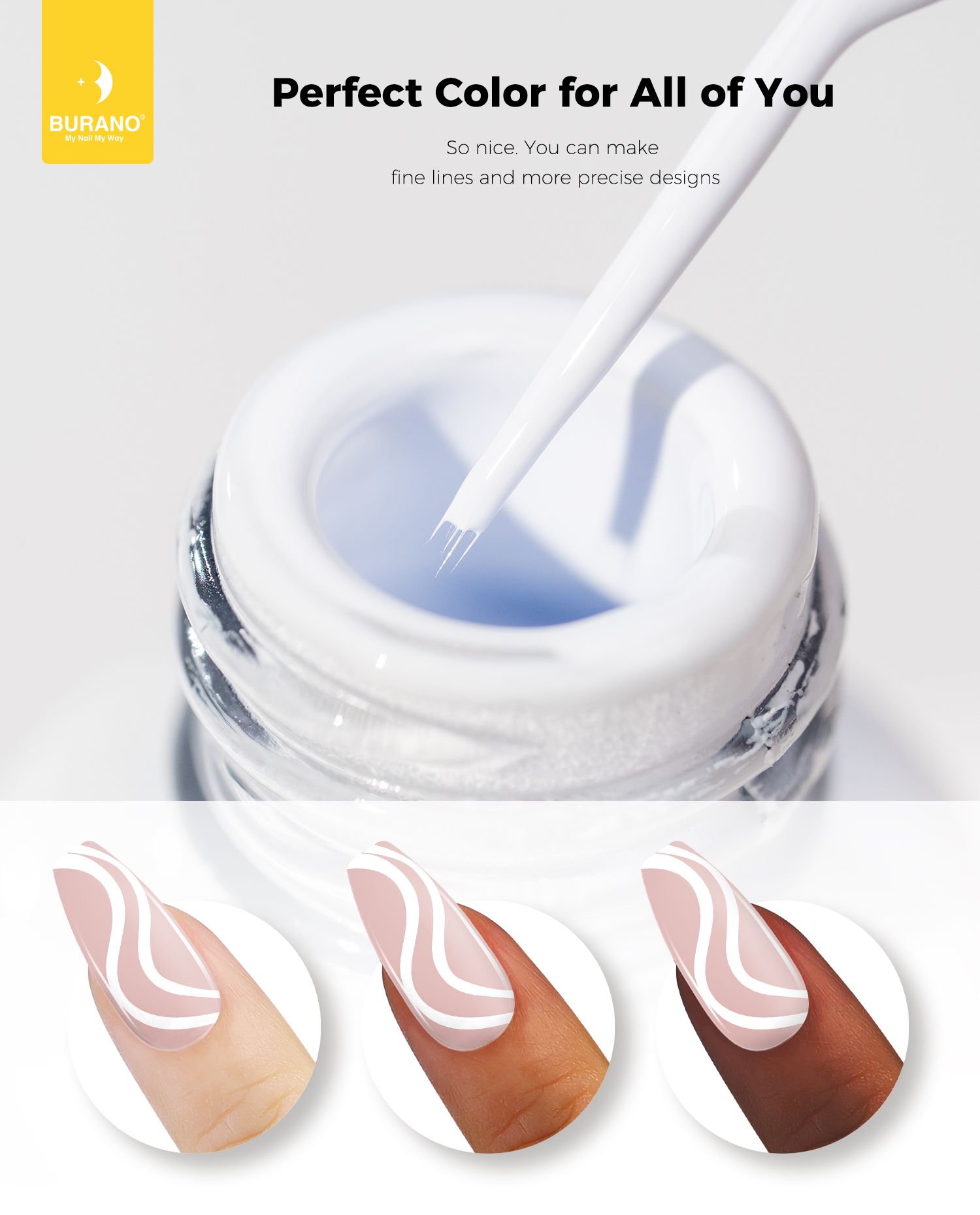 BURANO Gel Nail Polish Liner Nail Art Polish, Black White Purple Red Pink Painted Gel Nail Design Polish 1 Bottle, Build in Thin Nail Brush Chrome Gel Nail Polish Curing Required 8ml (LX12)