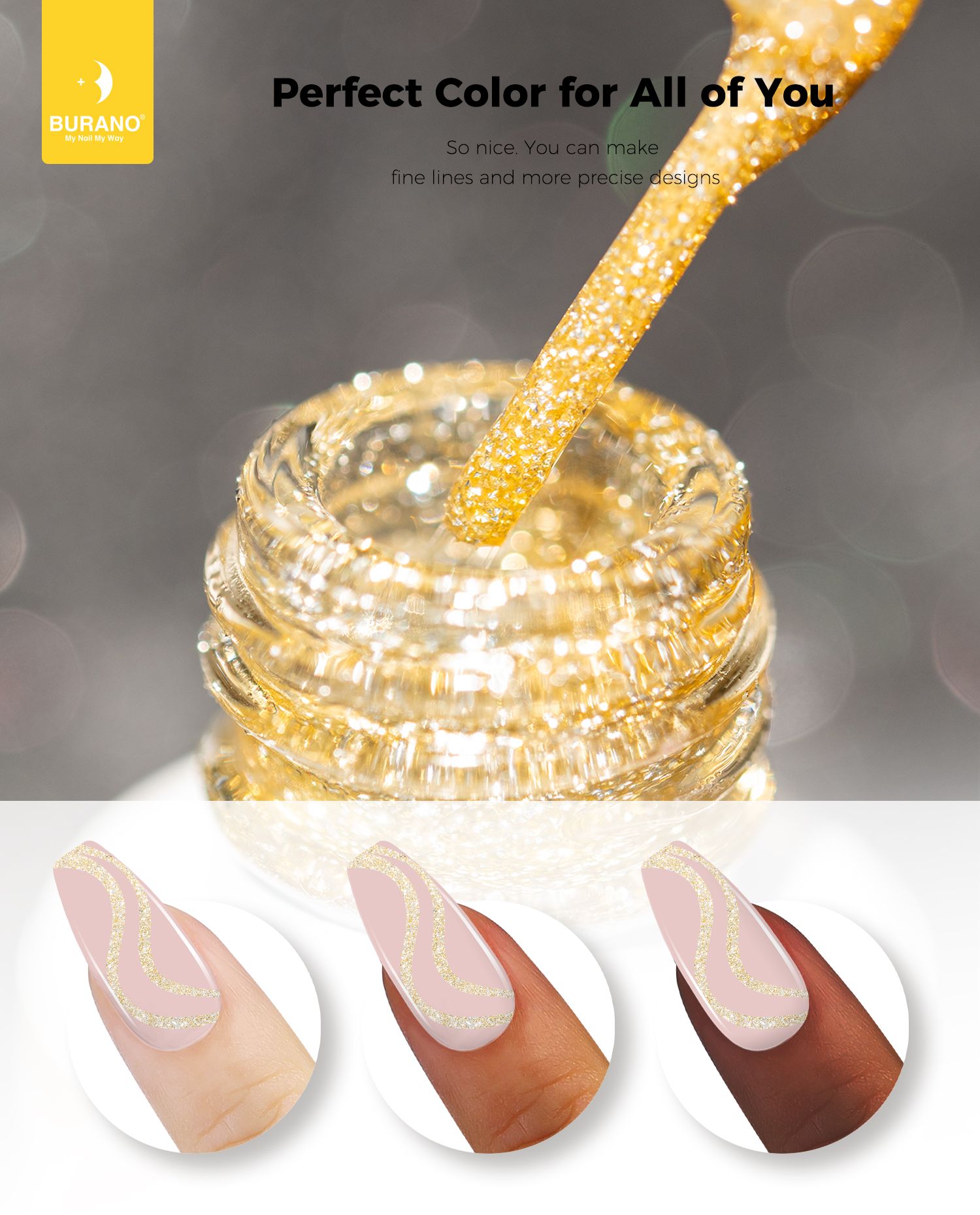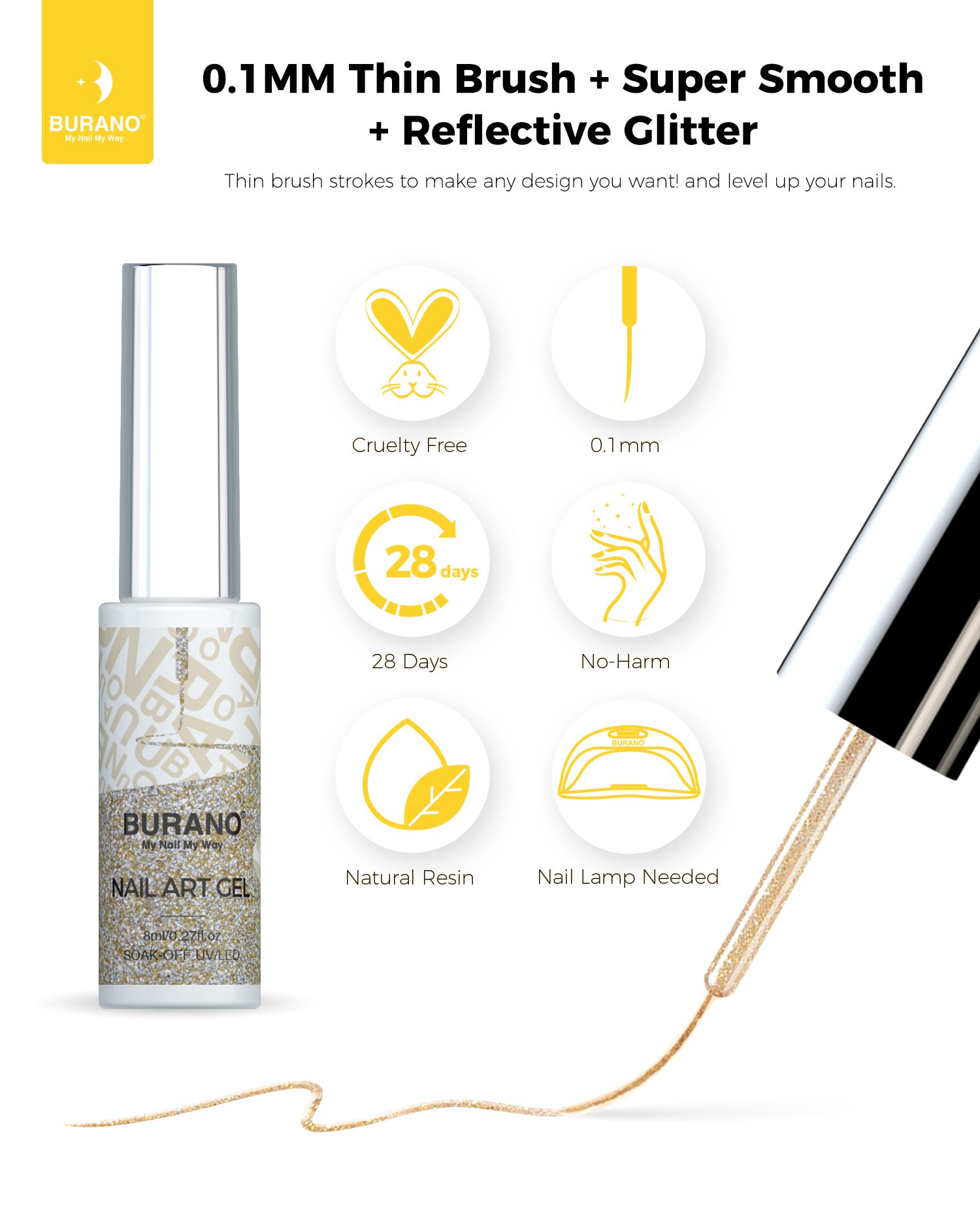 BURANO Holographic Gel Nail Polish Liner Nail Art Polish, Reflective Glitter Painted Gel Nail Design Polish 1 Bottle, Build in Thin Nail Brush Chrome Gel Curing Required 8ml (LX17)…