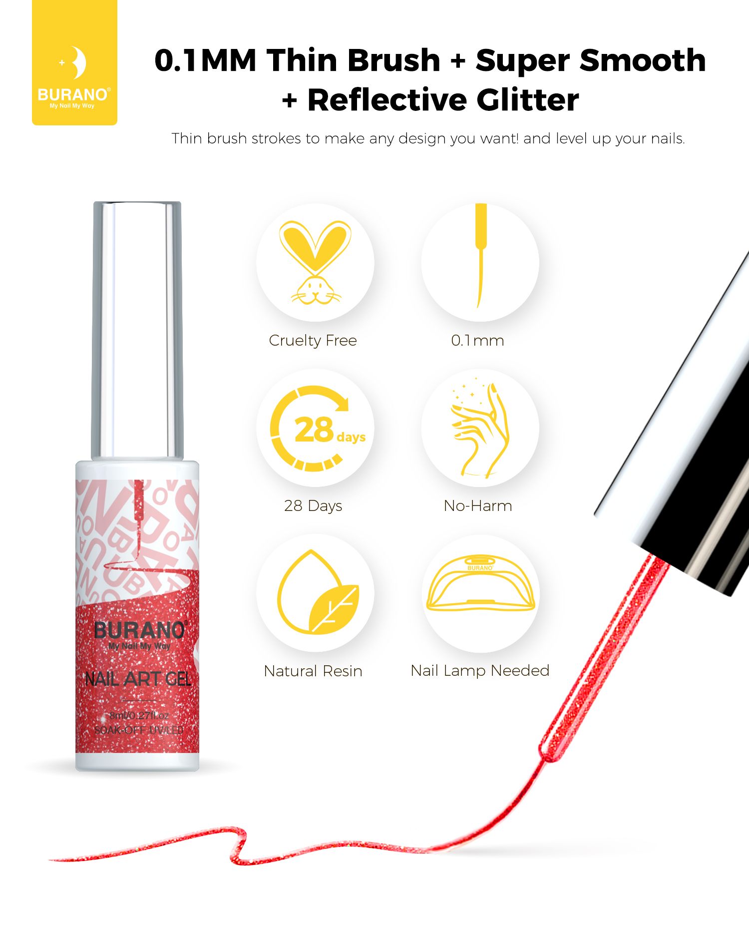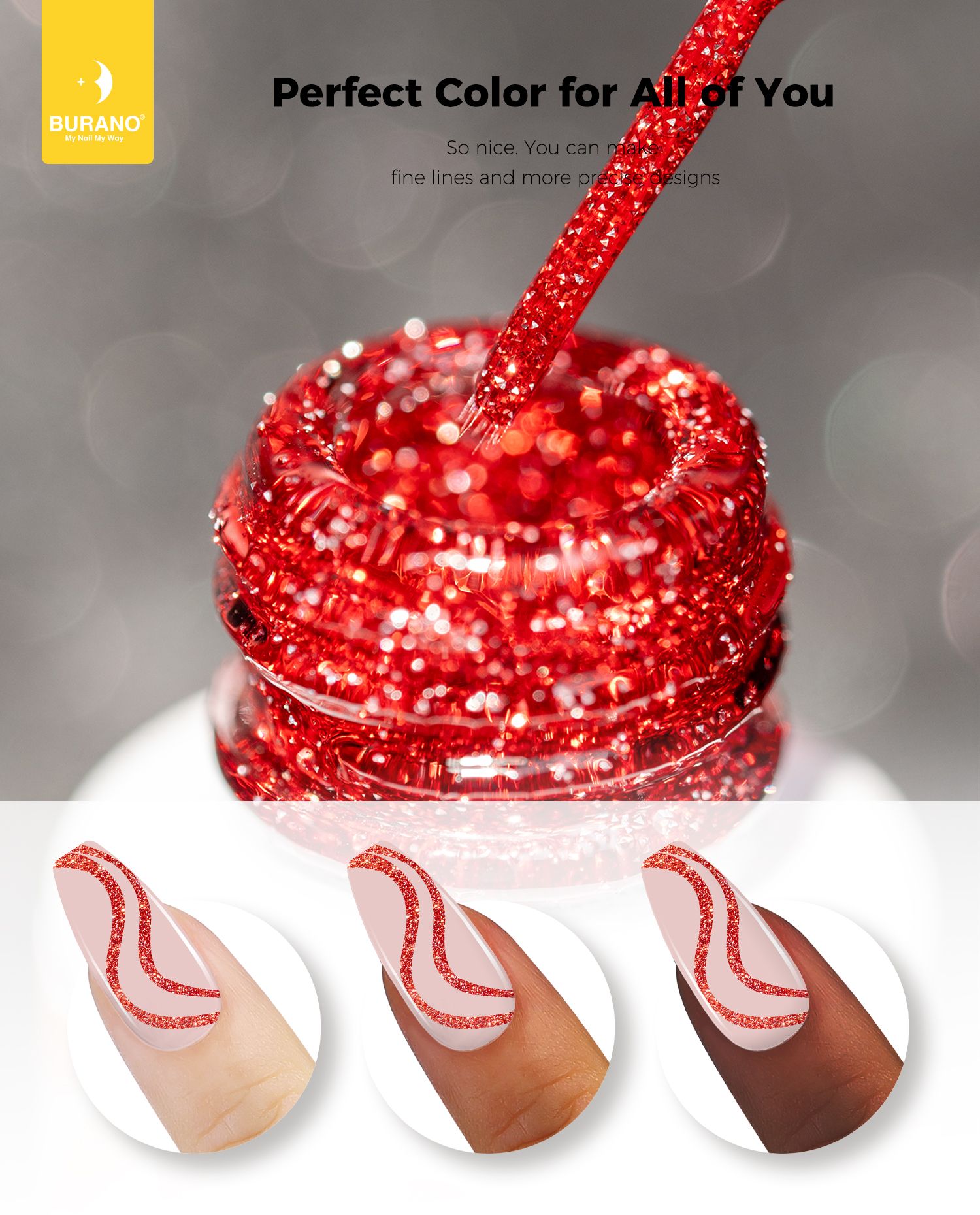 BURANO Holographic Gel Nail Polish Liner Nail Art Polish, Reflective Glitter Painted Gel Nail Design Polish 1 Bottle, Build in Thin Nail Brush Chrome Gel Curing Required 8ml (LX17)…