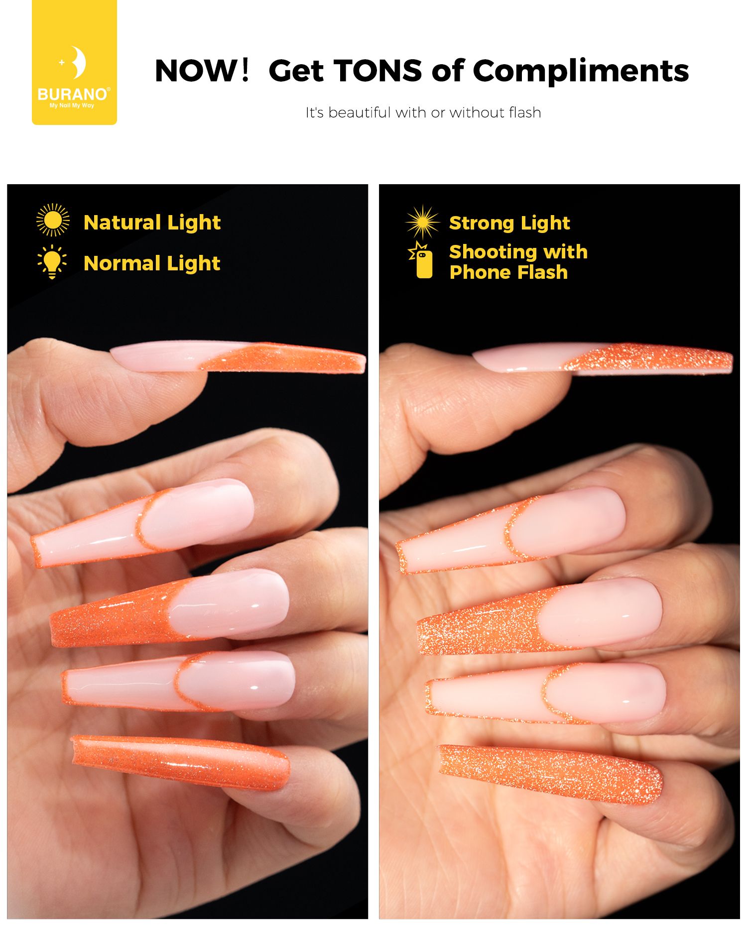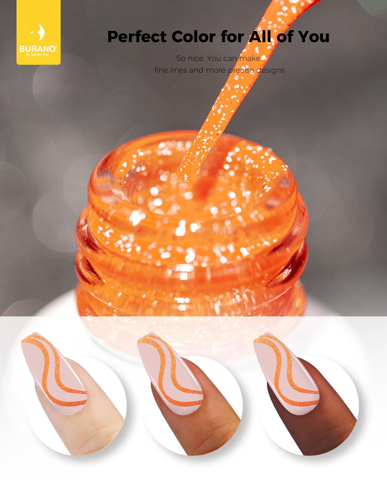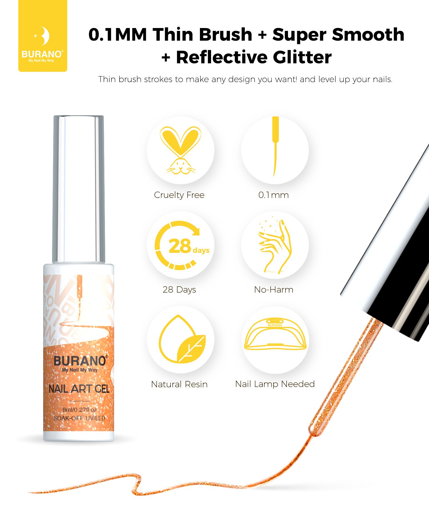 BURANO Holographic Gel Nail Polish Liner Nail Art Polish, Reflective Glitter Painted Gel Nail Design Polish 1 Bottle, Build in Thin Nail Brush Chrome Gel Curing Required 8ml (LX24)…