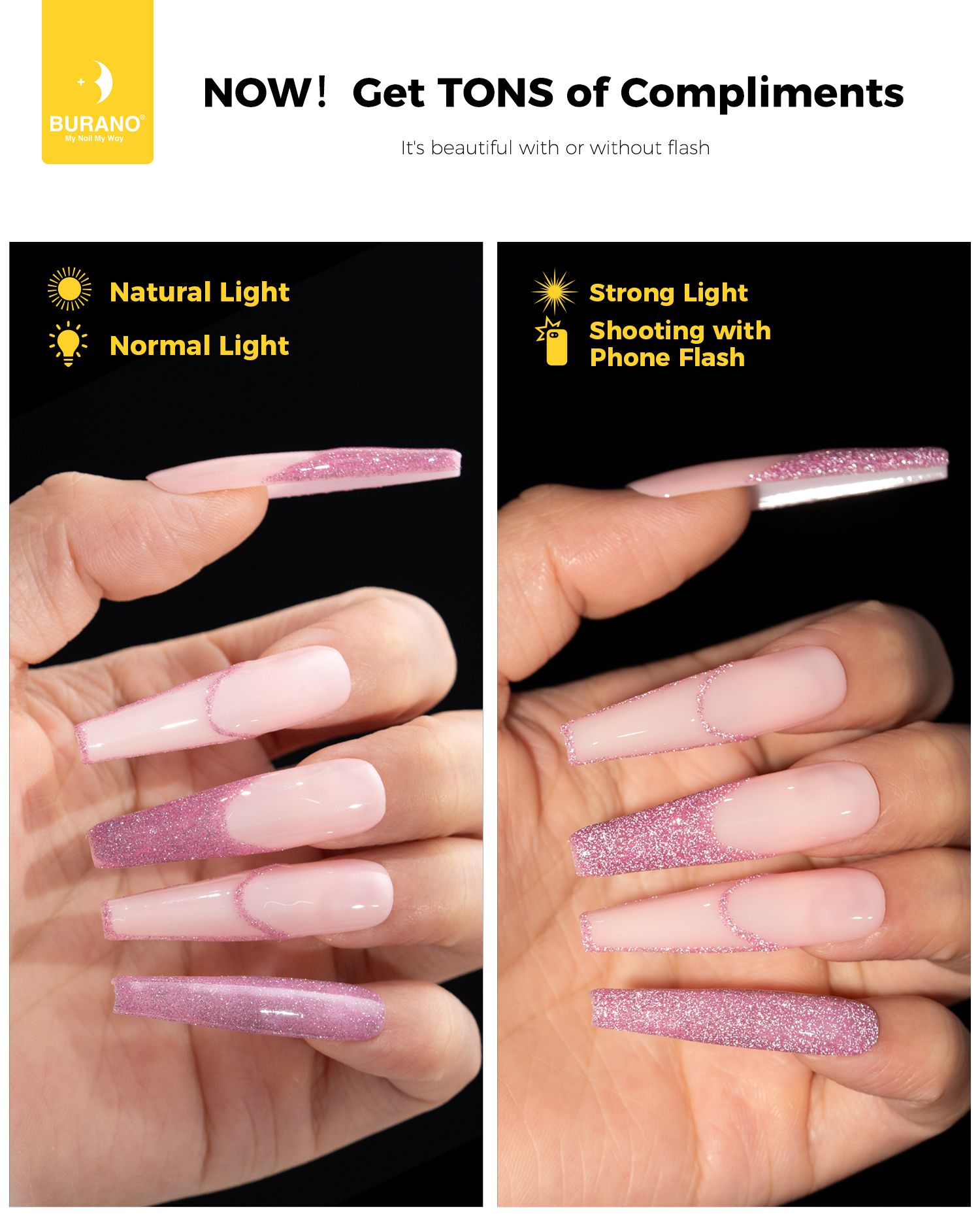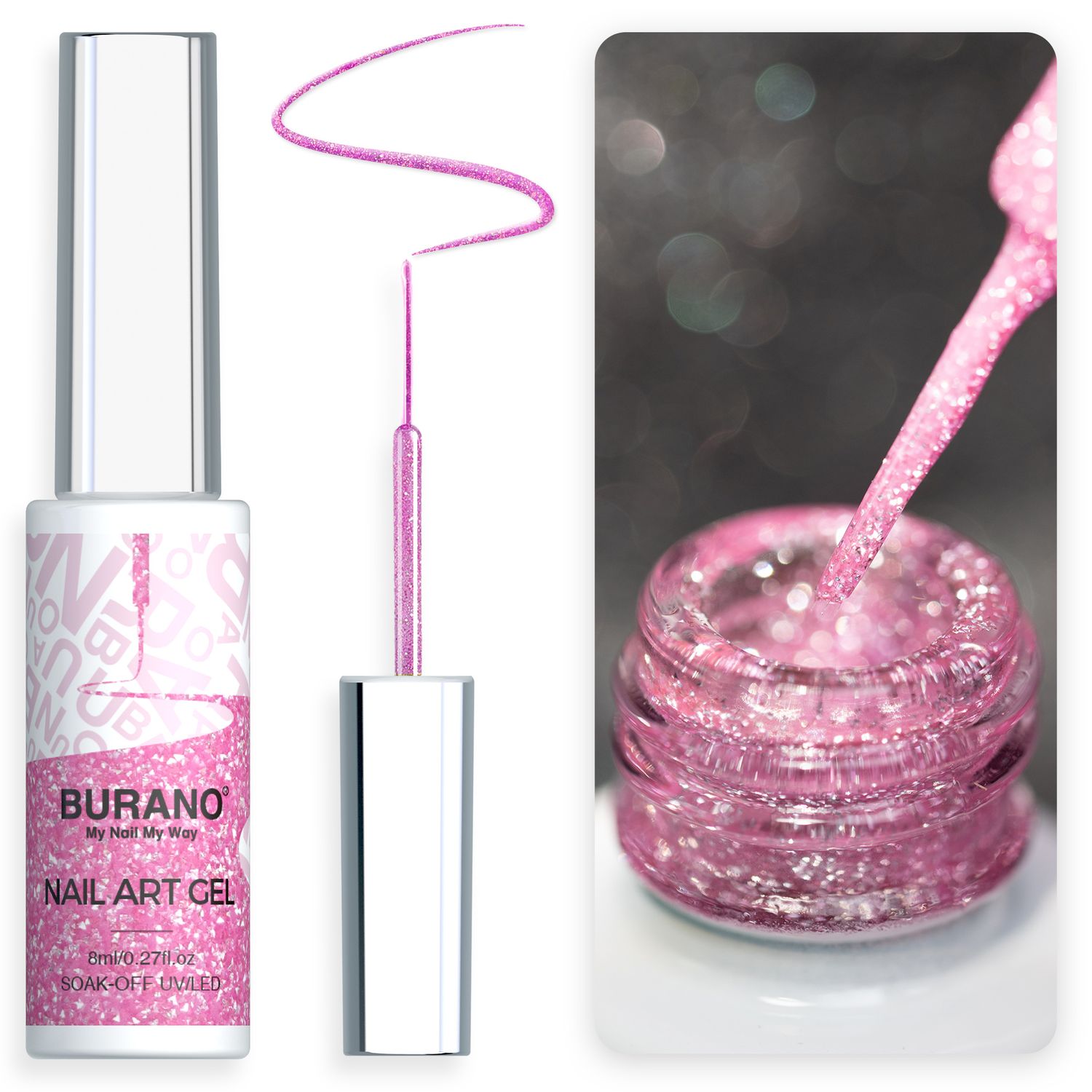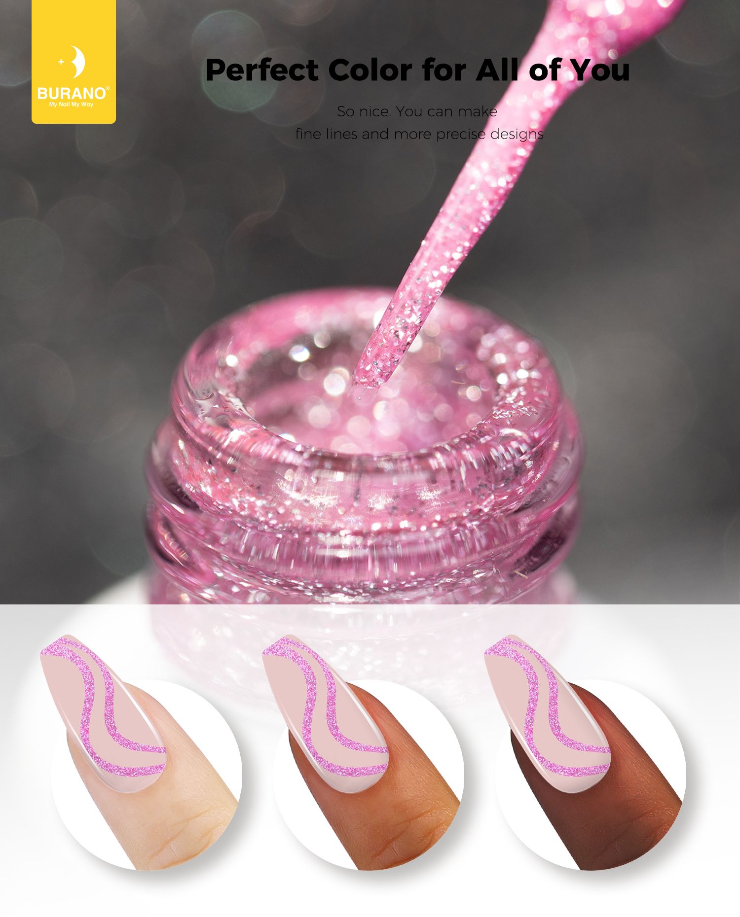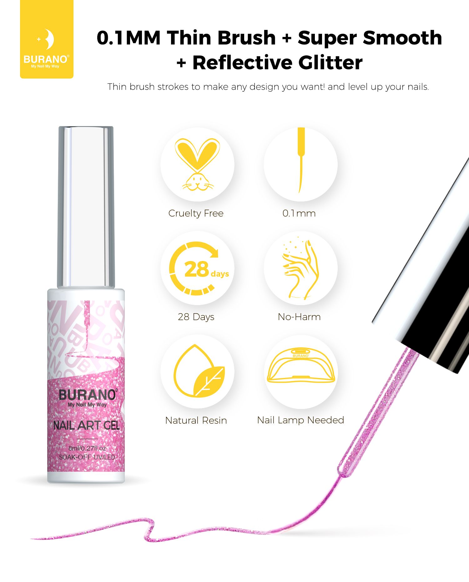 BURANO Holographic Gel Nail Polish Liner Nail Art Polish, Reflective Glitter Painted Gel Nail Design Polish 1 Bottle, Build in Thin Nail Brush Chrome Gel Curing Required 8ml(LX28)