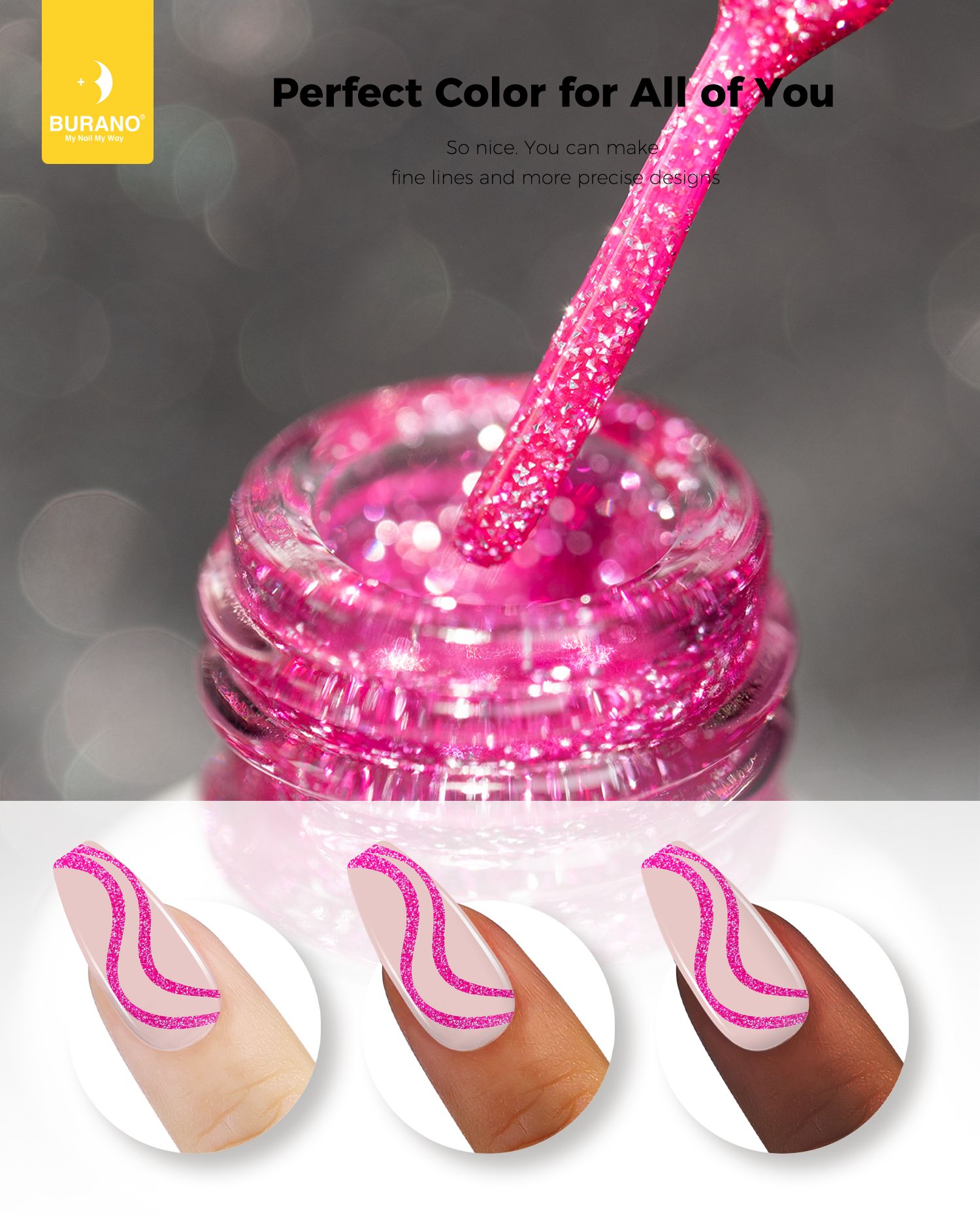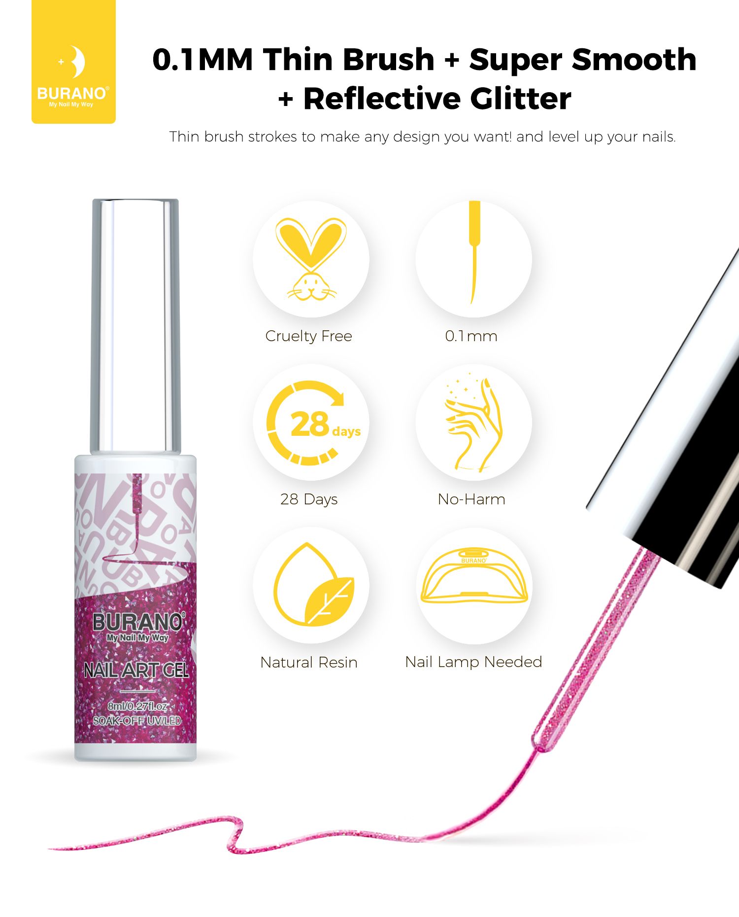 BURANO Holographic Gel Nail Polish Liner Nail Art Polish, Reflective Glitter Painted Gel Nail Design Polish 1 Bottle, Build in Thin Nail Brush Chrome Gel Curing Required 8ml (LX30)…