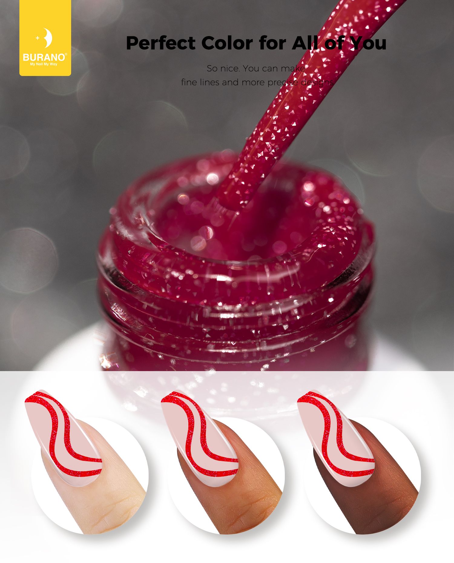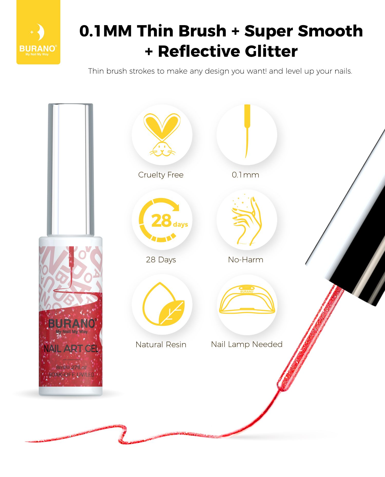 BURANO Holographic Gel Nail Polish Liner Nail Art Polish, Reflective Glitter Painted Gel Nail Design Polish 1 Bottle, Build in Thin Nail Brush Chrome Gel Curing Required 8ml (LX31)