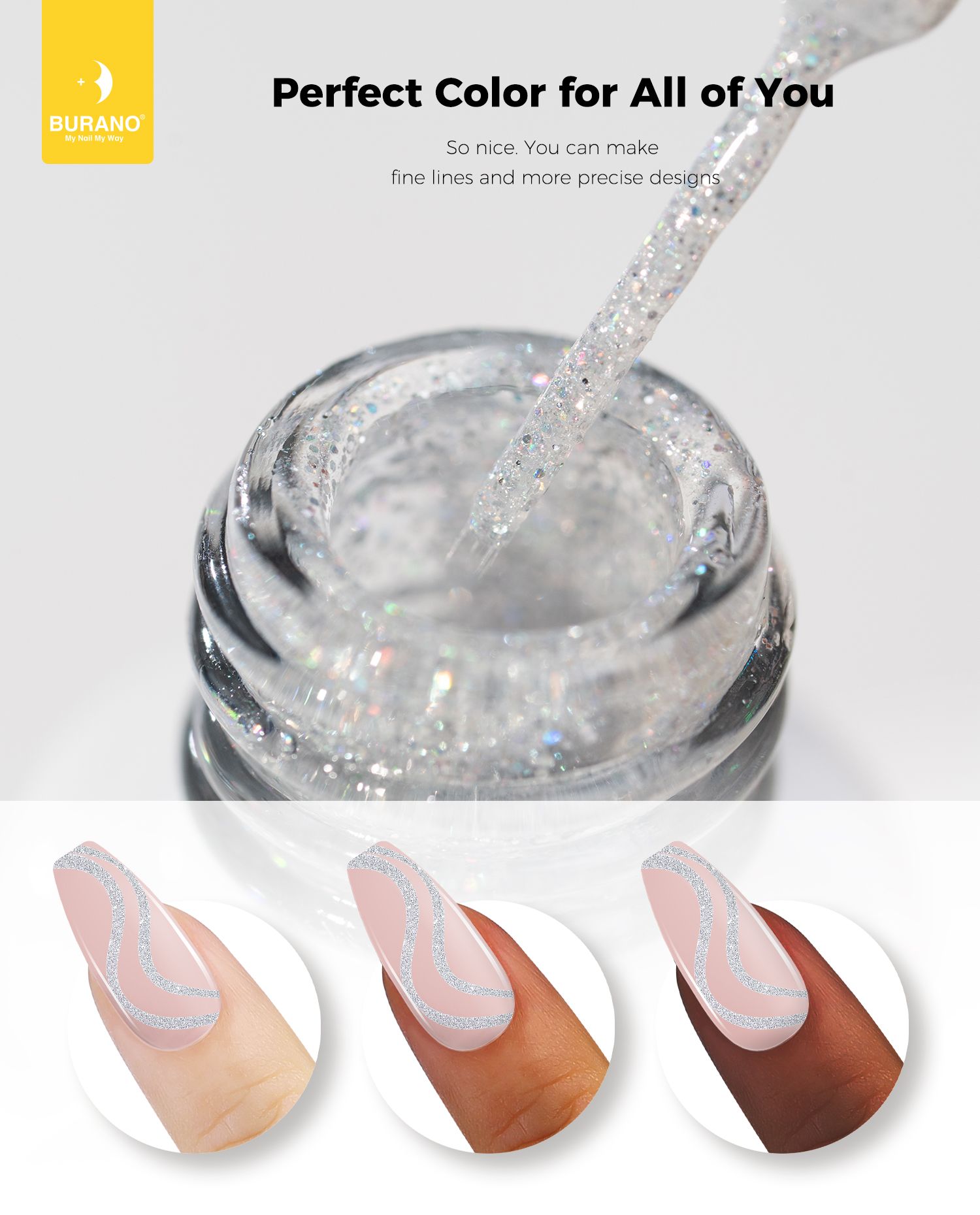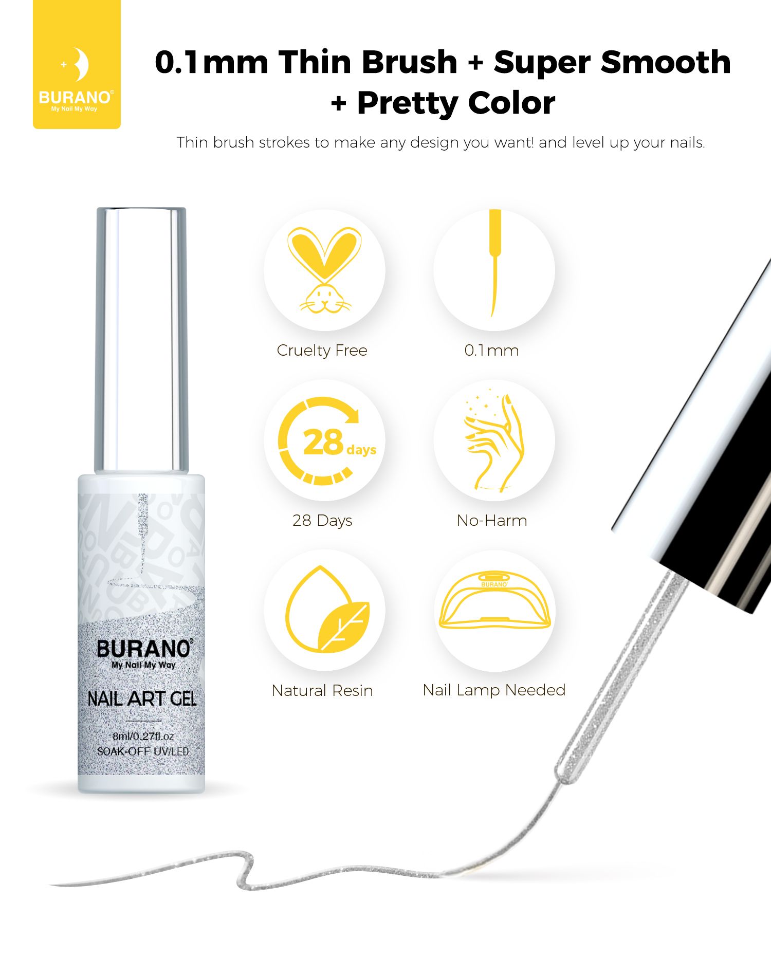 BURANO Gel Nail Polish Liner Nail Art Polish, Black White Purple Red Pink Painted Gel Nail Design Polish 1 Bottle, Build in Thin Nail Brush Chrome Gel Nail Polish Curing Required 8ml (LX8)…