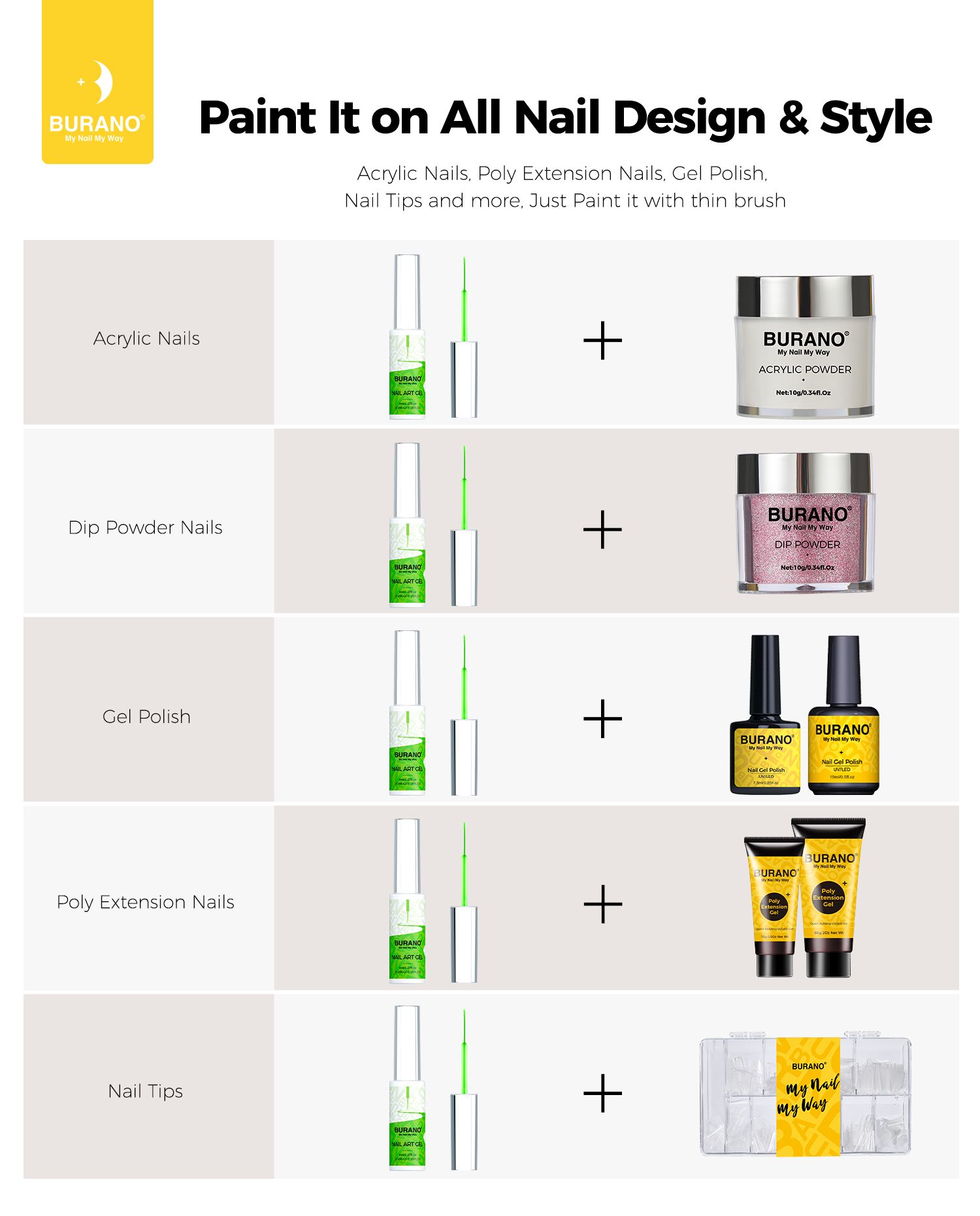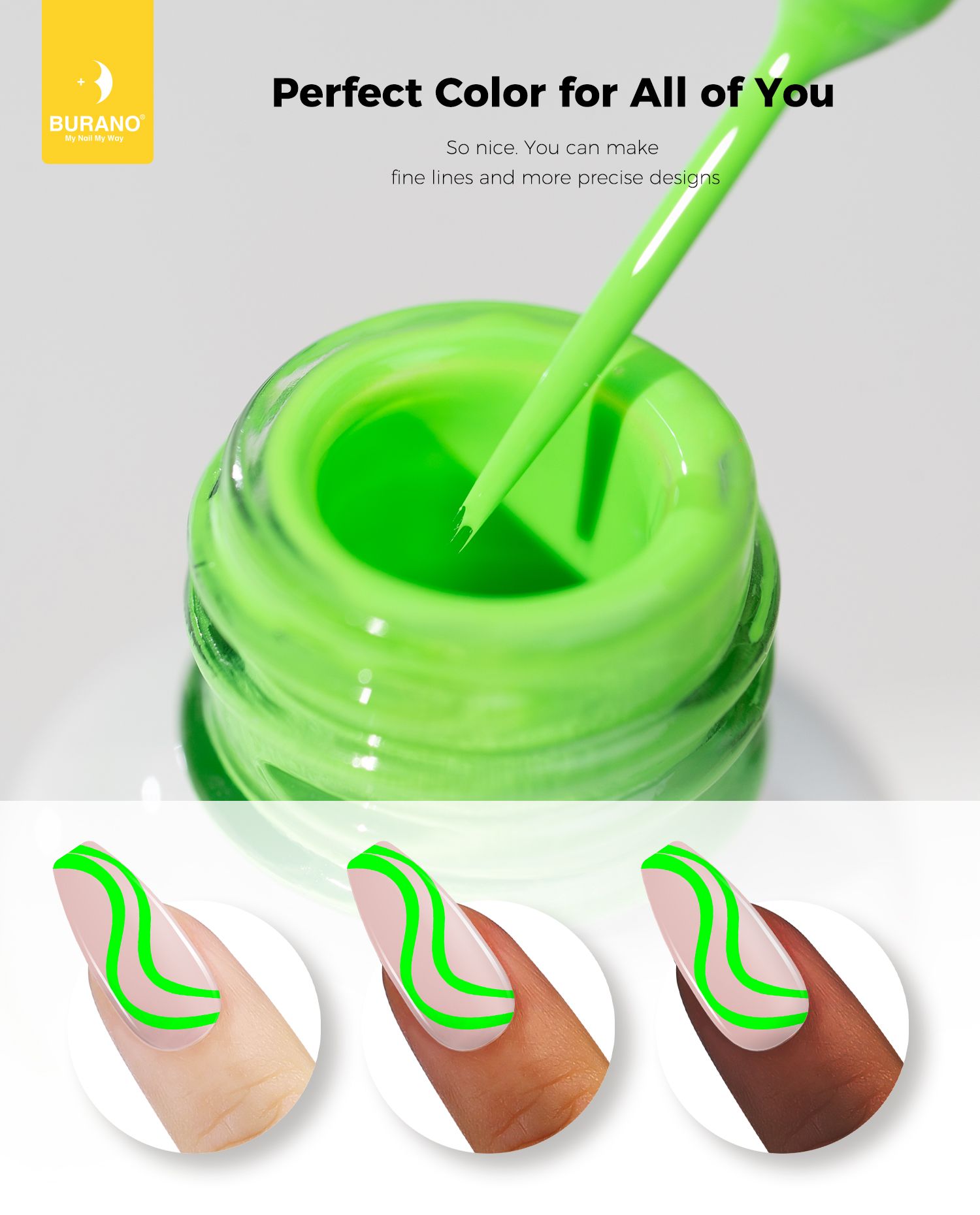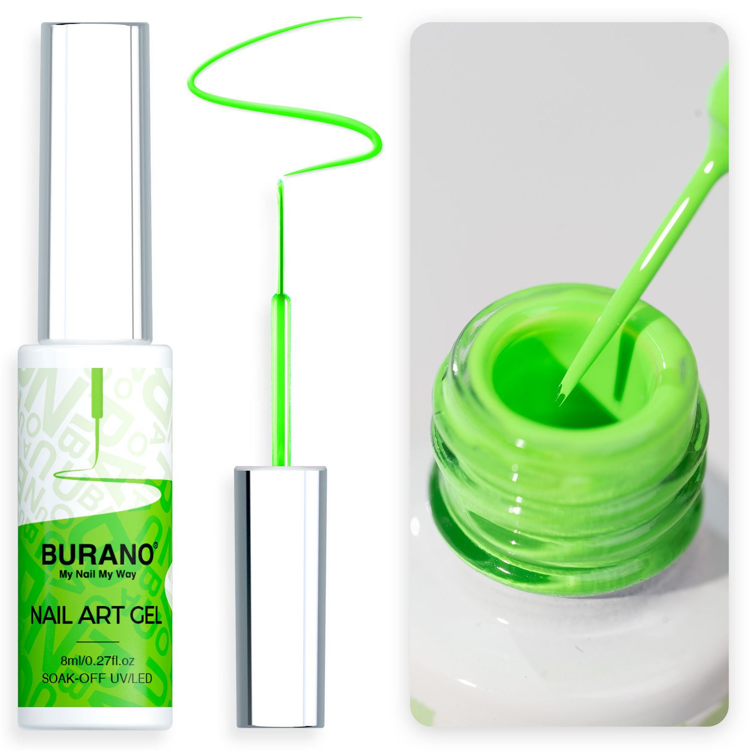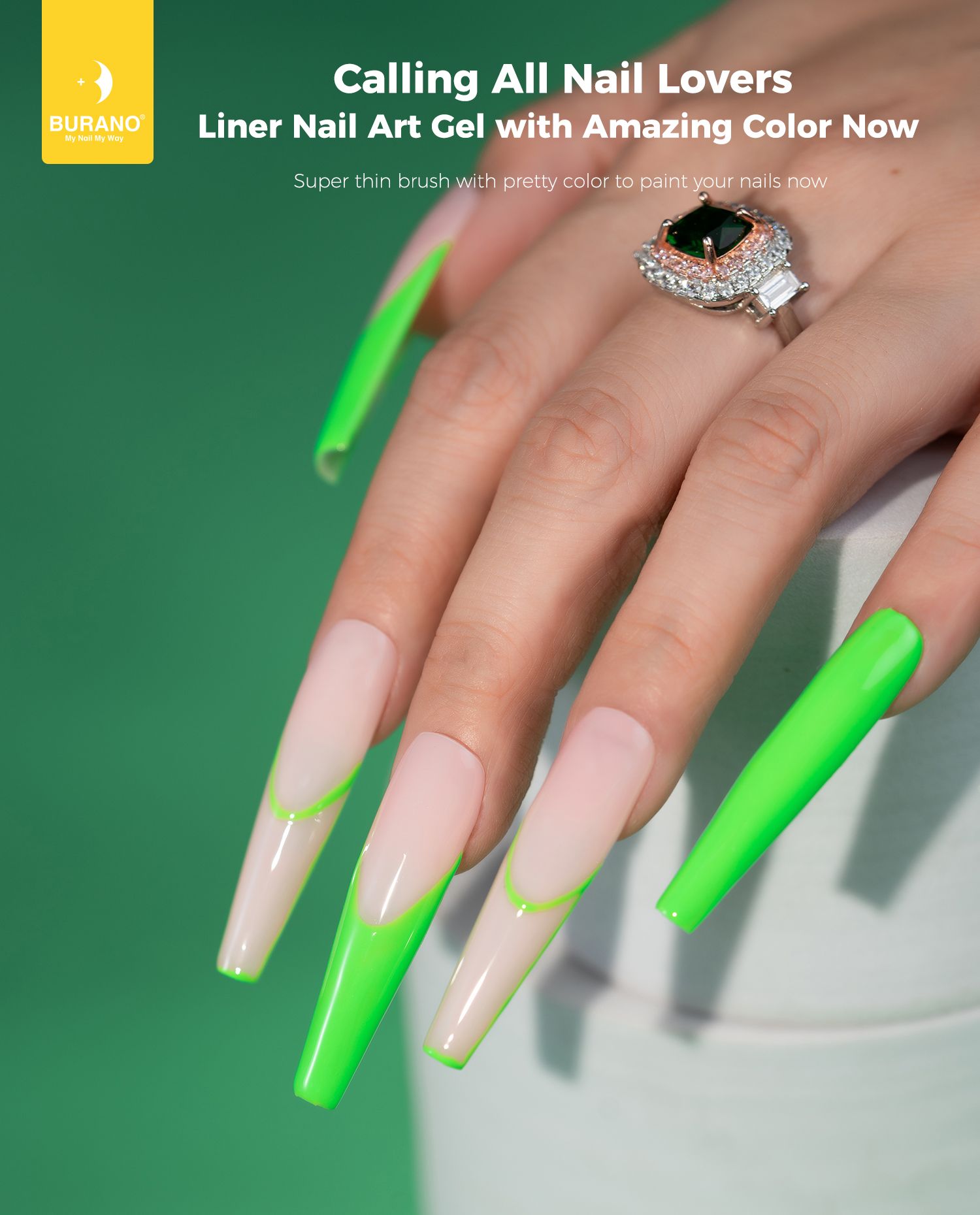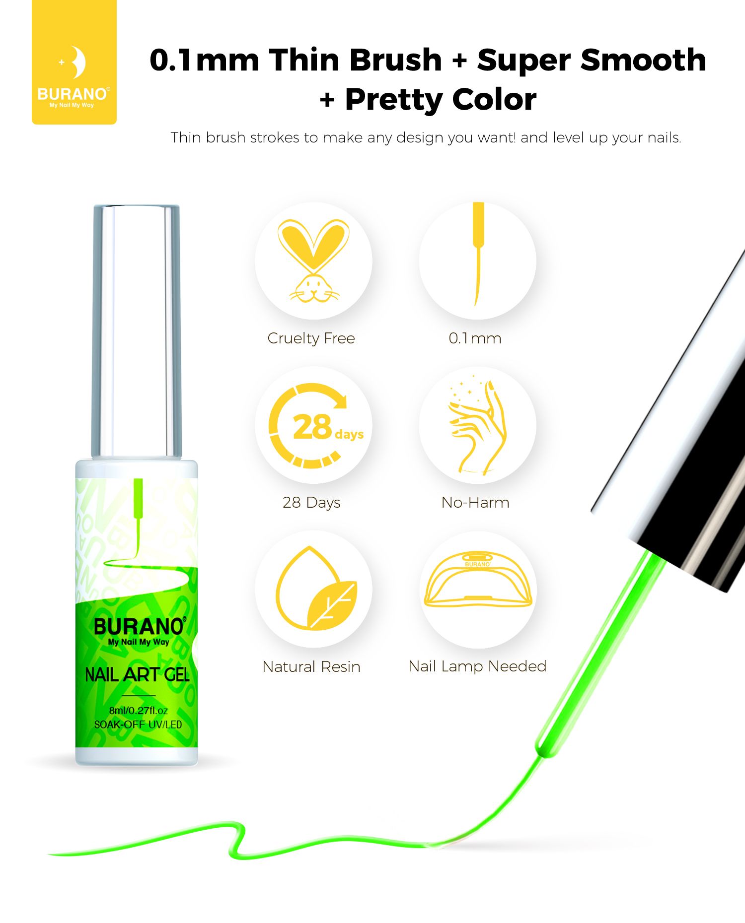 BURANO Gel Nail Polish Liner Nail Art Polish, Black White Purple Red Pink Painted Gel Nail Design Polish 1 Bottle, Build in Thin Nail Brush Chrome Gel Nail Polish Curing Required 8ml (LX9)