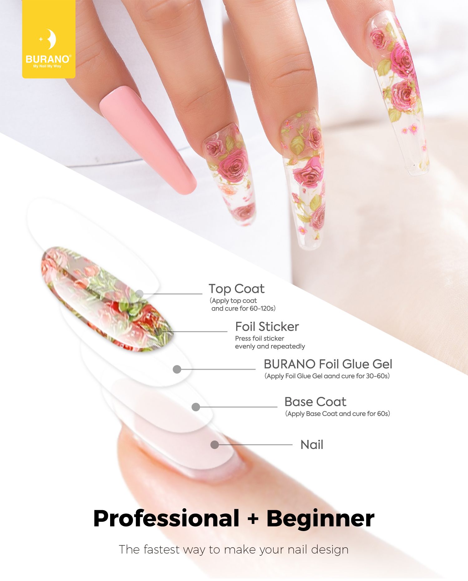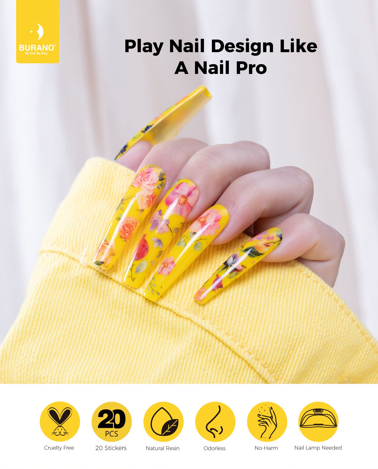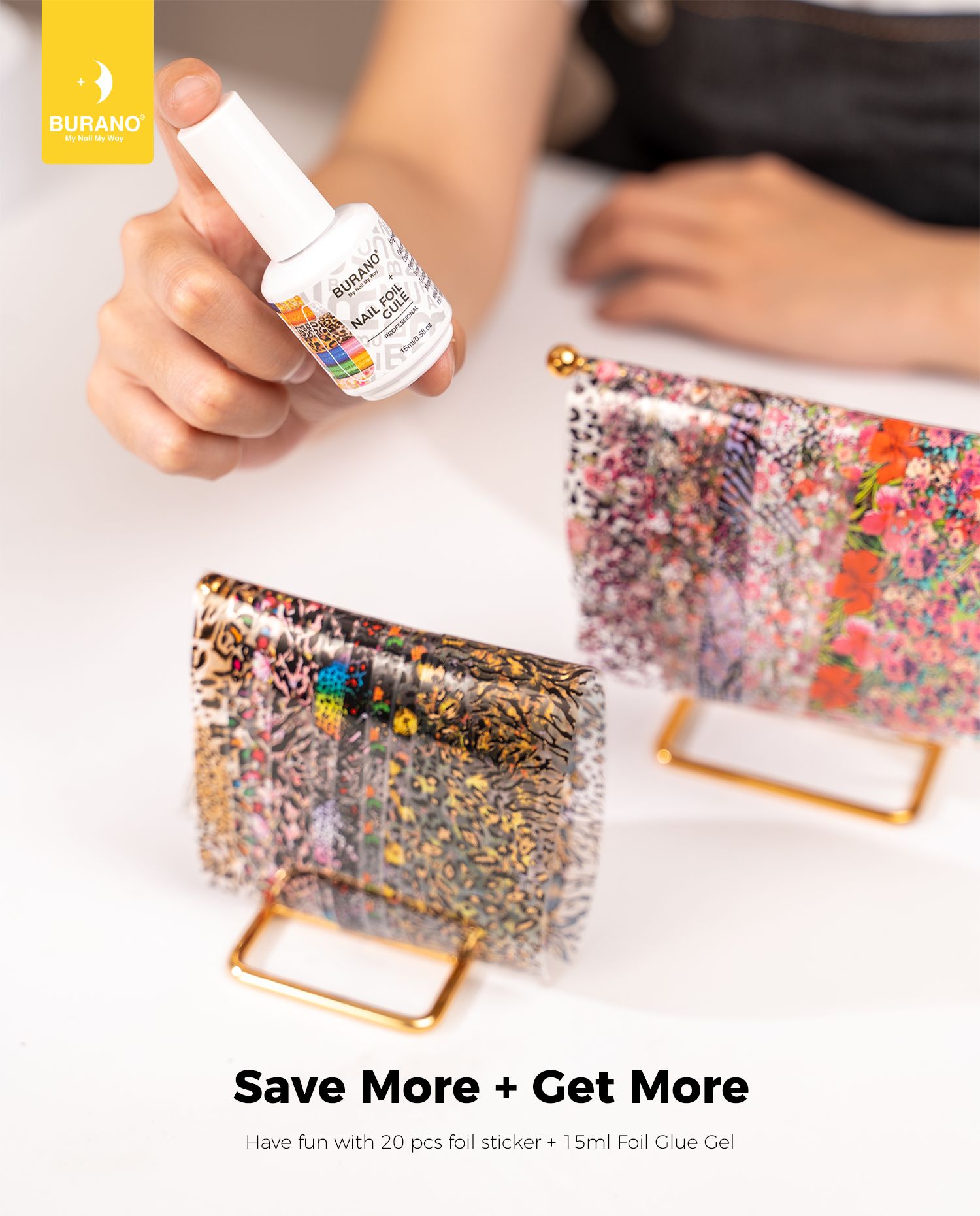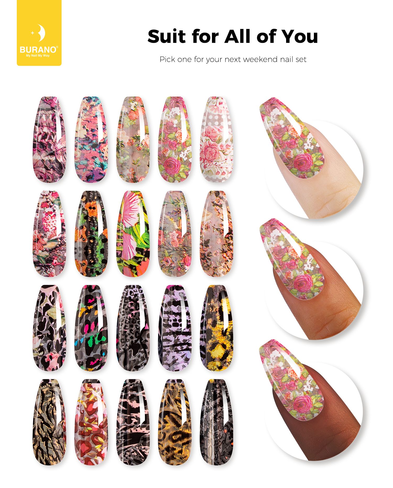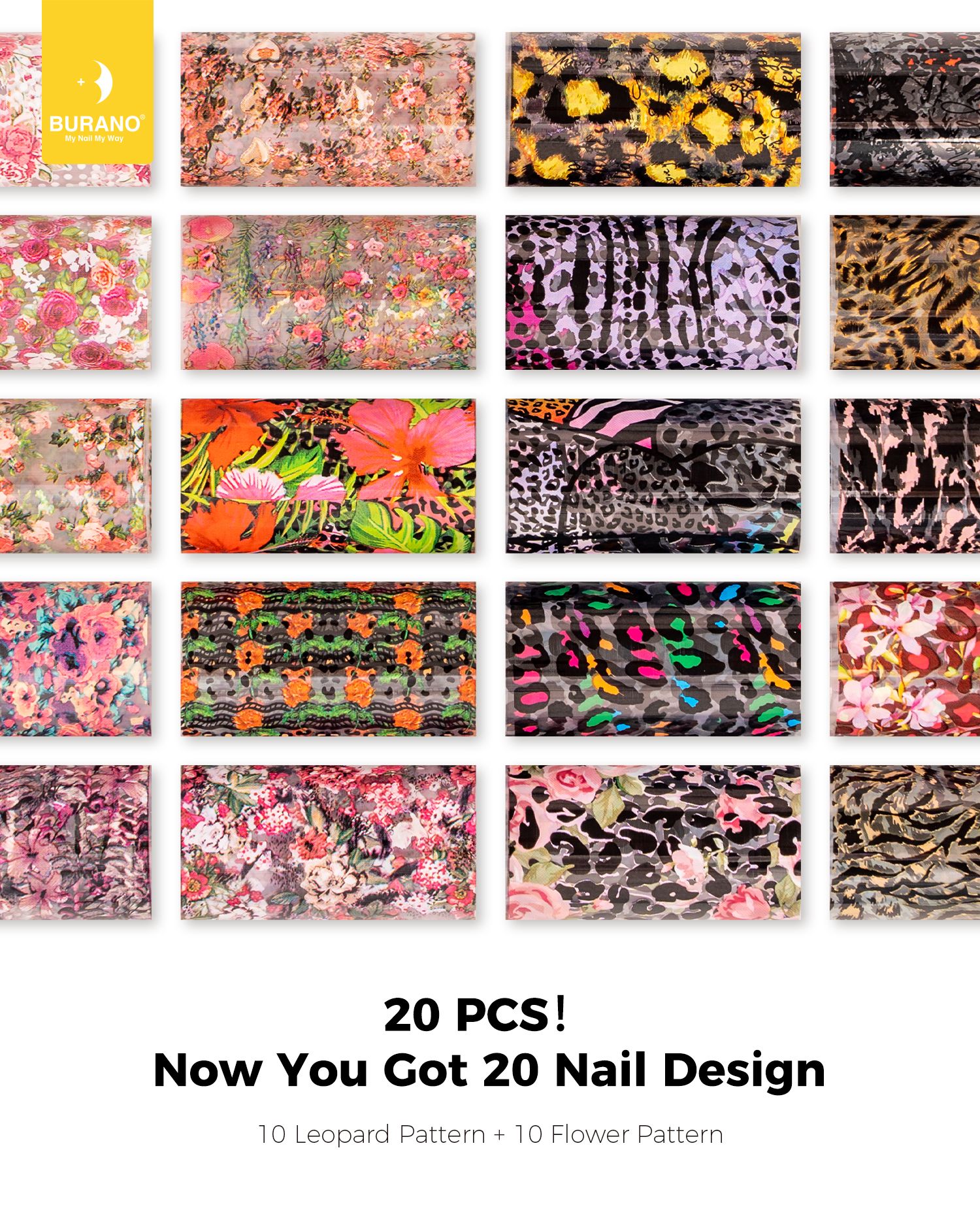 BURANO Nail Art Nail Foil Glue Gel + 20 Pcs(Leopard Flower) 01