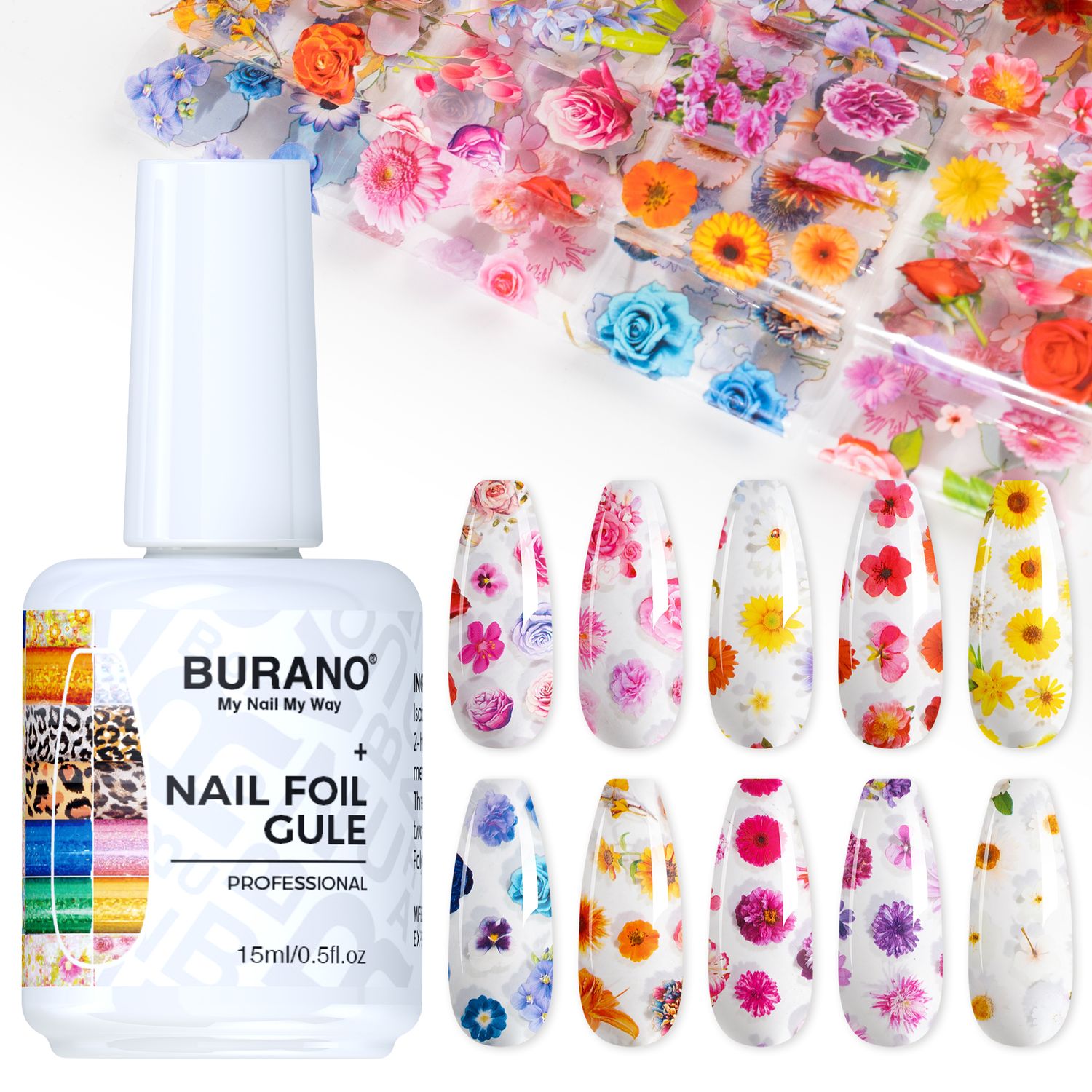 BURANO Nail Art Nail Foil Glue Gel-10PCS Flower Foil 09