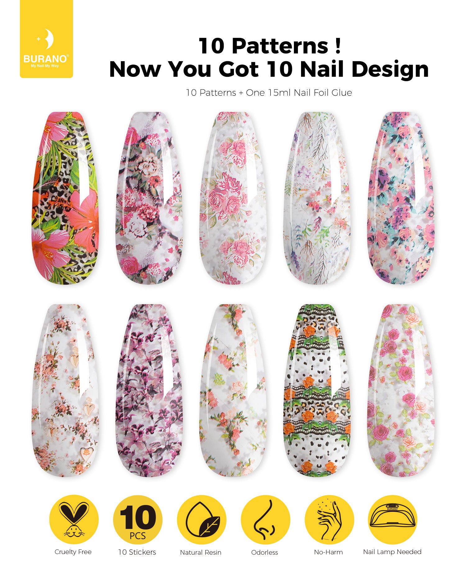 BURANO Nail Art Nail Foil Glue Gel-10PCS Flower Foil 10