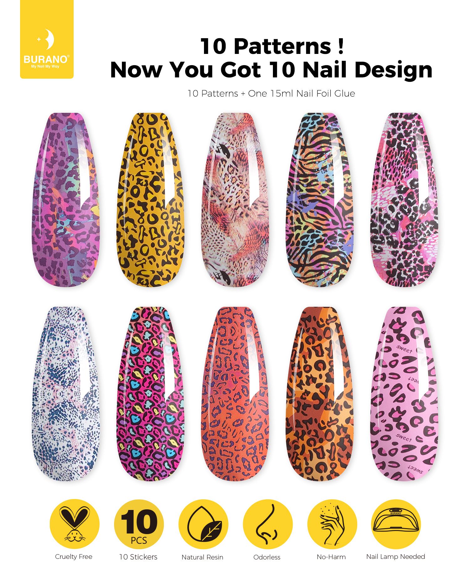 BURANO Nail Art Nail Foil Glue Gel-10PCS Leopard Foil 07