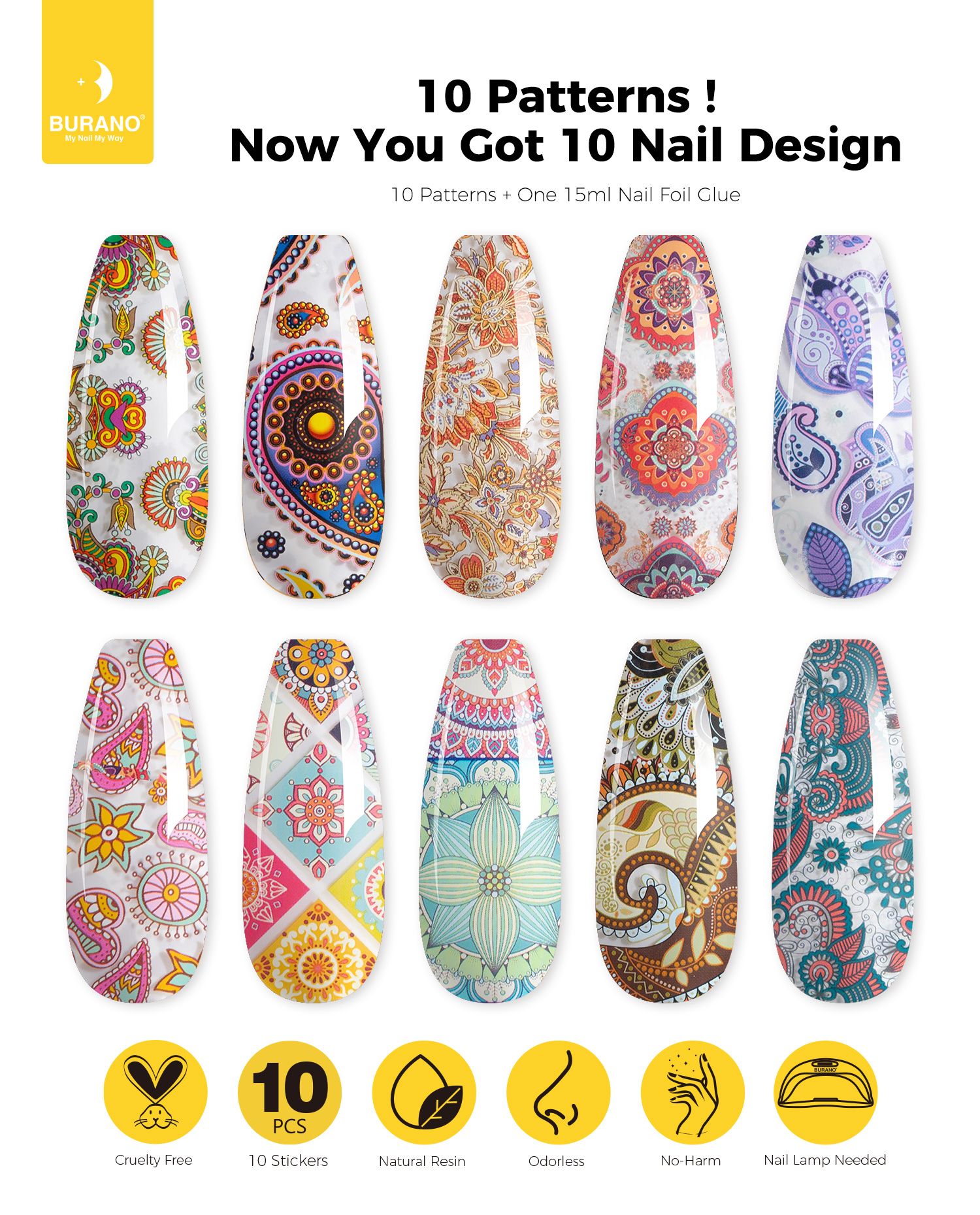 BURANO Nail Art Nail Foil Glue Gel-10PCS Popular Foil 12