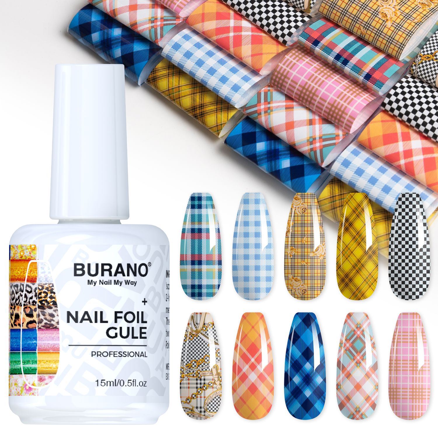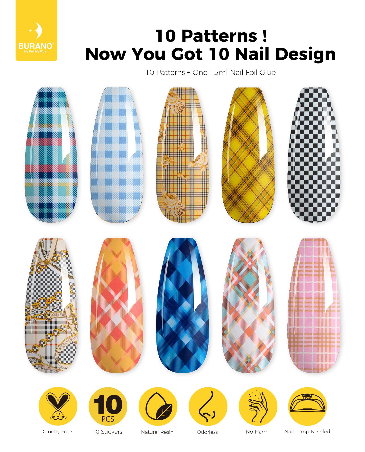 BURANO Nail Art Nail Foil Glue Gel-10PCS Tartan Foil 13
