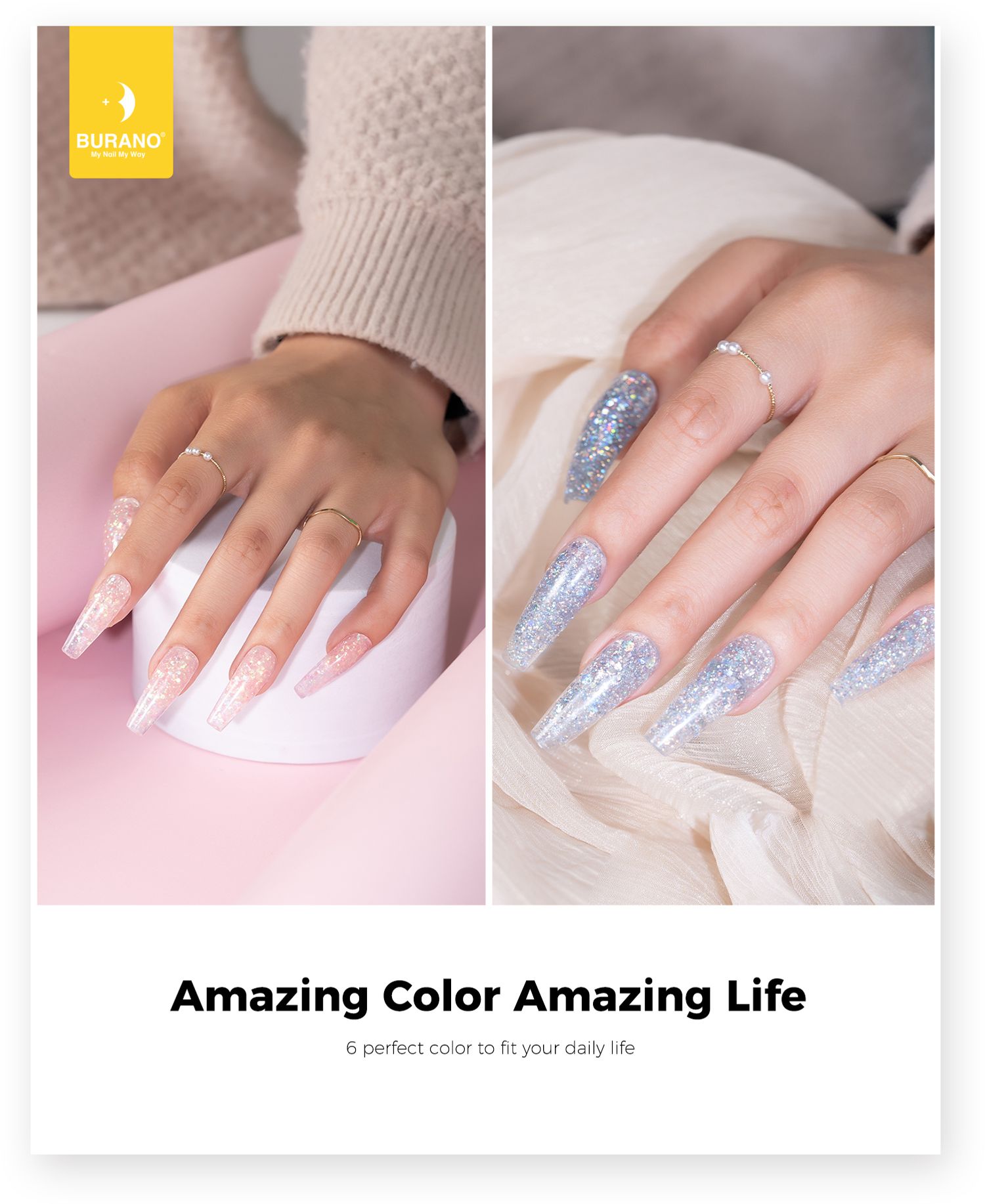 BURANO Poly Extension Gel 6 Colors Set-Glitter