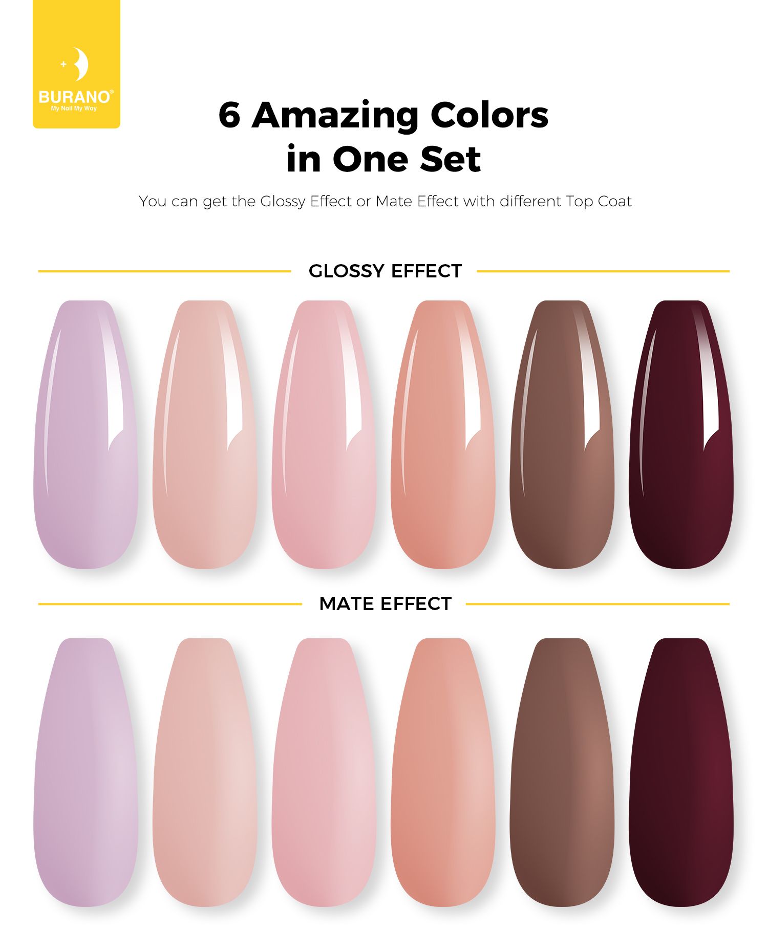 BURANO Poly Extension Gel 6 Colors Set-Nude Brown