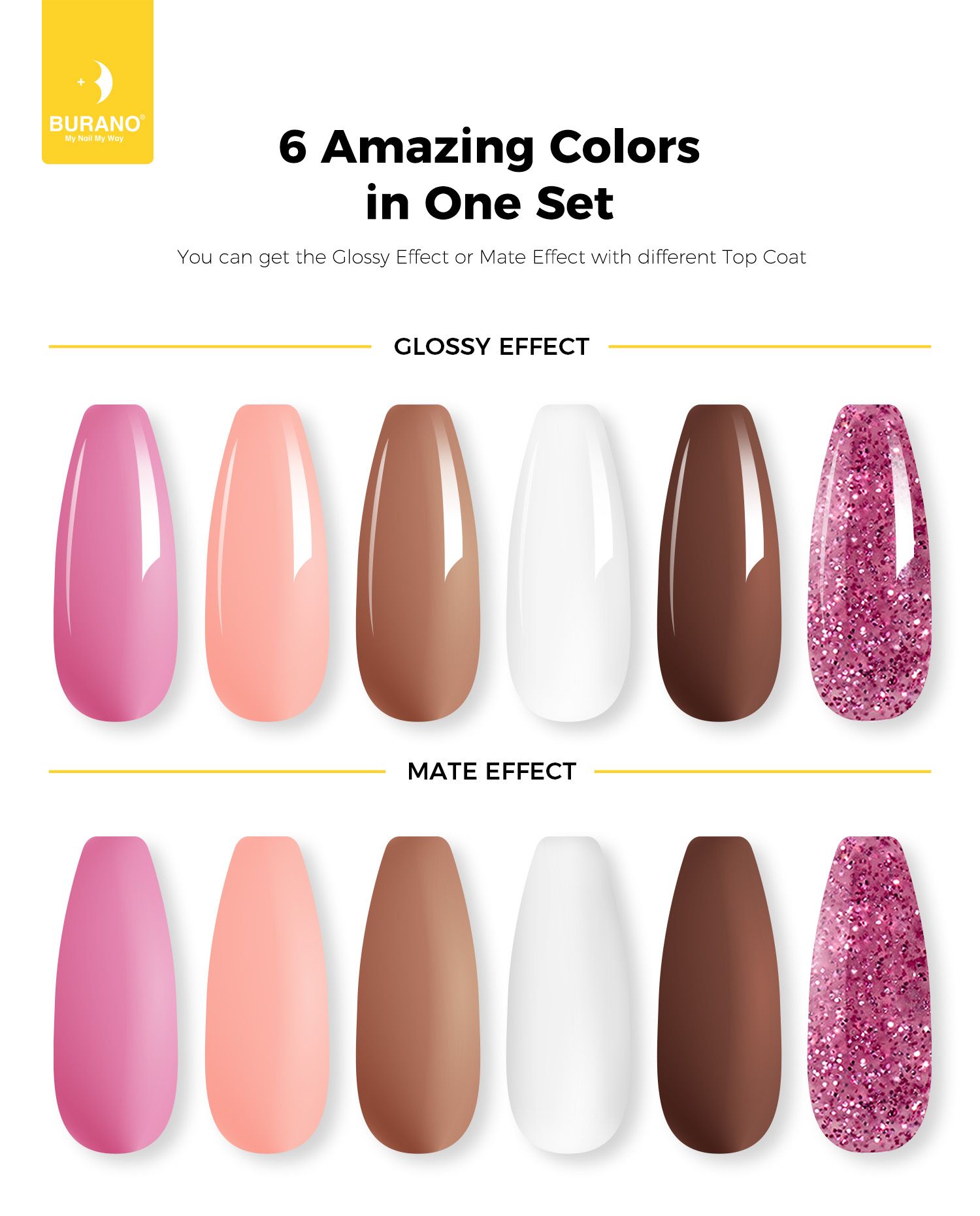 BURANO Poly Extension Gel 6 Colors Set-pink