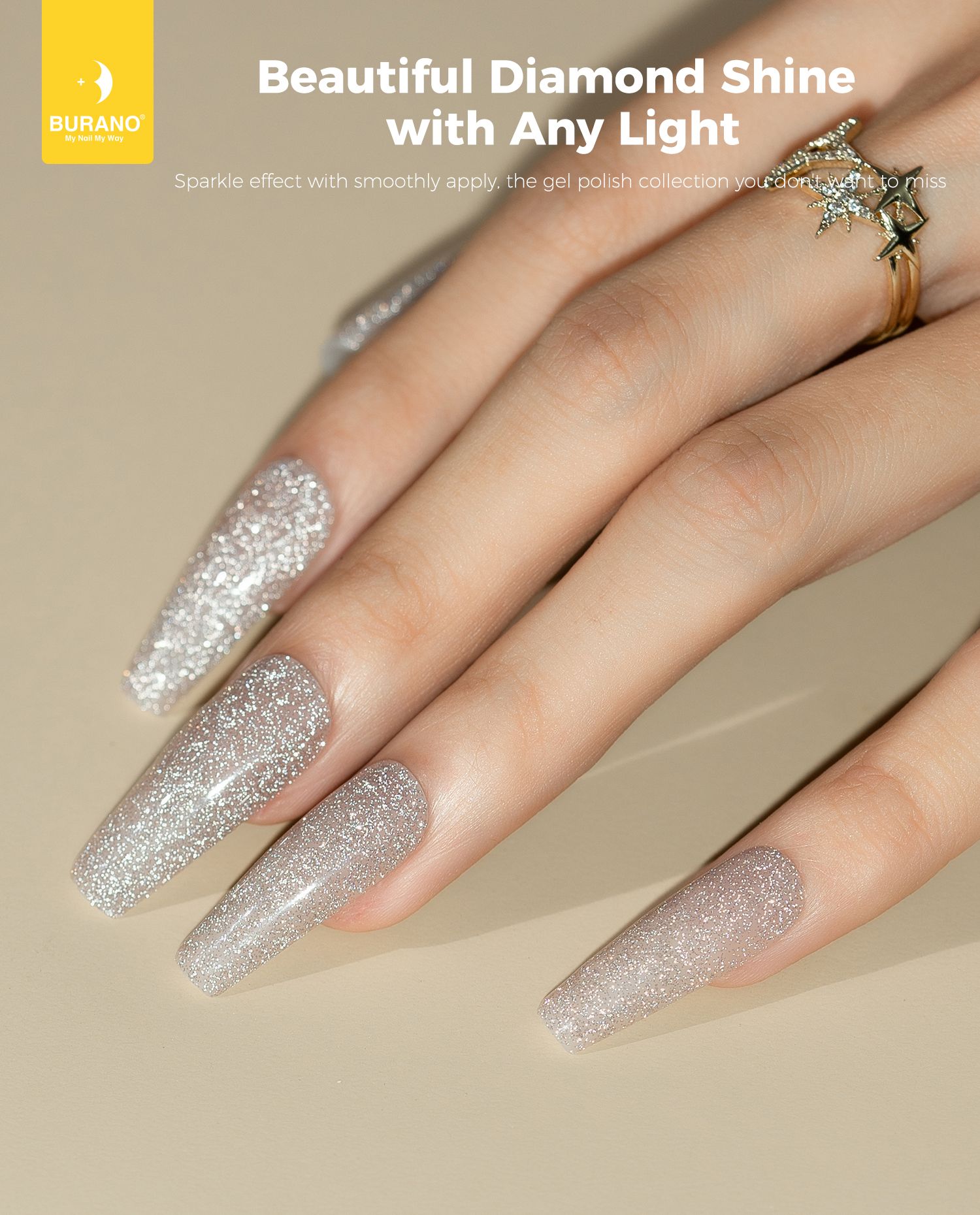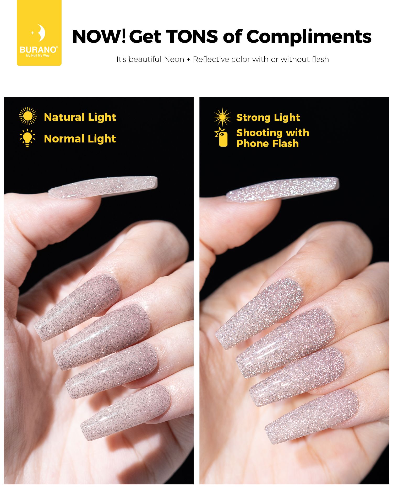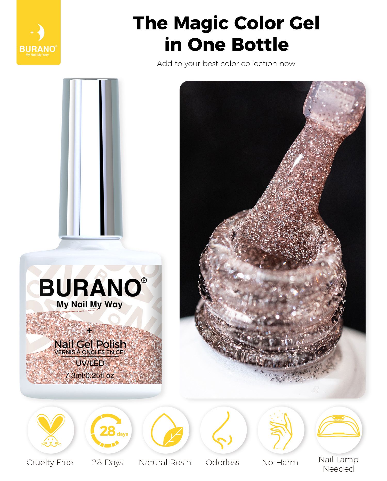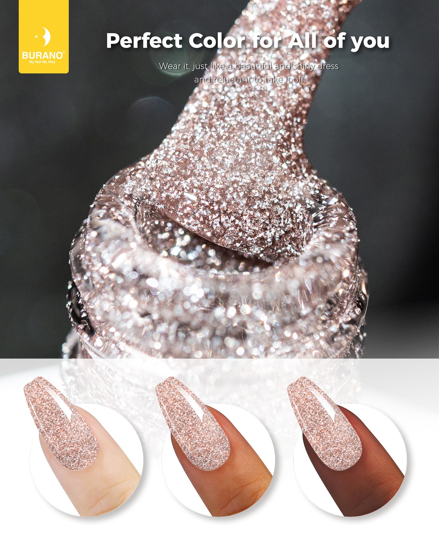 BURANO Reflective Glitter Gel Nail Polish, UV LED 7.3ml Nude Brown Sparkle Nail Polish Holographic Glitter Gel Curing Need for DIY Home S1