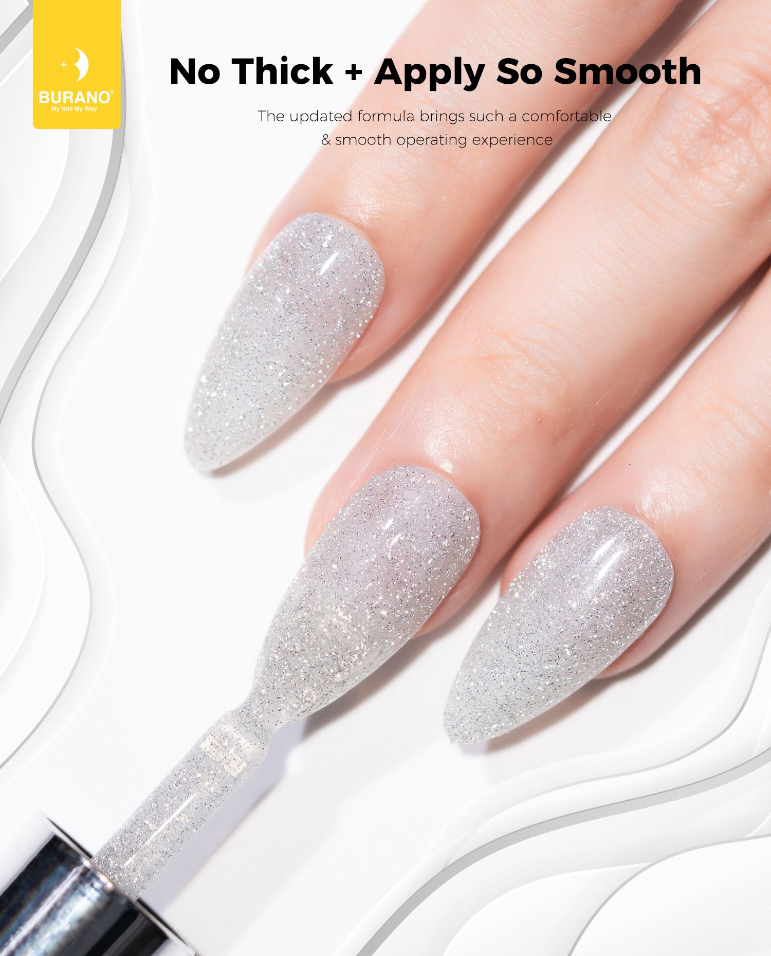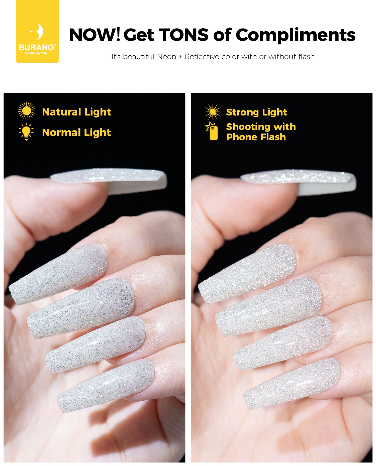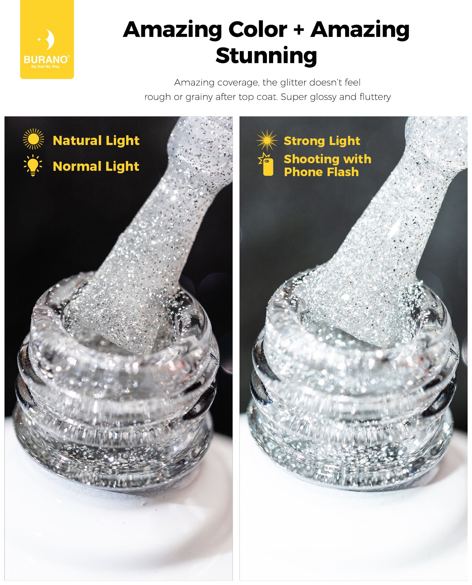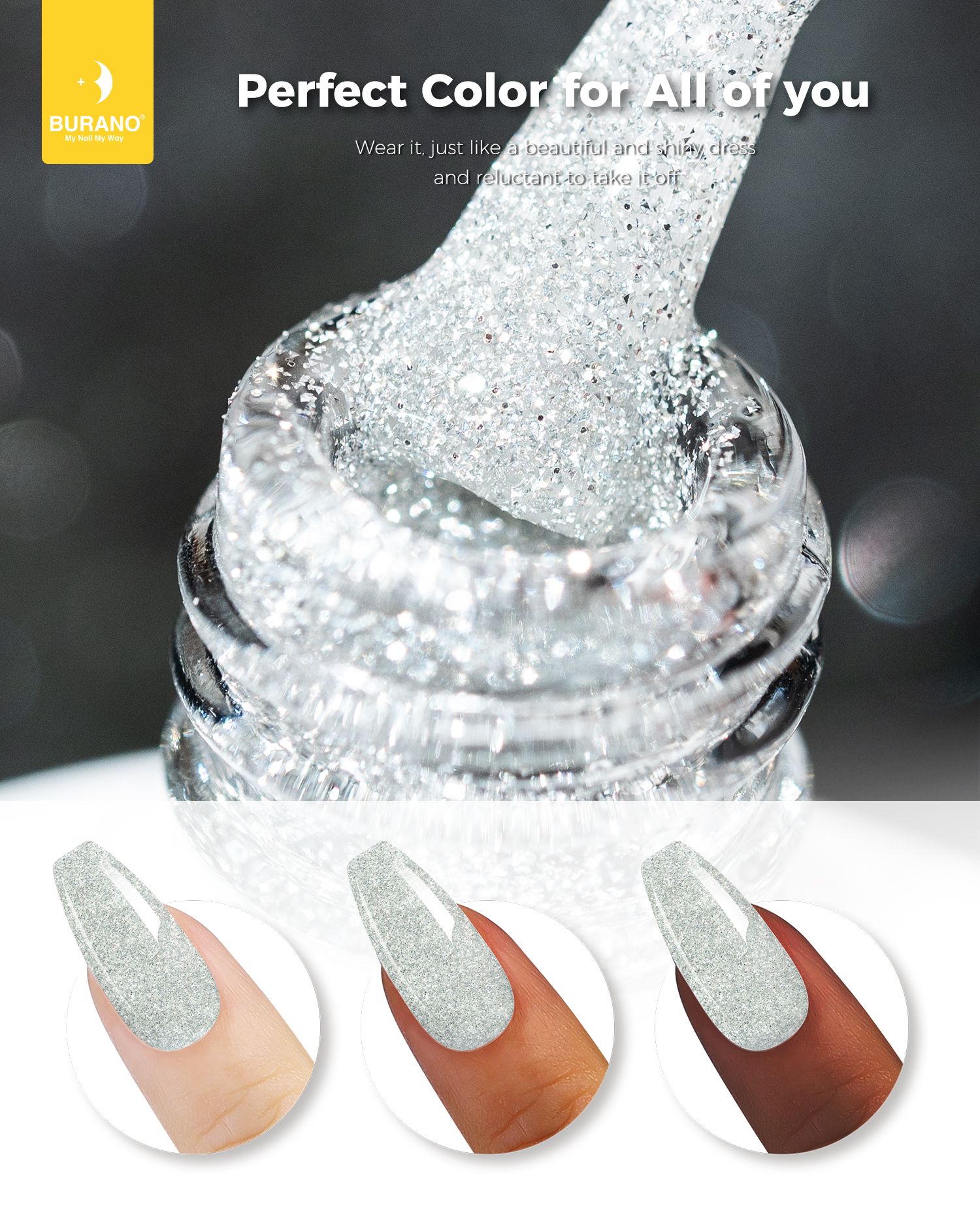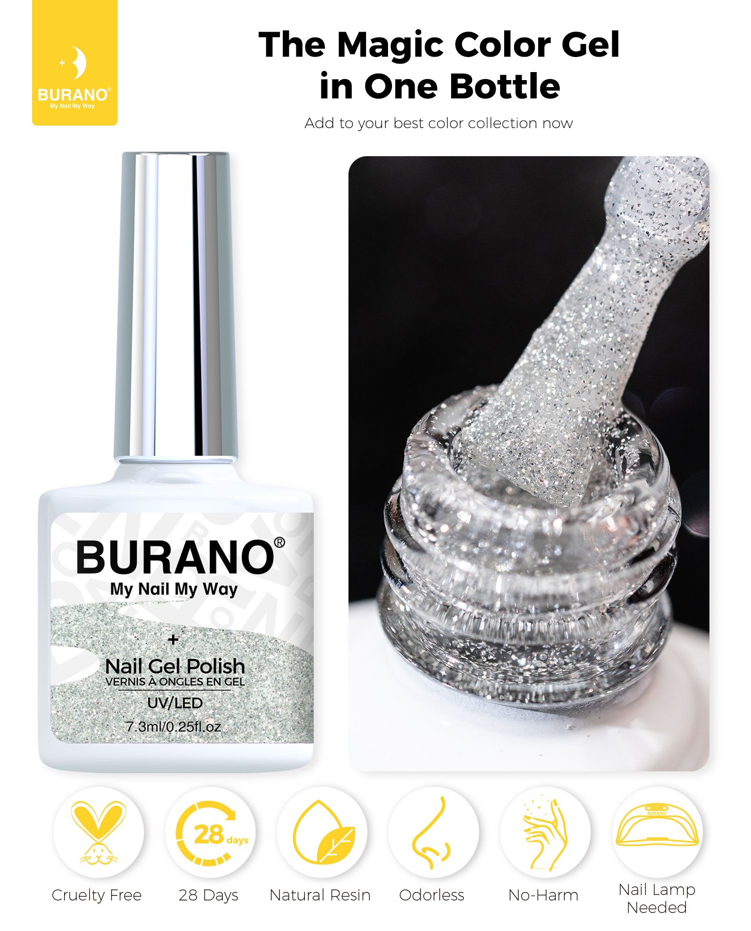BURANO Silver Reflective Glitter Gel Nail Polish, UV LED 7.3ml Sparkle Nail Polish Holographic Glitter Gel Curing Need for DIY Home S11