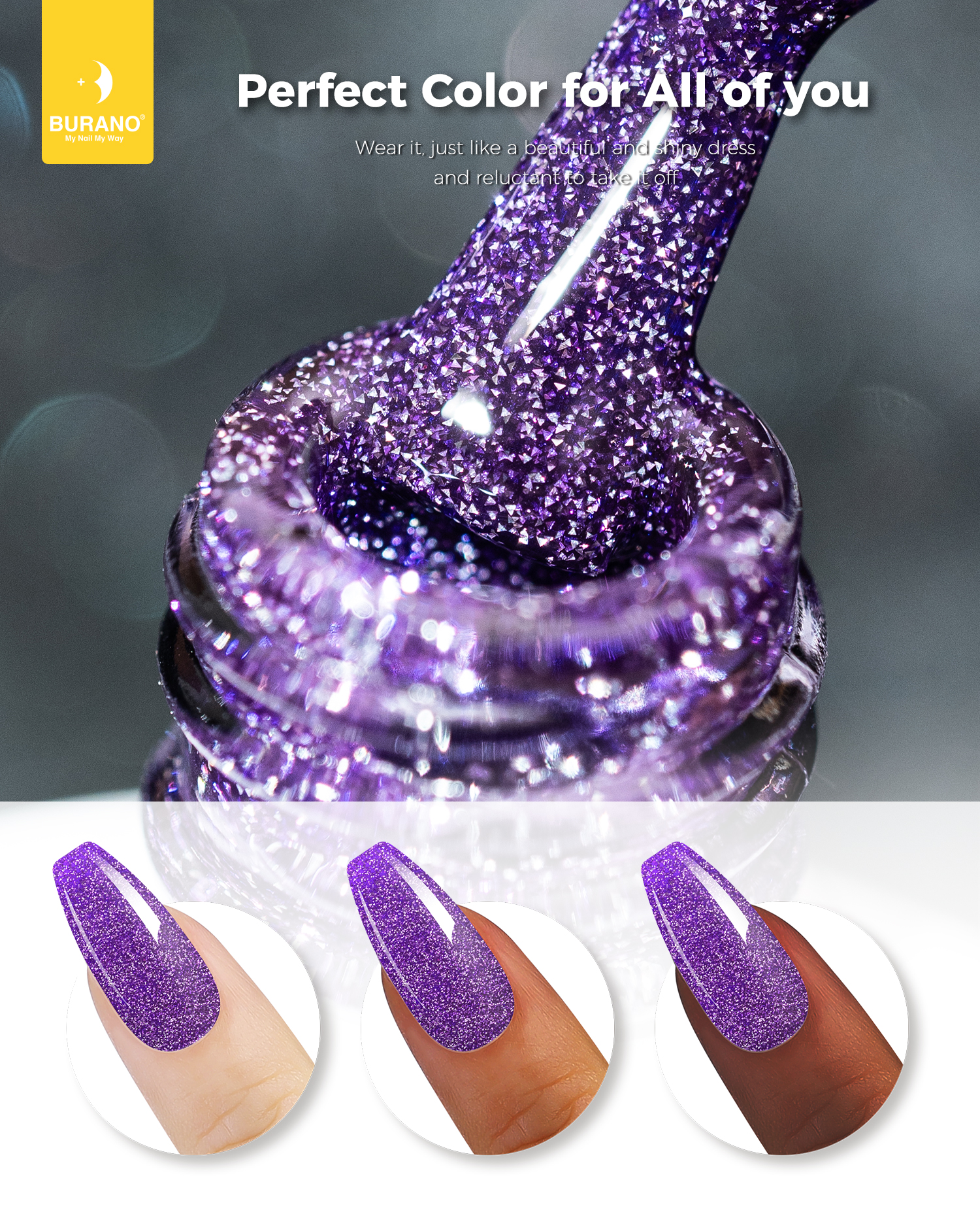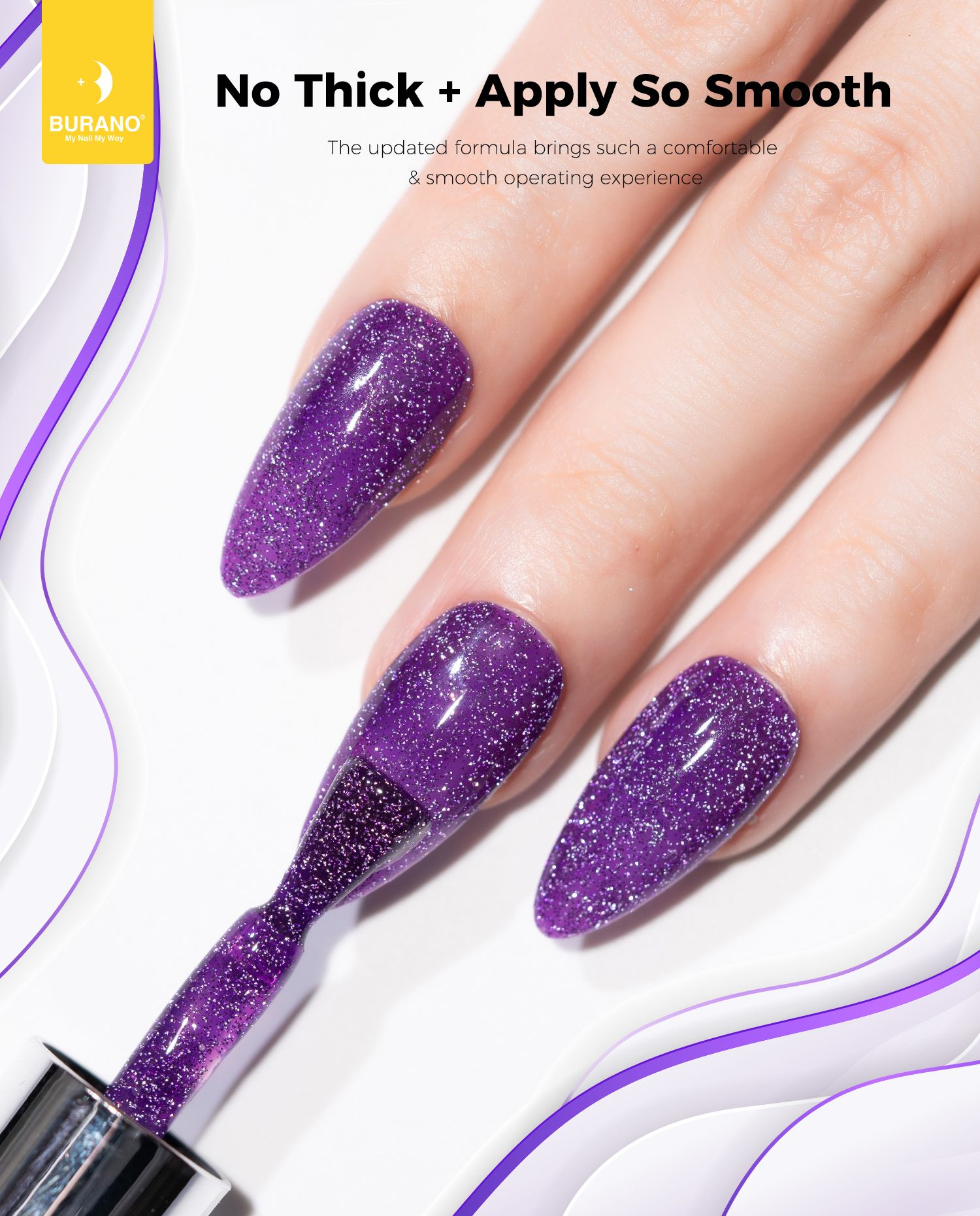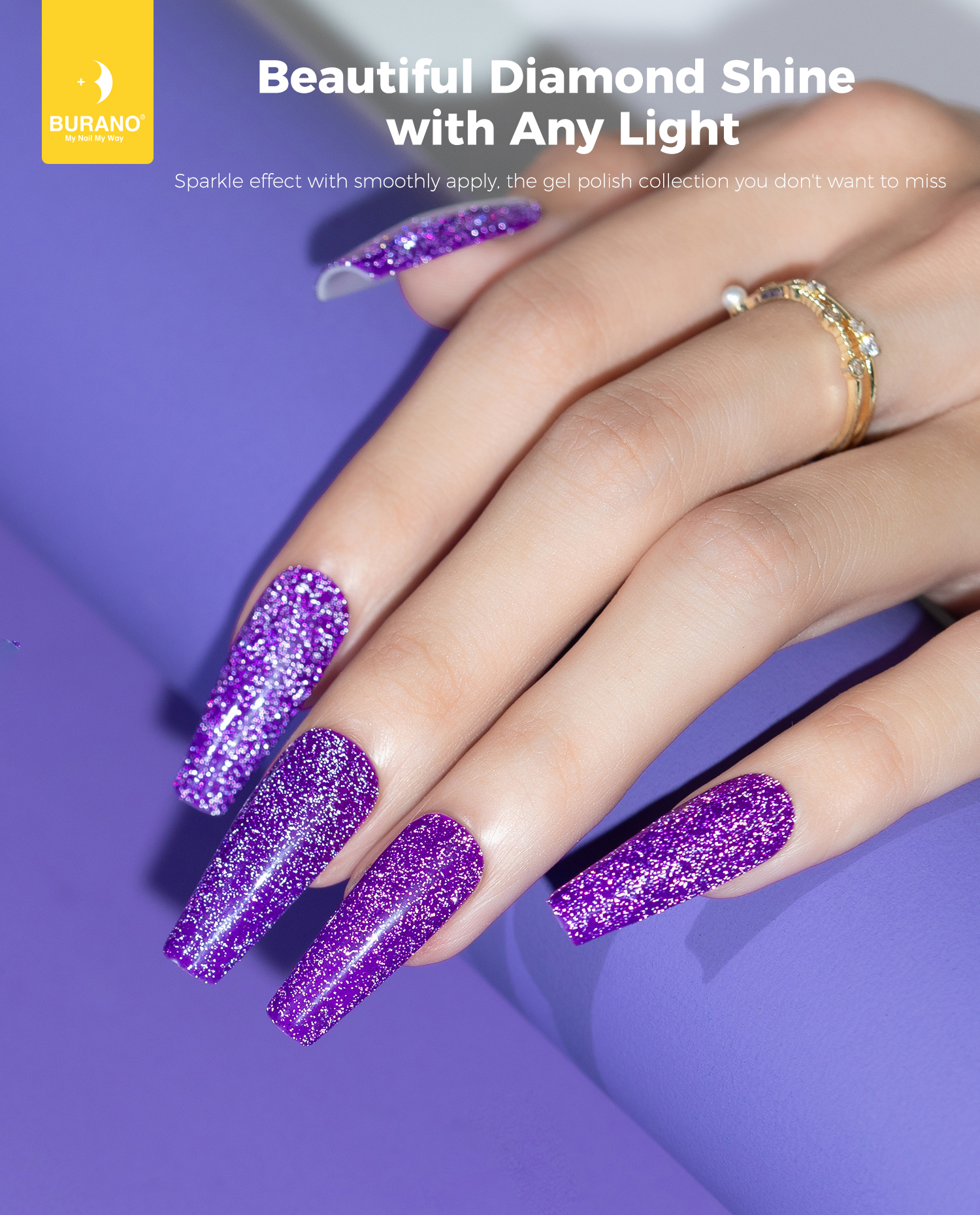 BURANO Reflective Glitter Gel Nail Polish, Purple UV LED 7.3ml Sparkle Nail Polish Holographic Glitter Gel Curing Need for DIY Home S14