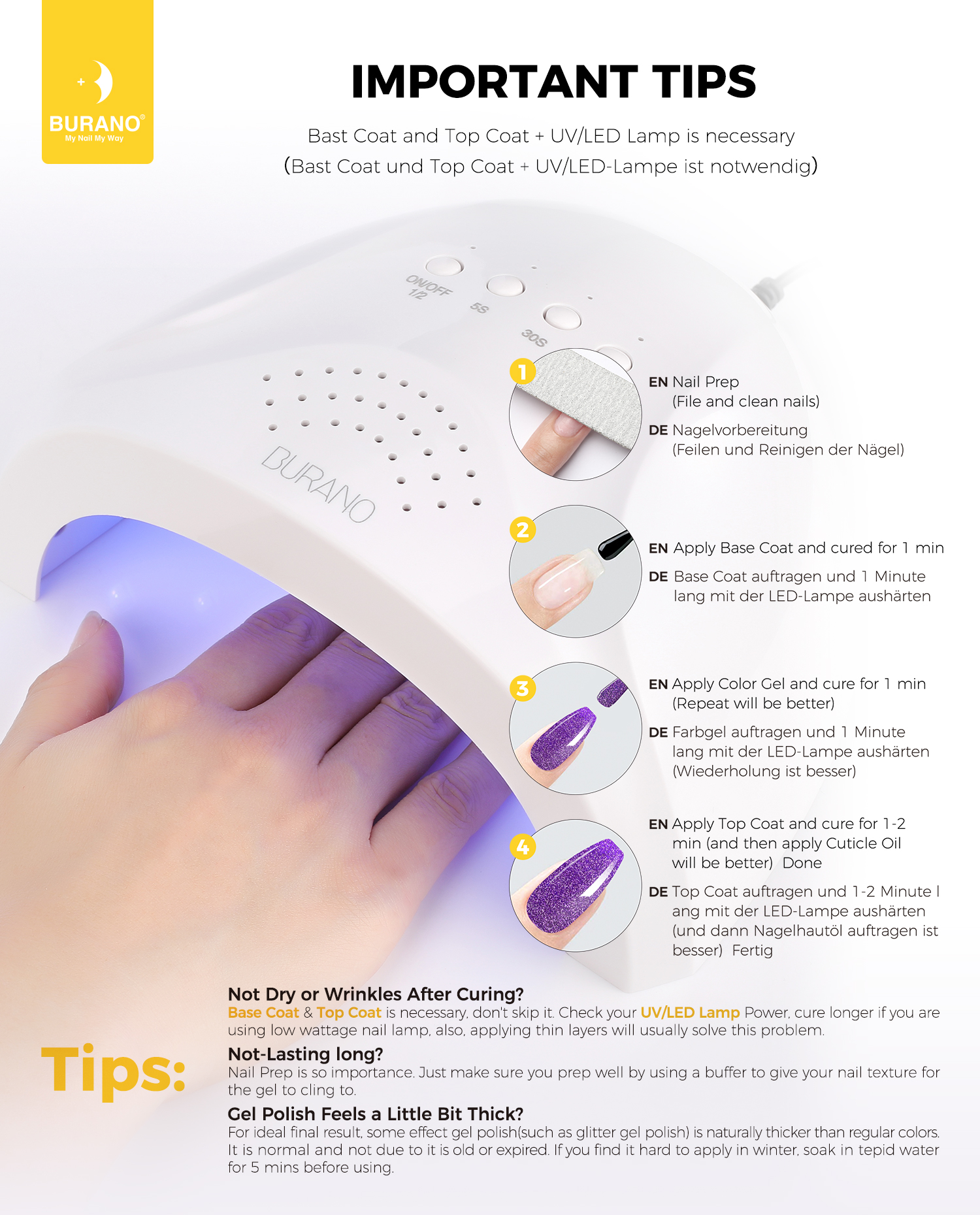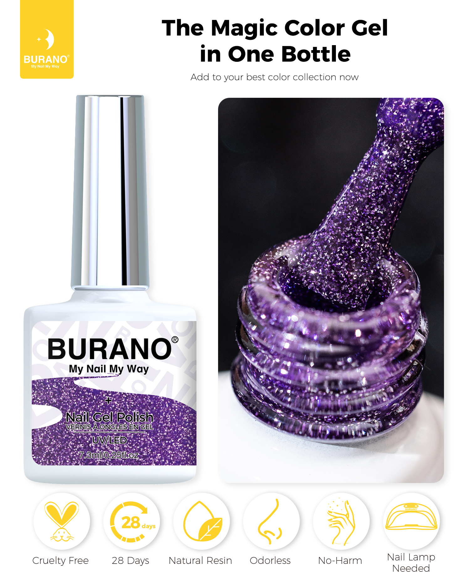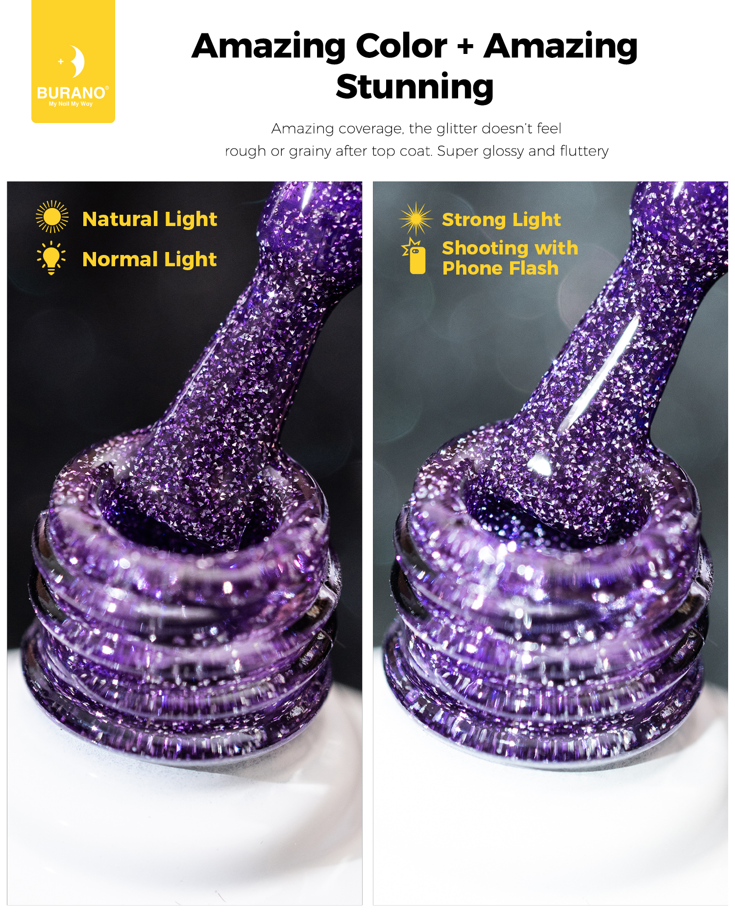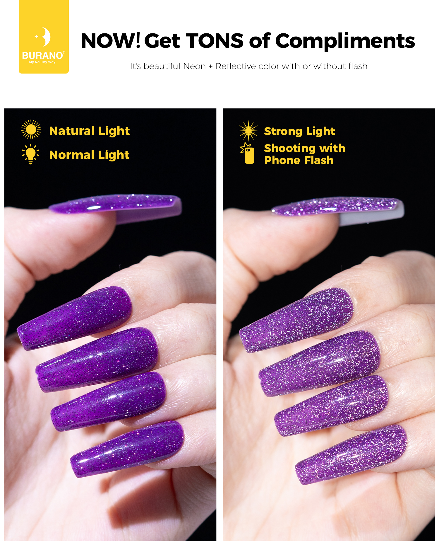 BURANO Reflective Glitter Gel Nail Polish, Purple UV LED 7.3ml Sparkle Nail Polish Holographic Glitter Gel Curing Need for DIY Home S14