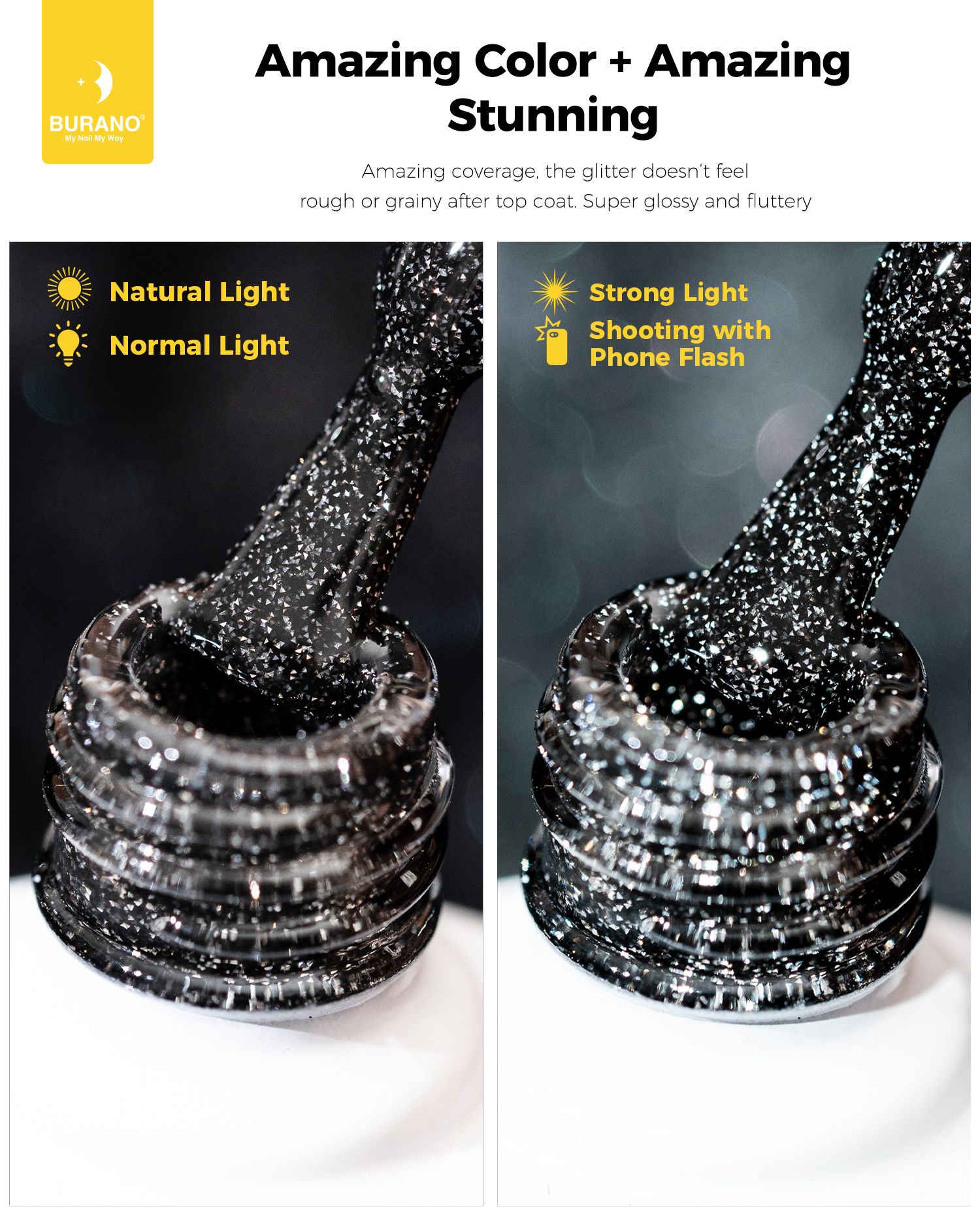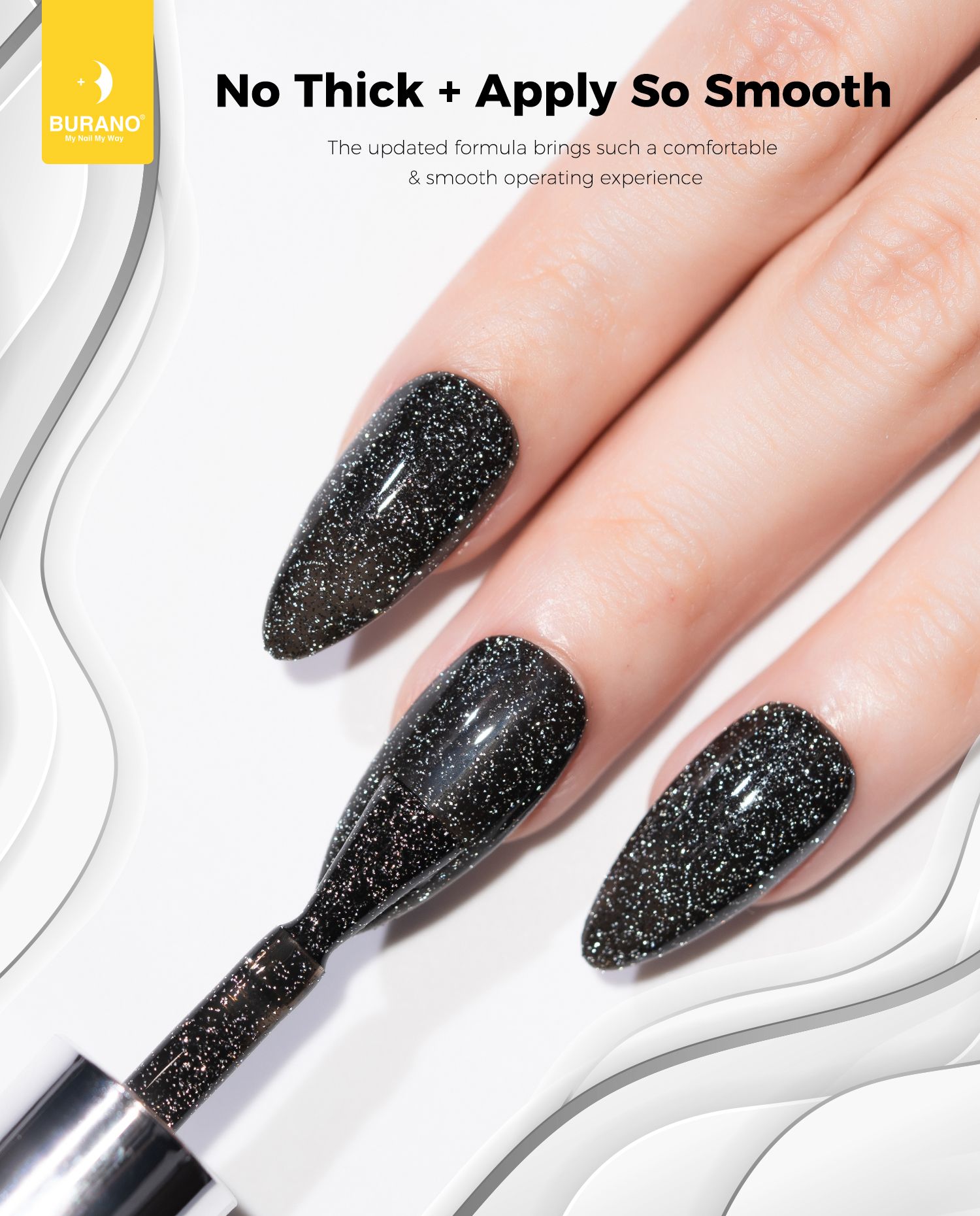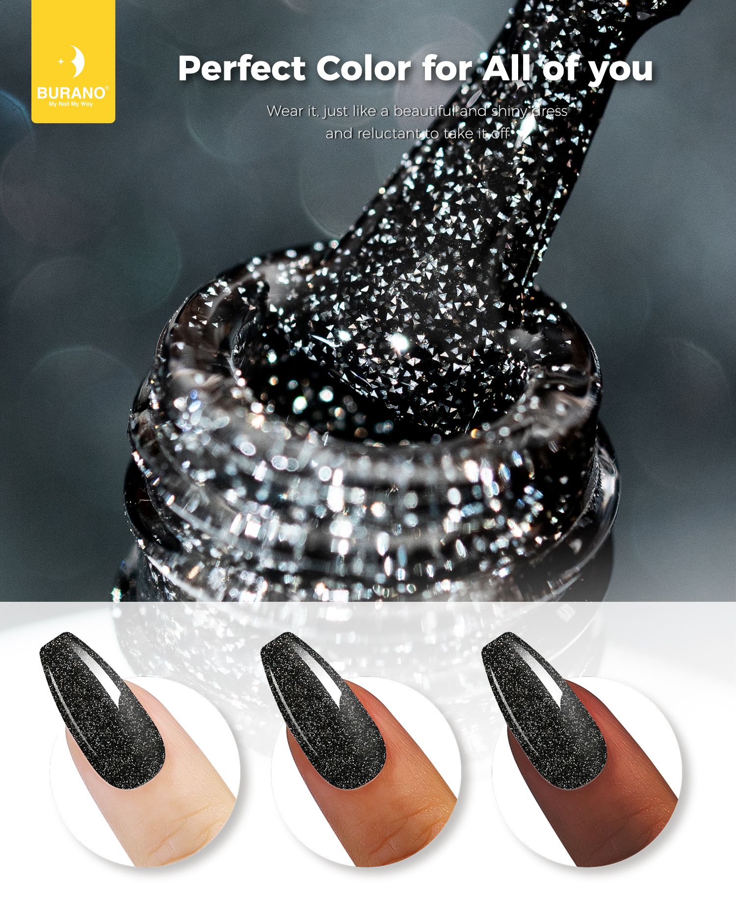 BURANO Reflective Glitter Gel Nail Polish, Black UV LED 7.3ml Sparkle Nail Polish Holographic Glitter Gel Curing Need for DIY Home S15