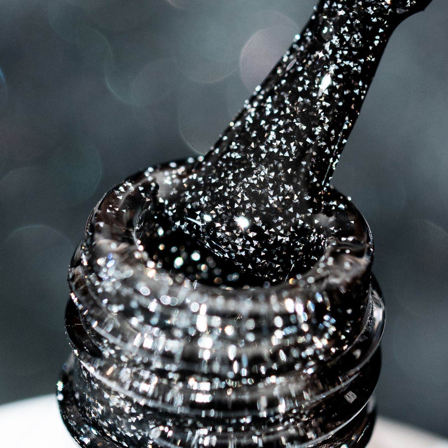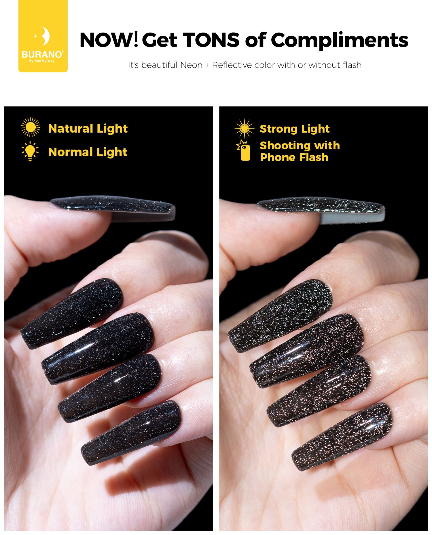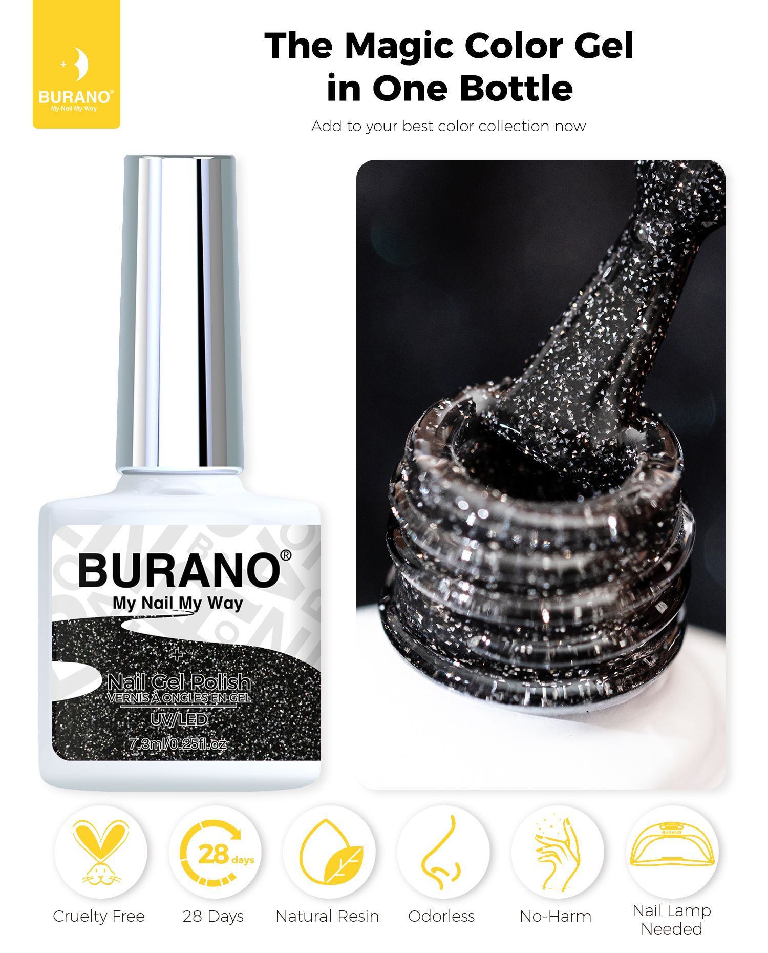 BURANO Reflective Glitter Gel Nail Polish, Black UV LED 7.3ml Sparkle Nail Polish Holographic Glitter Gel Curing Need for DIY Home S15