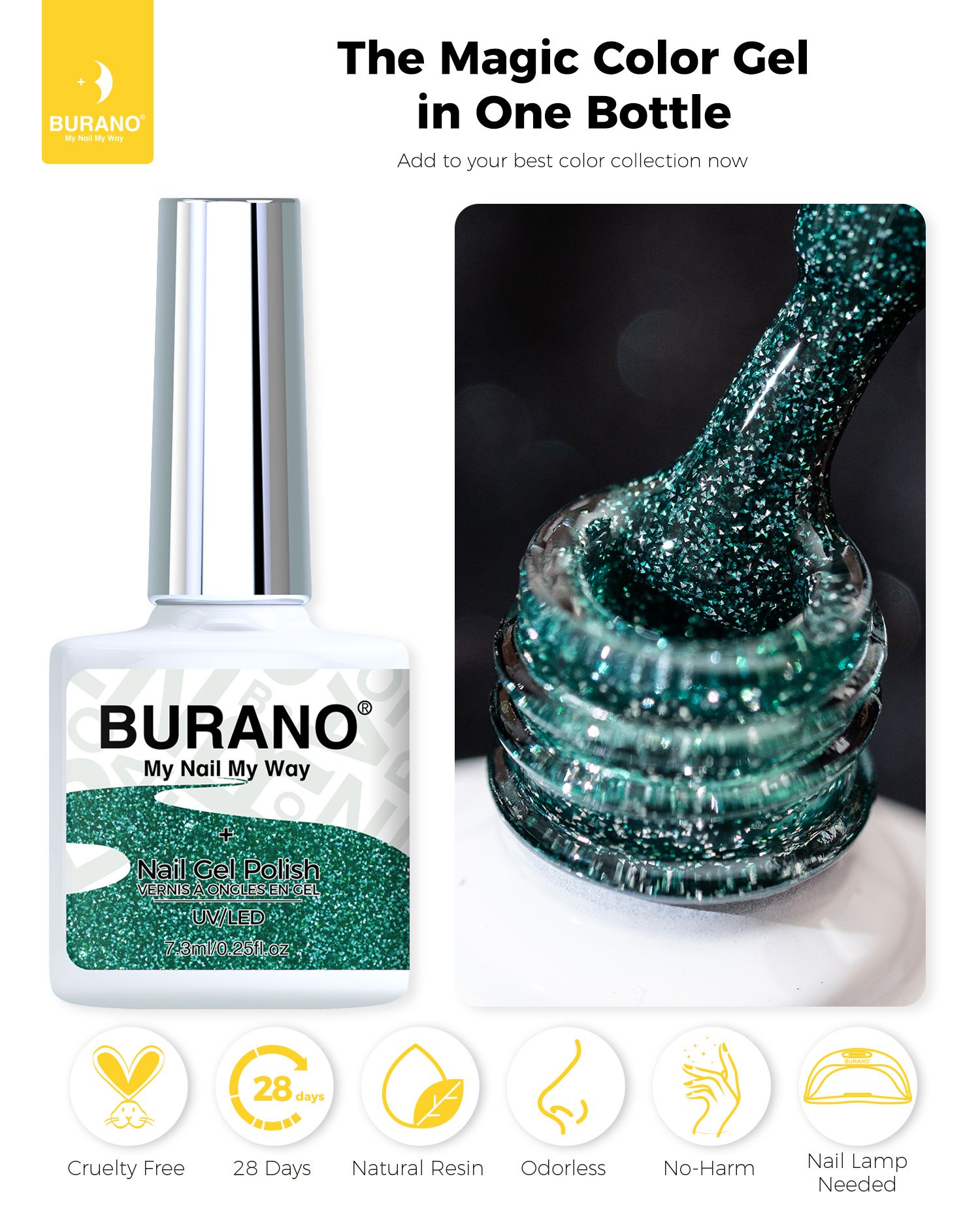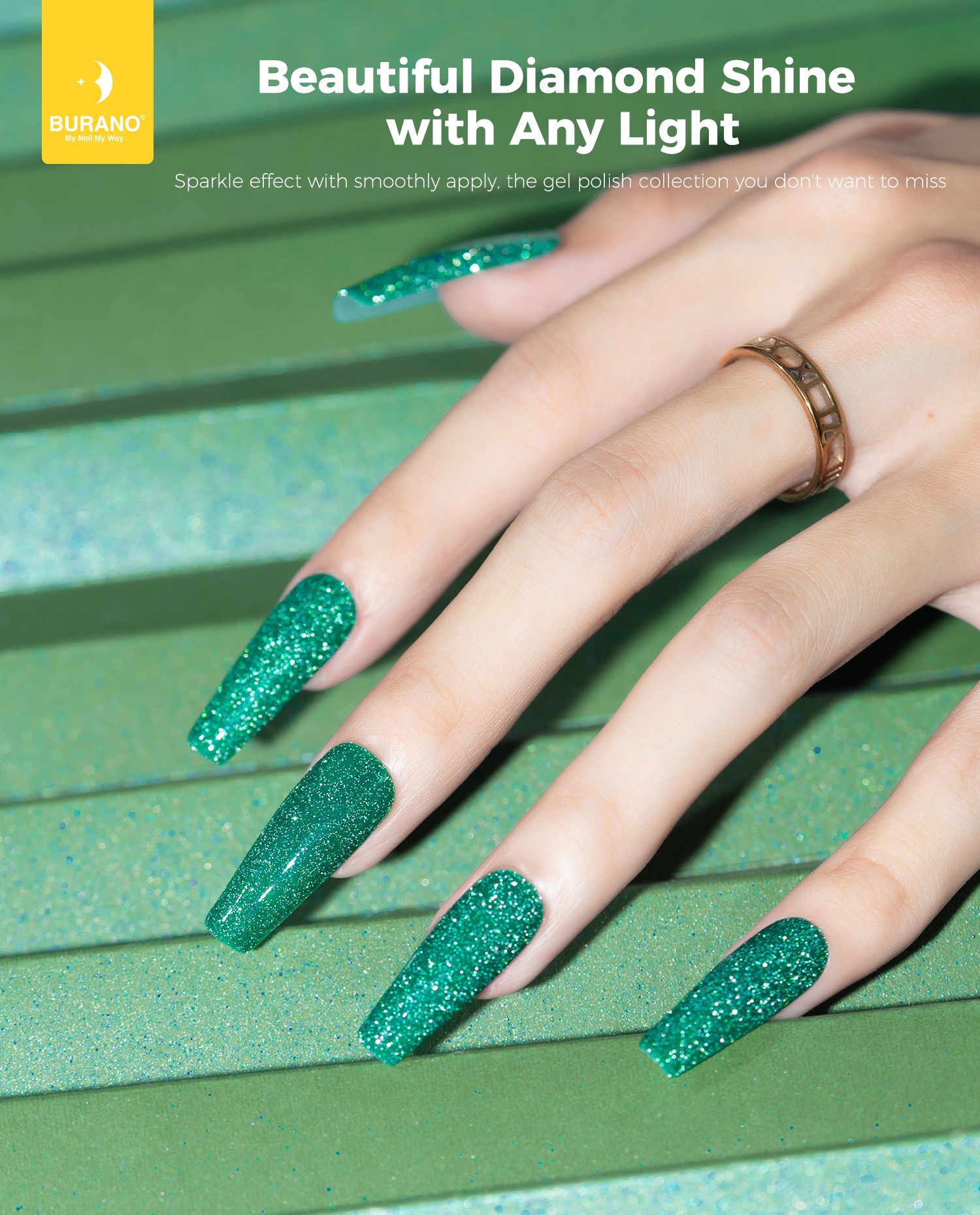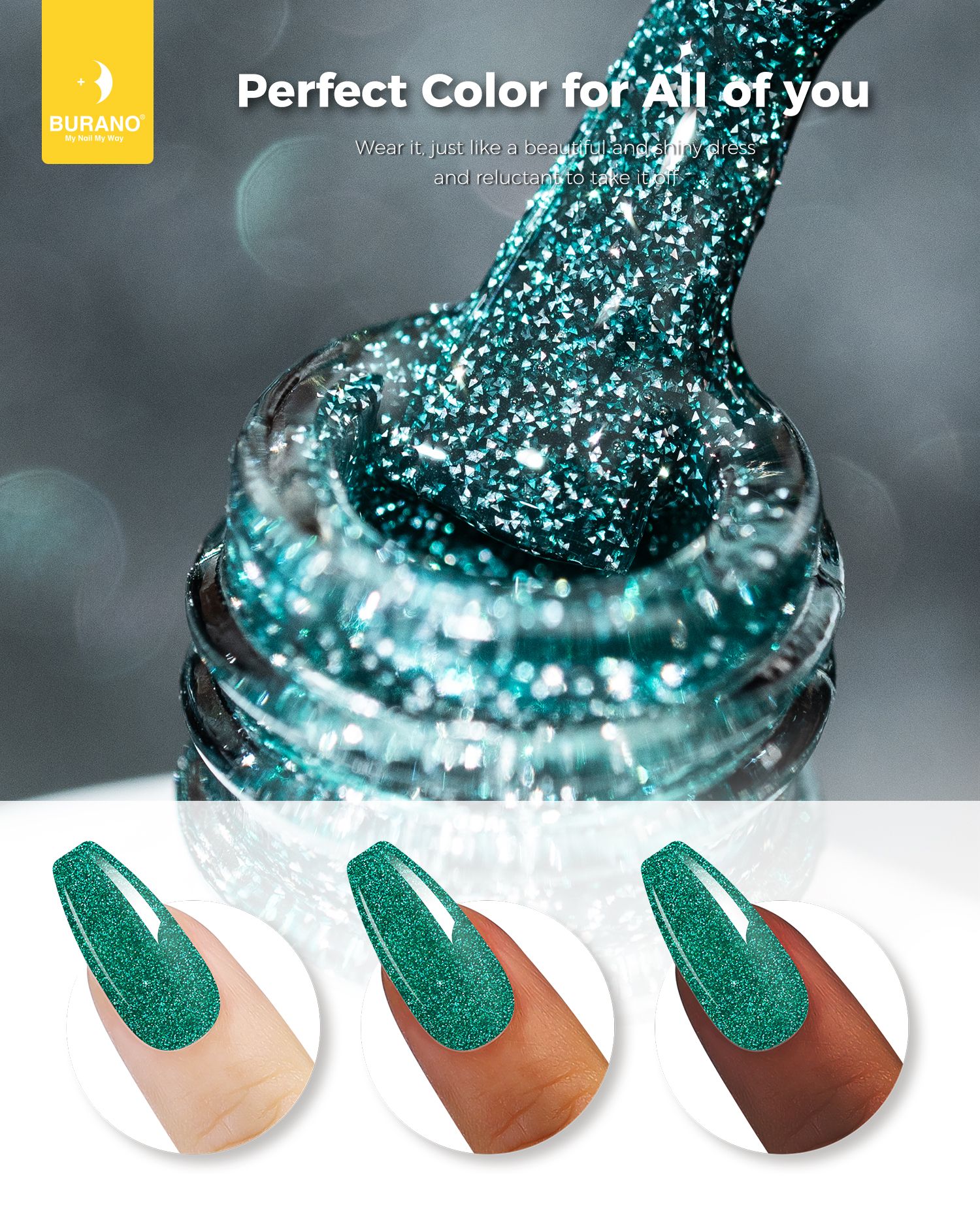 BURANO Reflective Glitter Gel Nail Polish, Green UV LED 7.3ml Sparkle Nail Polish Holographic Glitter Gel Curing Need for DIY Home S17