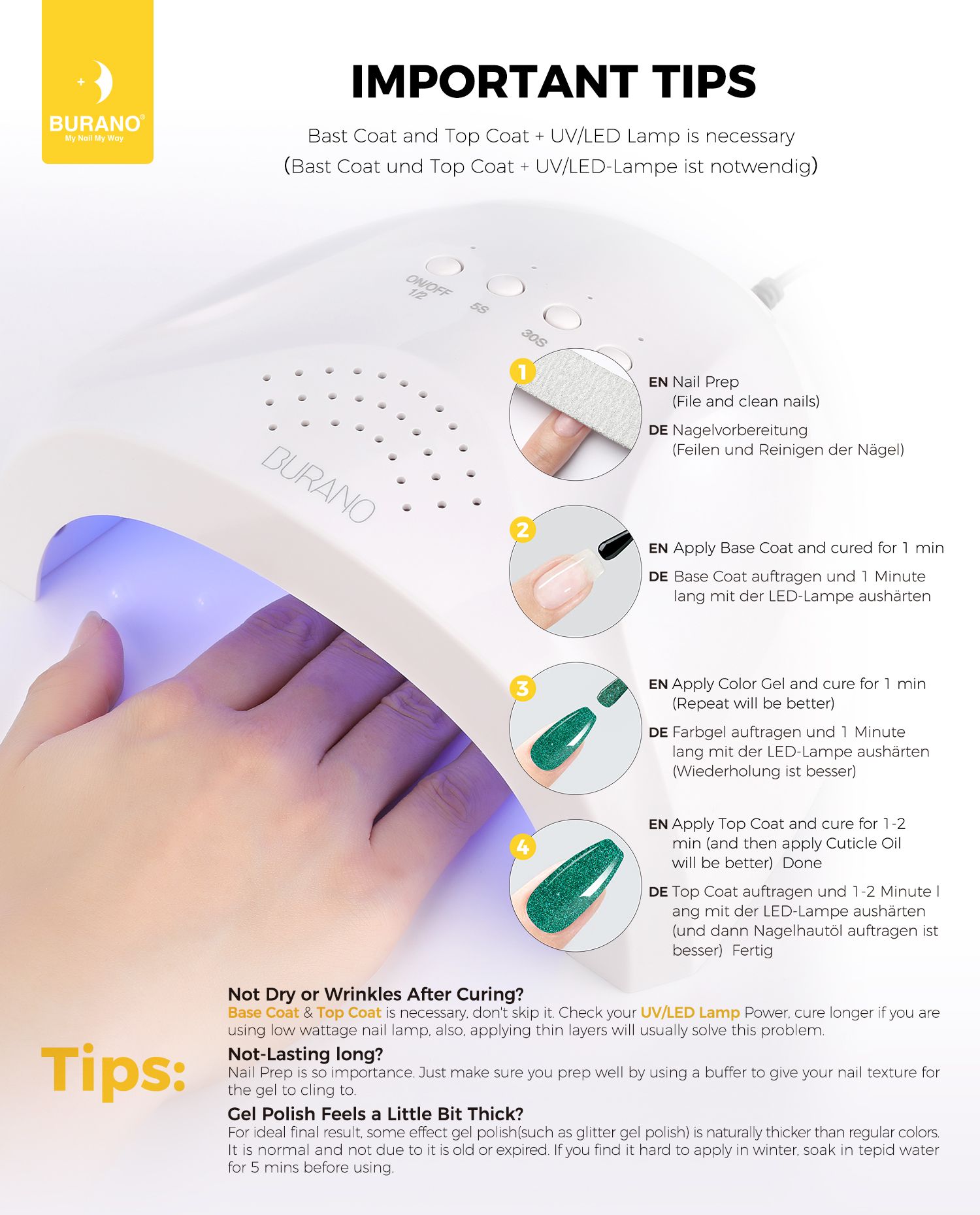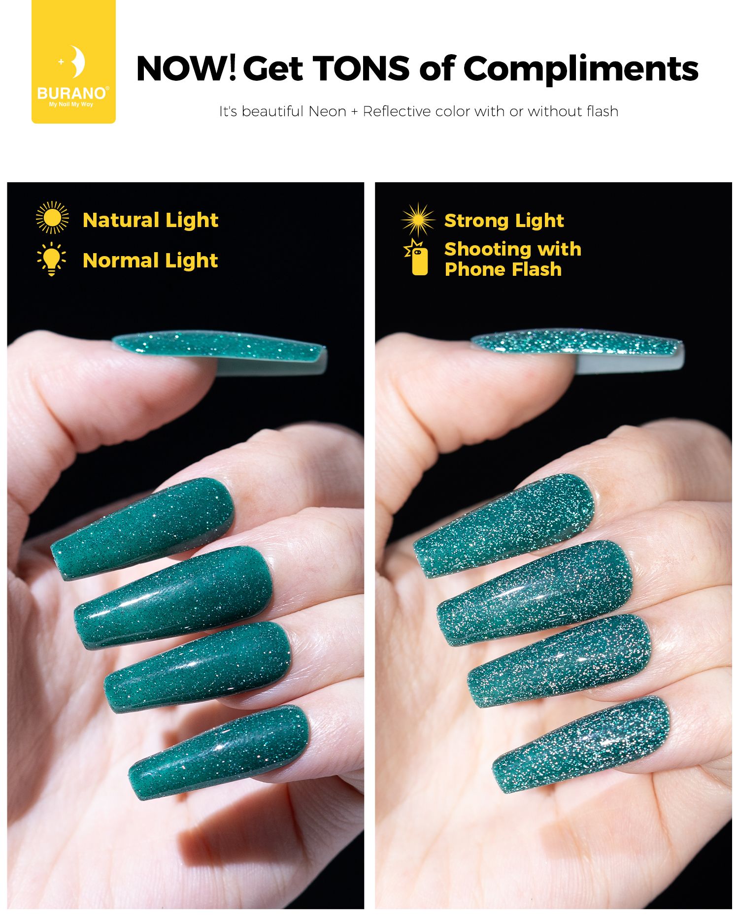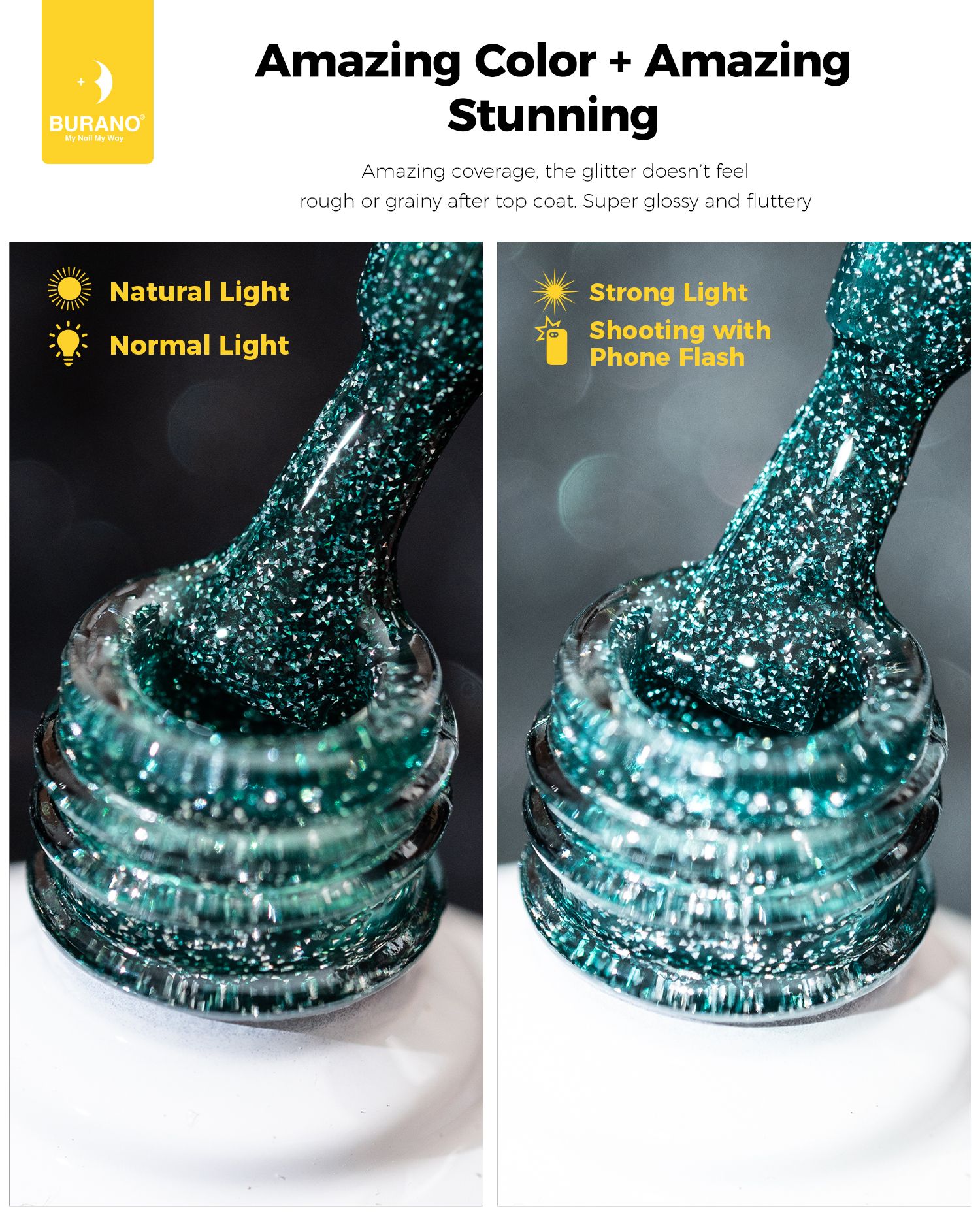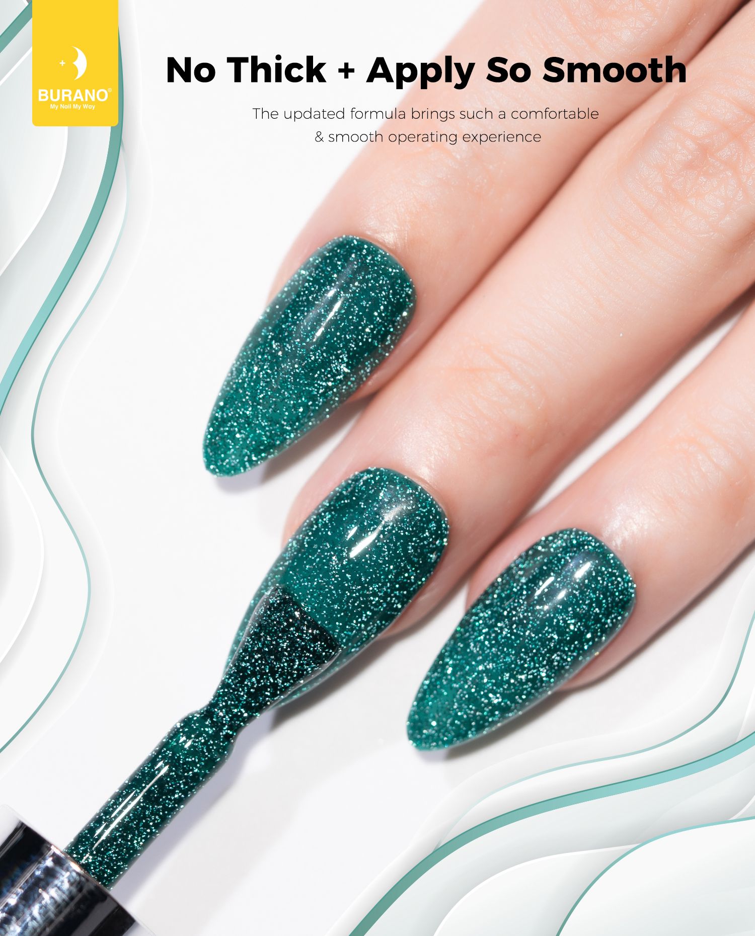 BURANO Reflective Glitter Gel Nail Polish, Green UV LED 7.3ml Sparkle Nail Polish Holographic Glitter Gel Curing Need for DIY Home S17