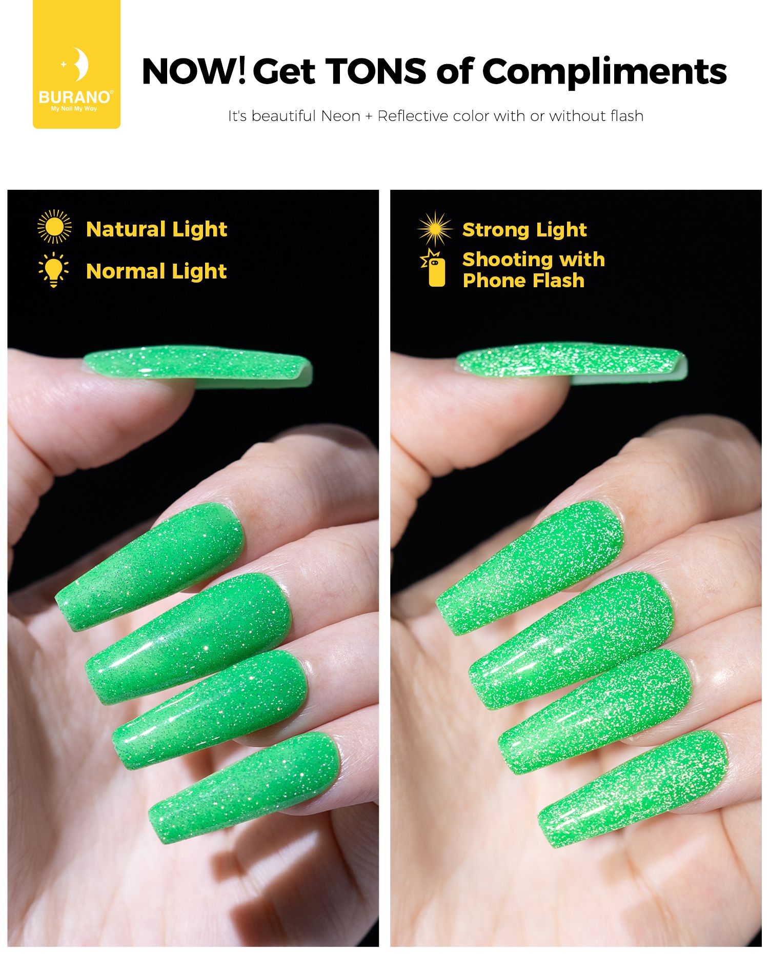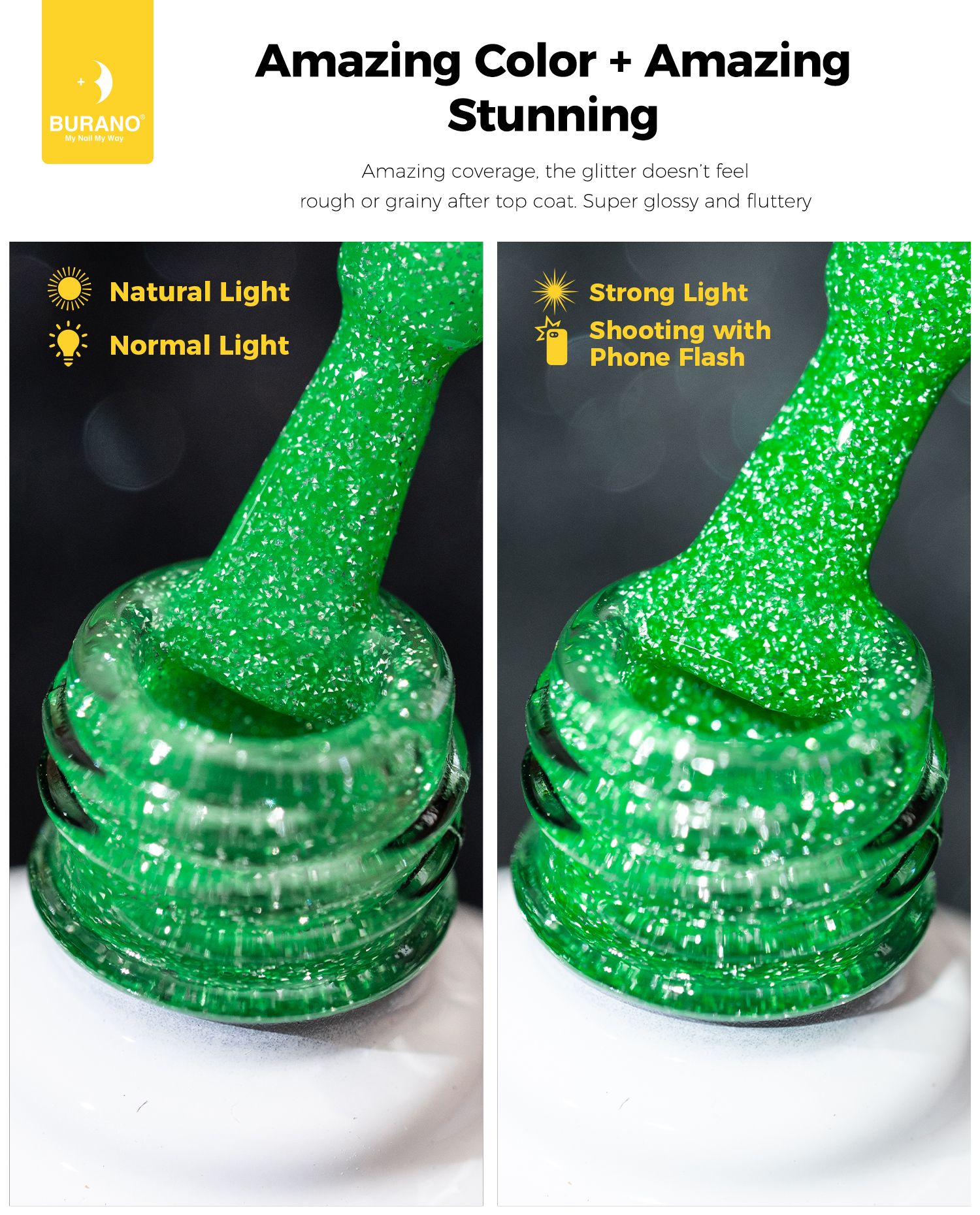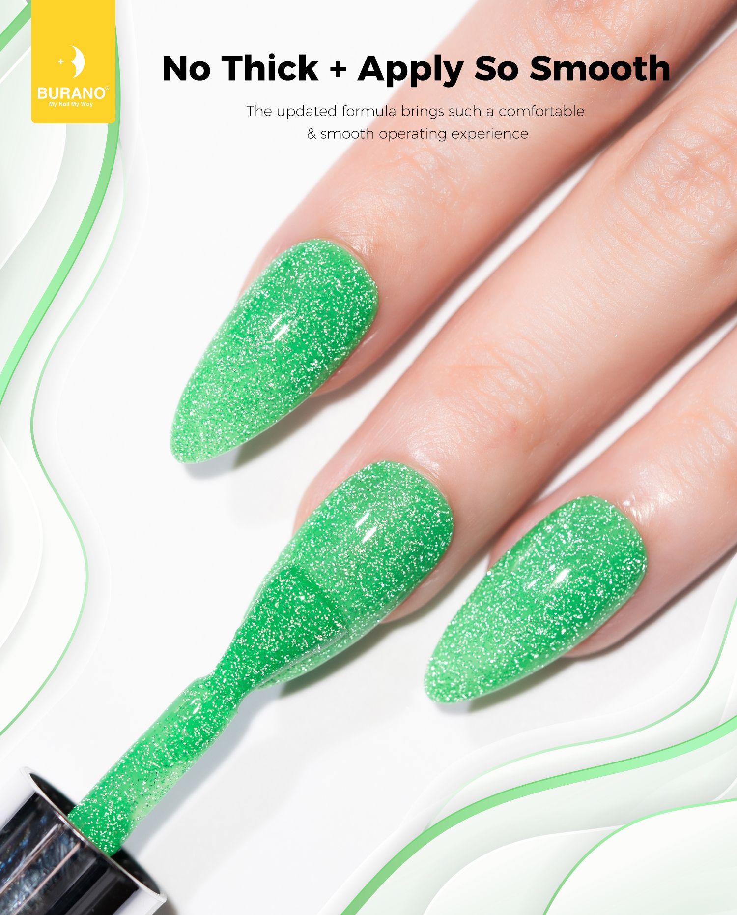 BURANO Green Reflective Glitter Gel Nail Polish, UV LED 7.3ml Sparkle Nail Polish Holographic Glitter Gel Curing Need for DIY Home S20