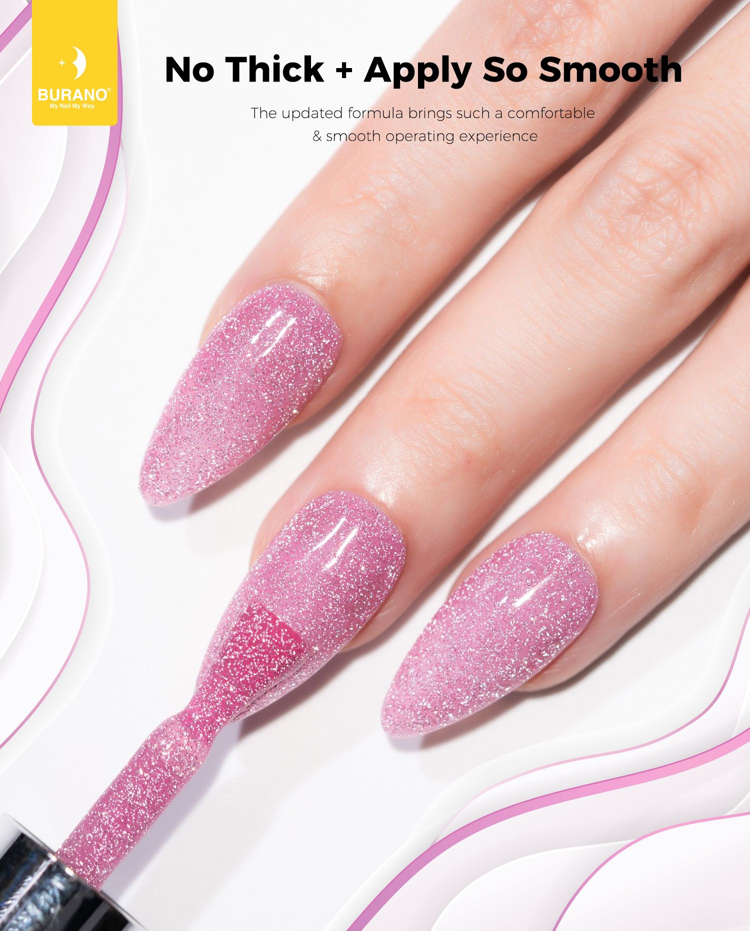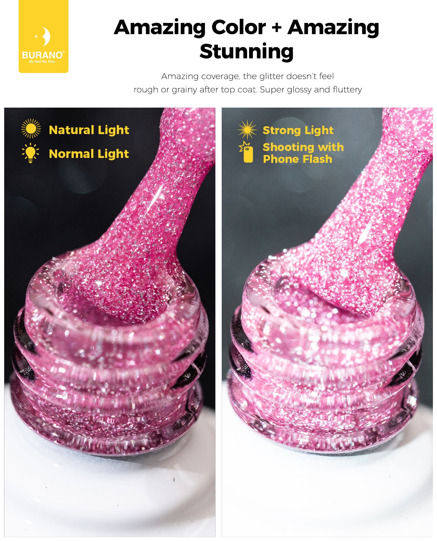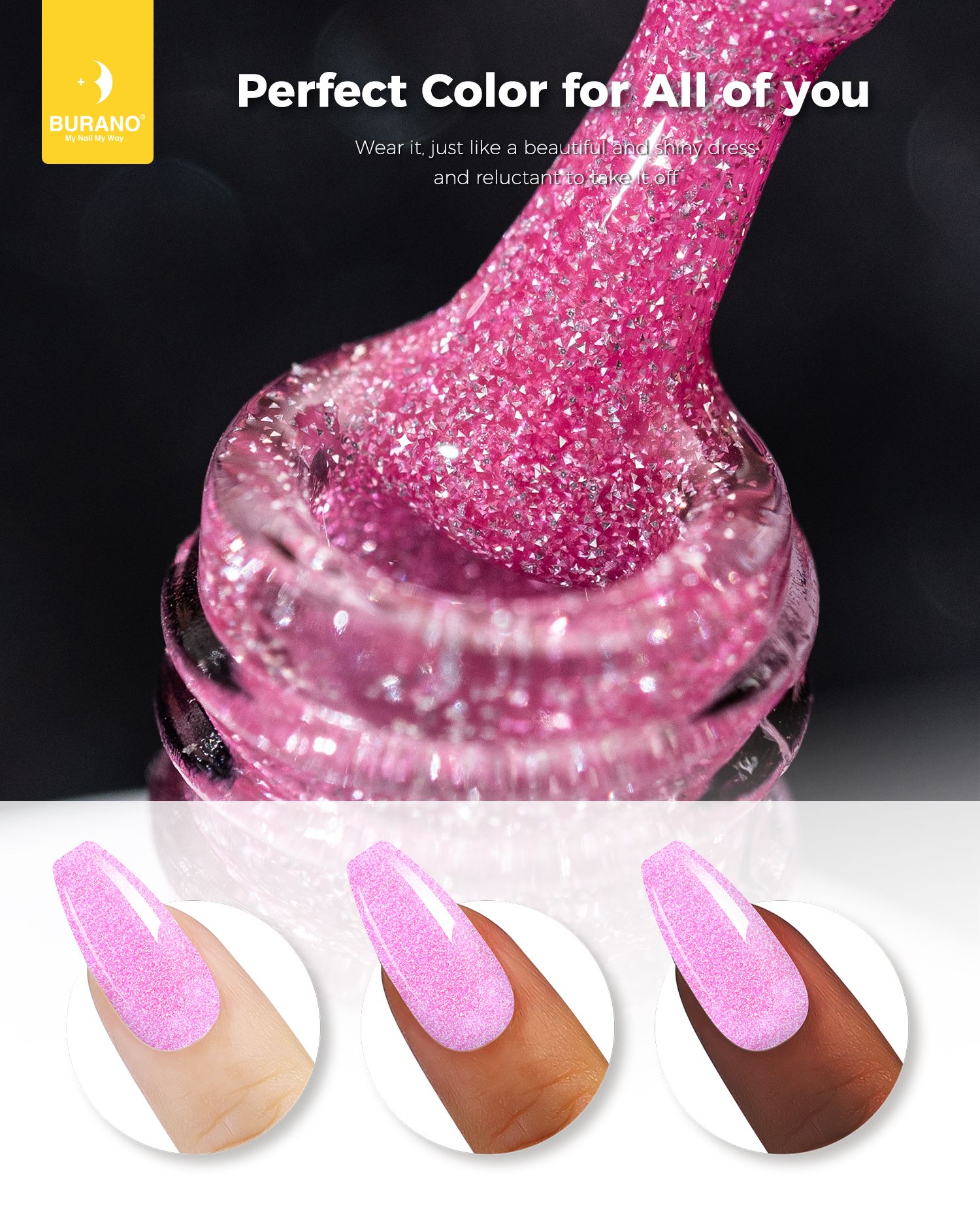 BURANO Pink Reflective Glitter Gel Nail Polish, UV LED 7.3ml Sparkle Nail Polish Holographic Glitter Gel Curing Need for DIY Home S21