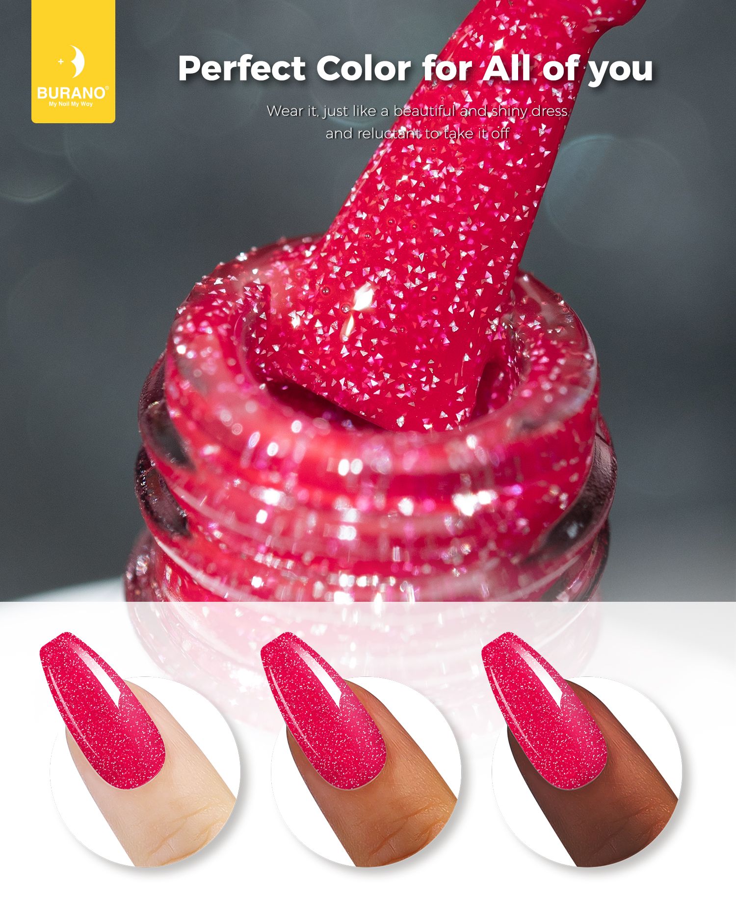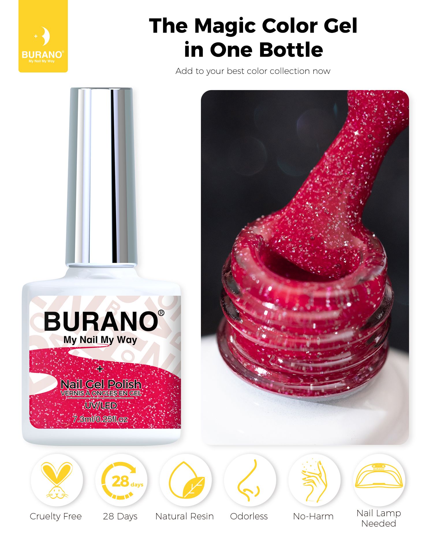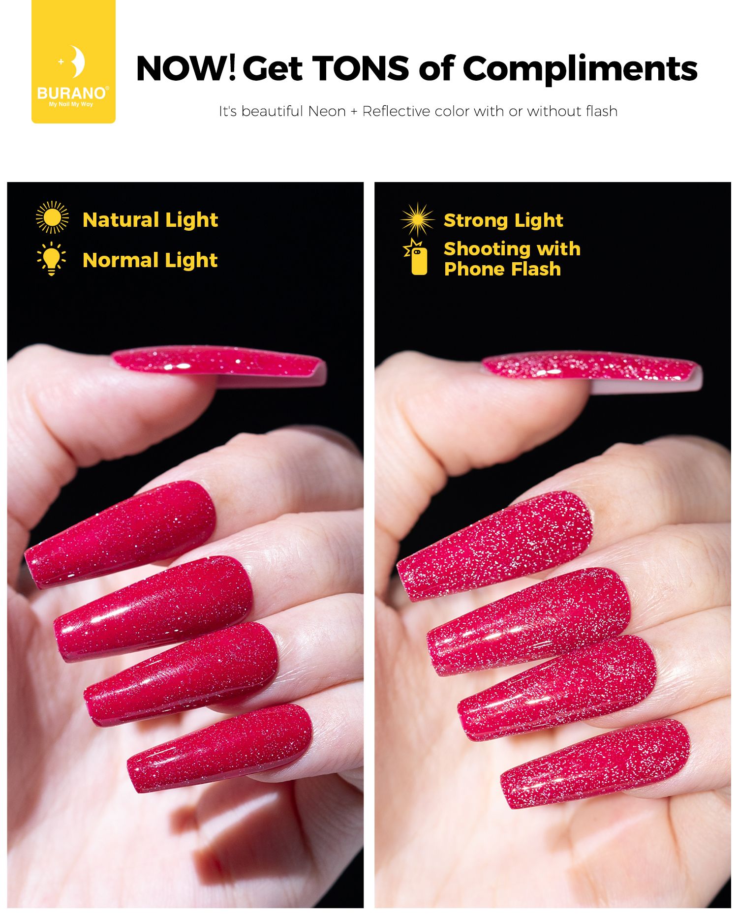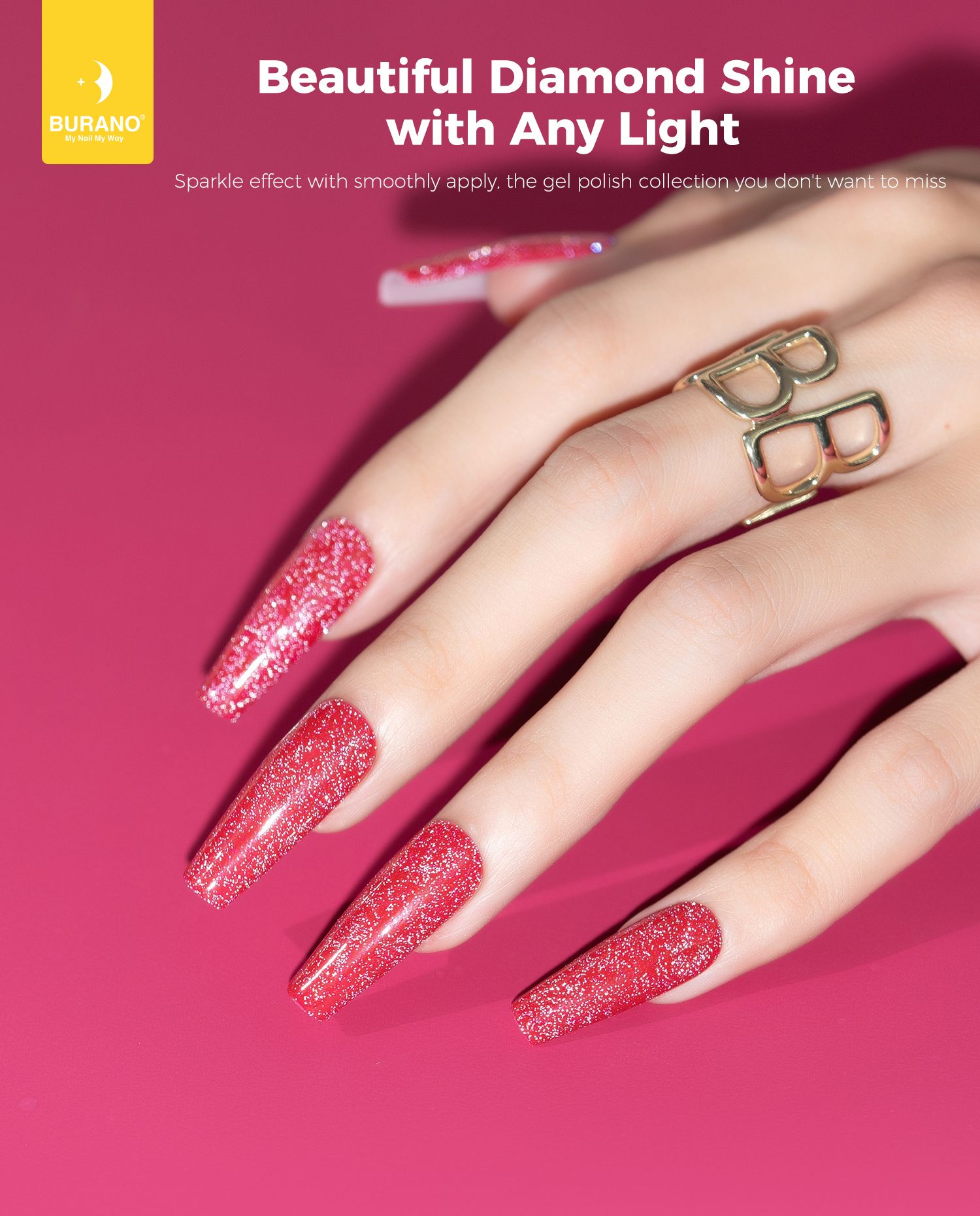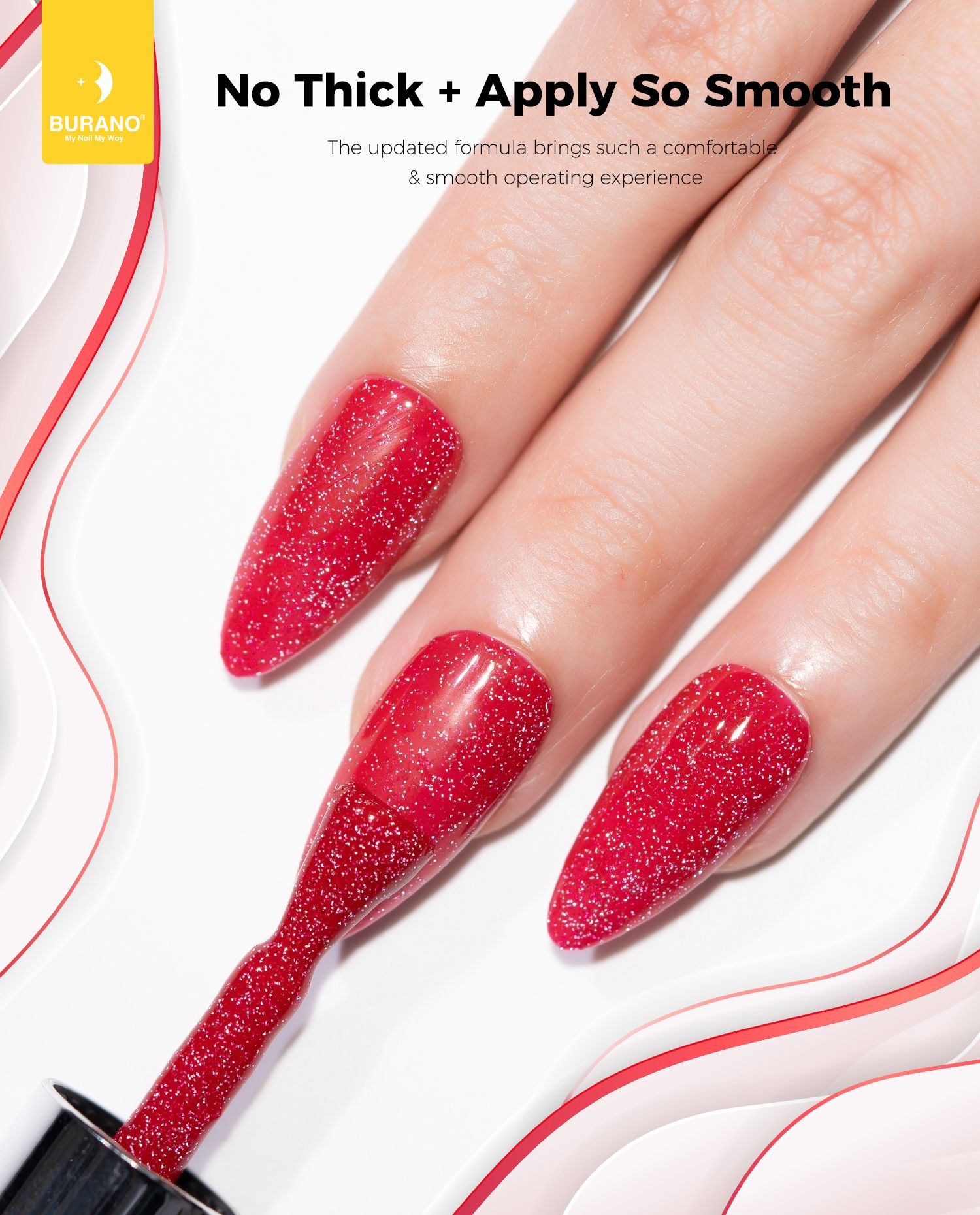 BURANO Red Reflective Glitter Gel Nail Polish, UV LED 7.3ml Sparkle Nail Polish Holographic Glitter Gel Curing Need for DIY Home S25