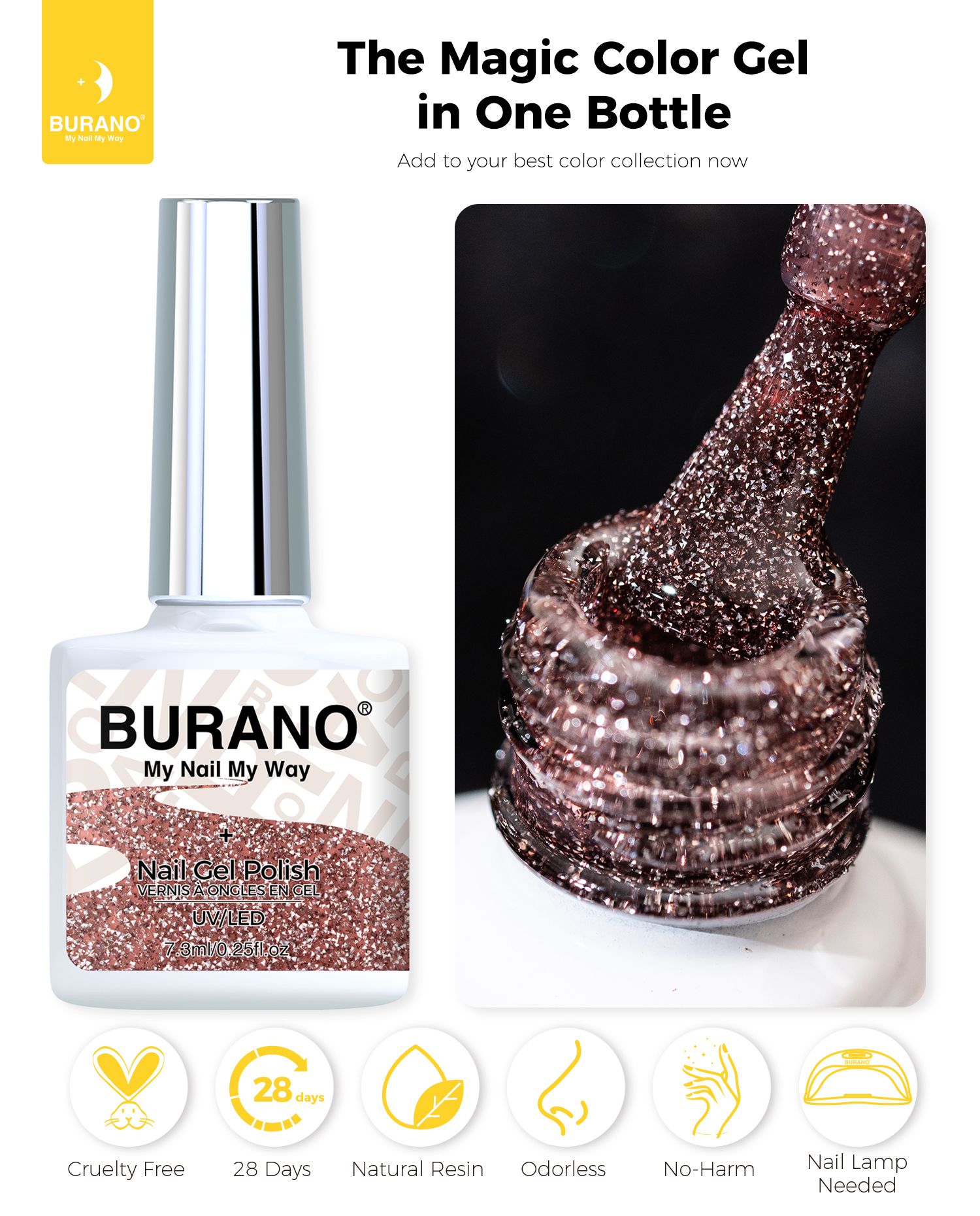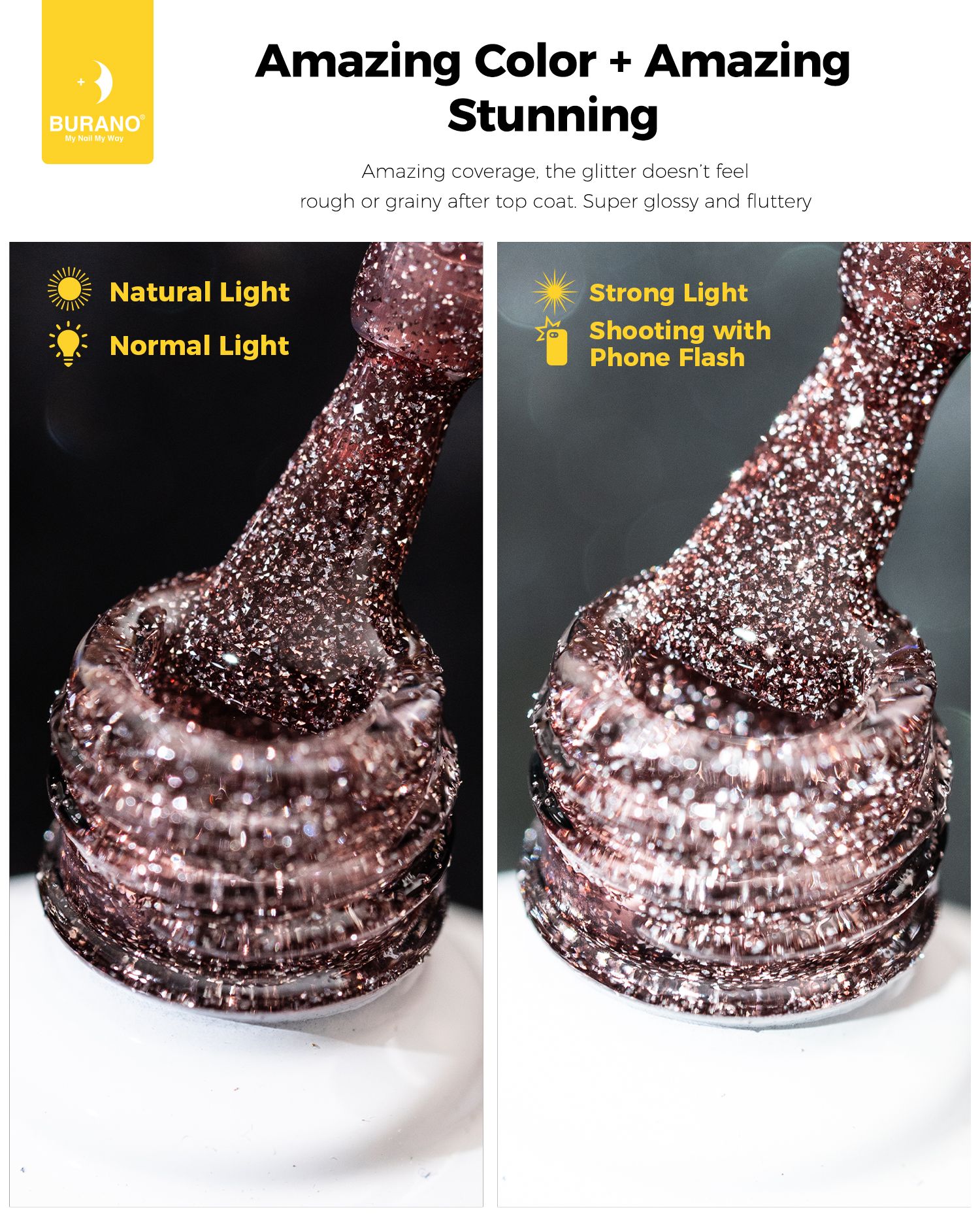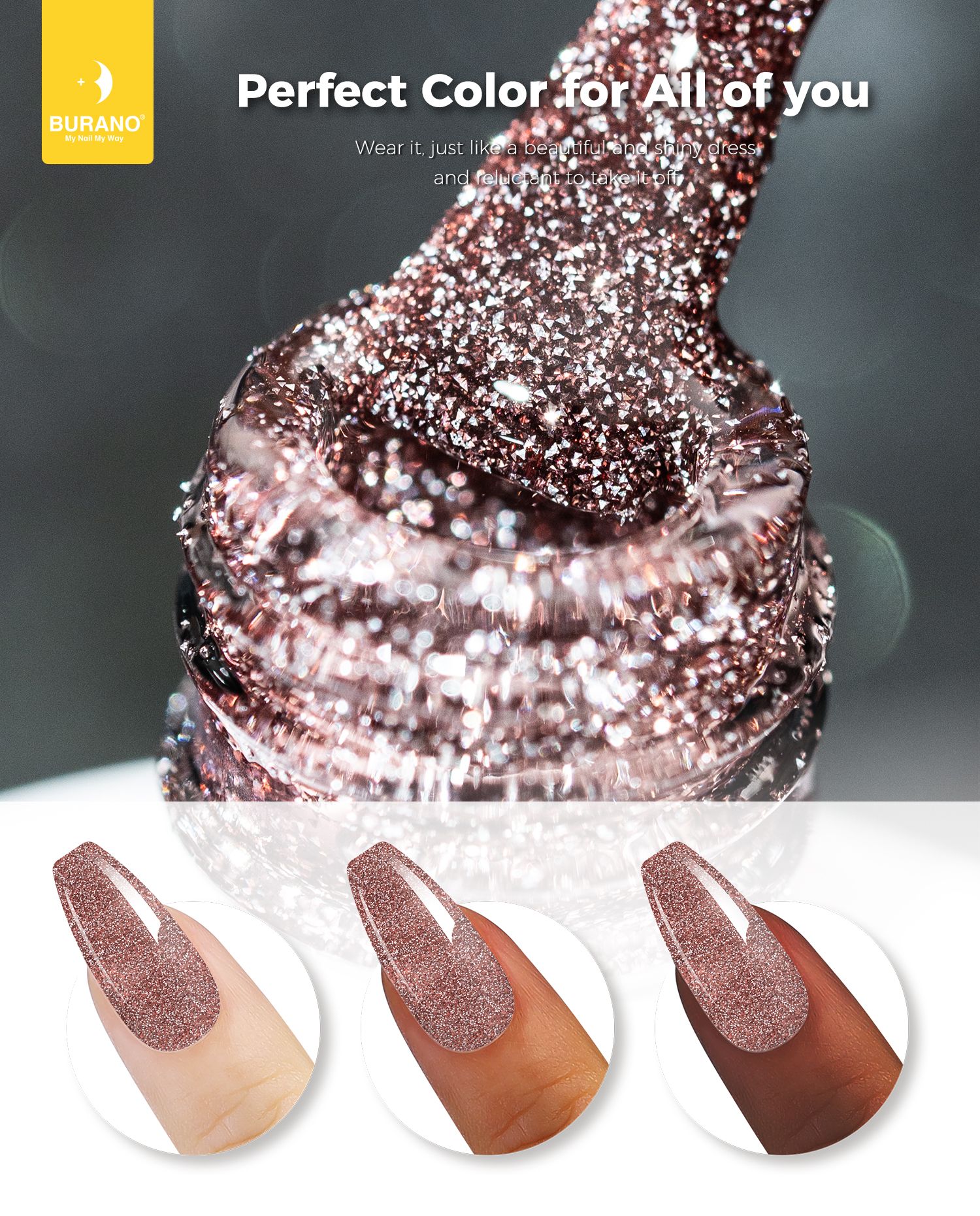 BURANO Reflective Glitter Gel Nail Polish, Diamond Brown UV LED 7.3ml Sparkle Nail Polish Holographic Glitter Gel Curing Need for DIY Home S3