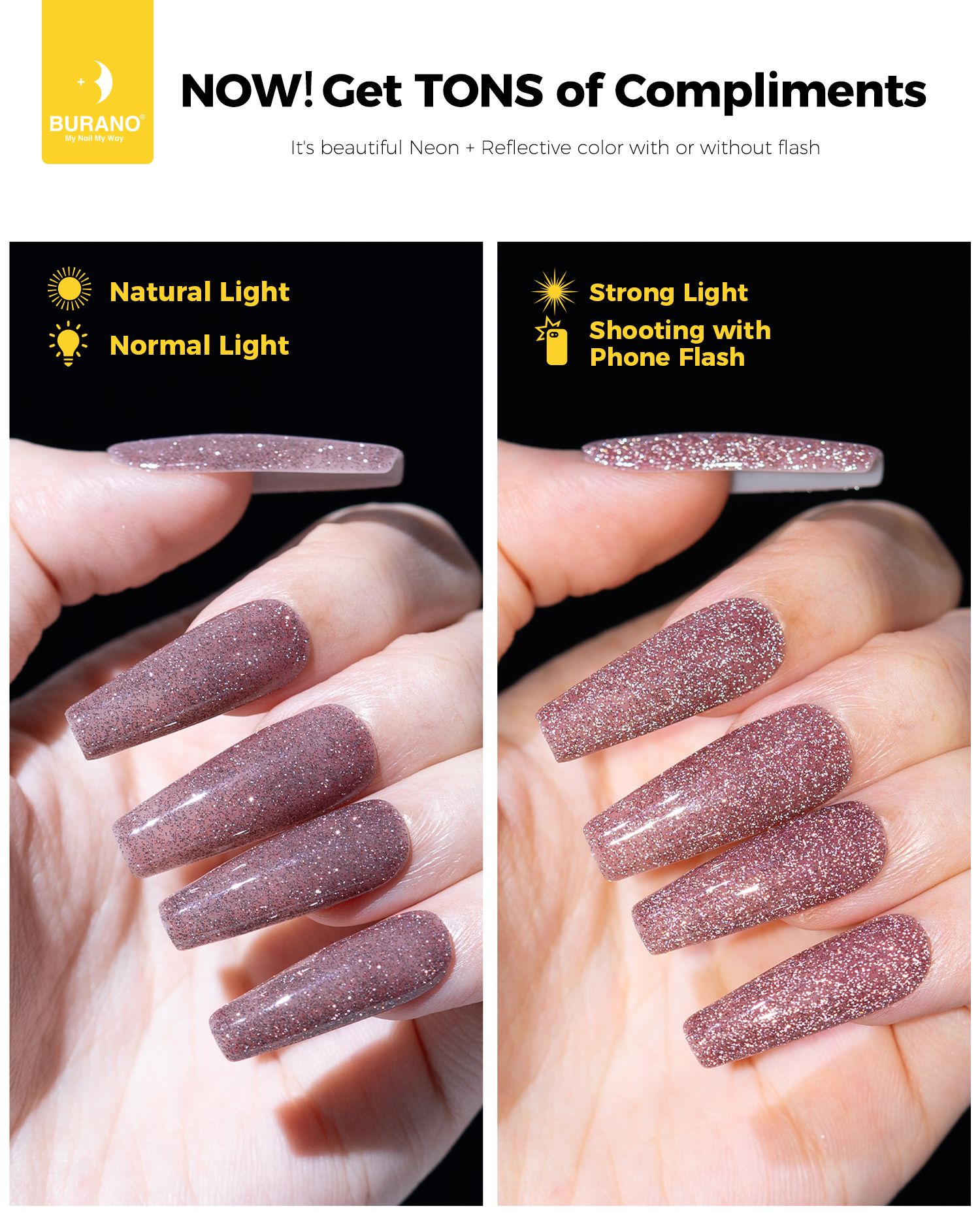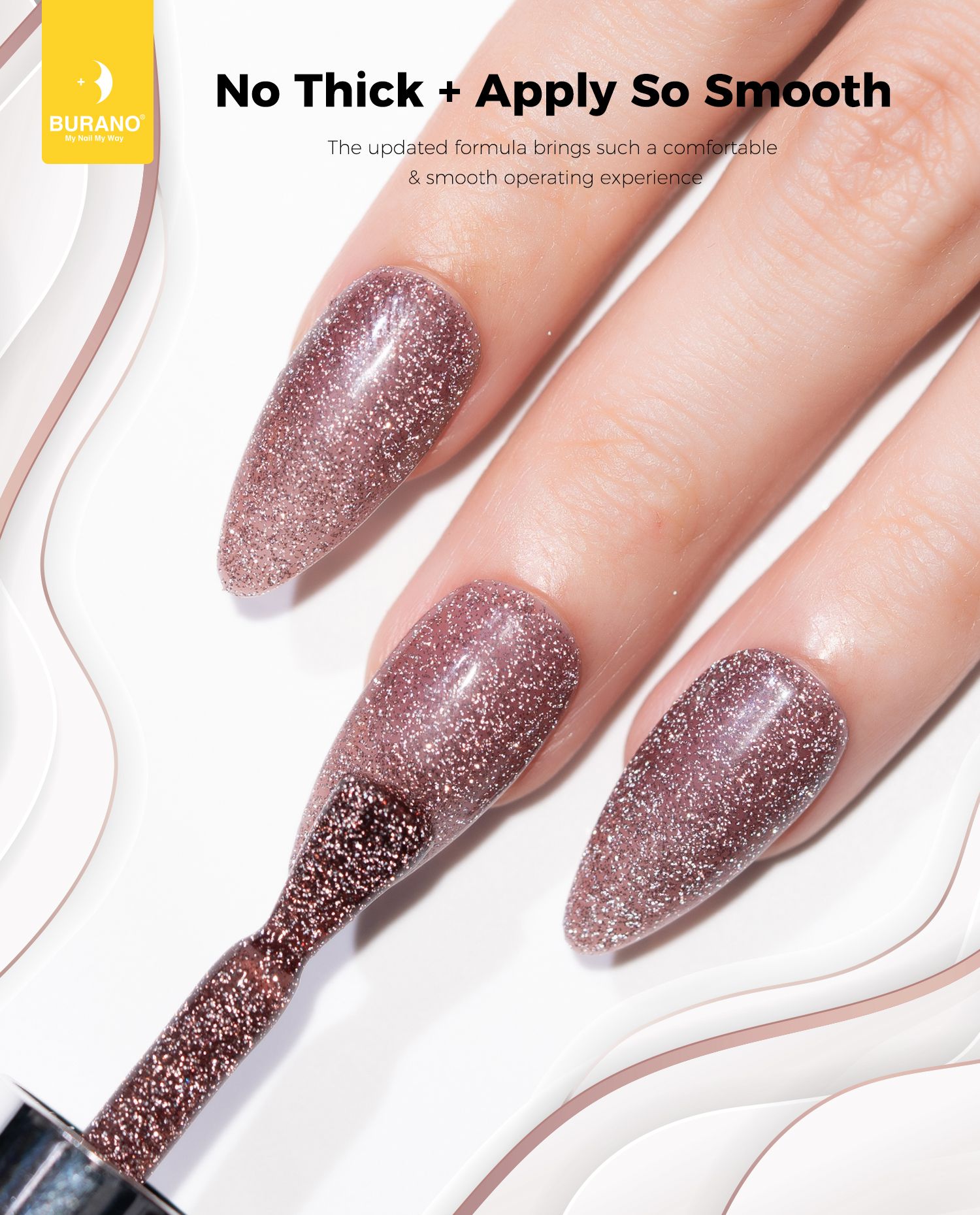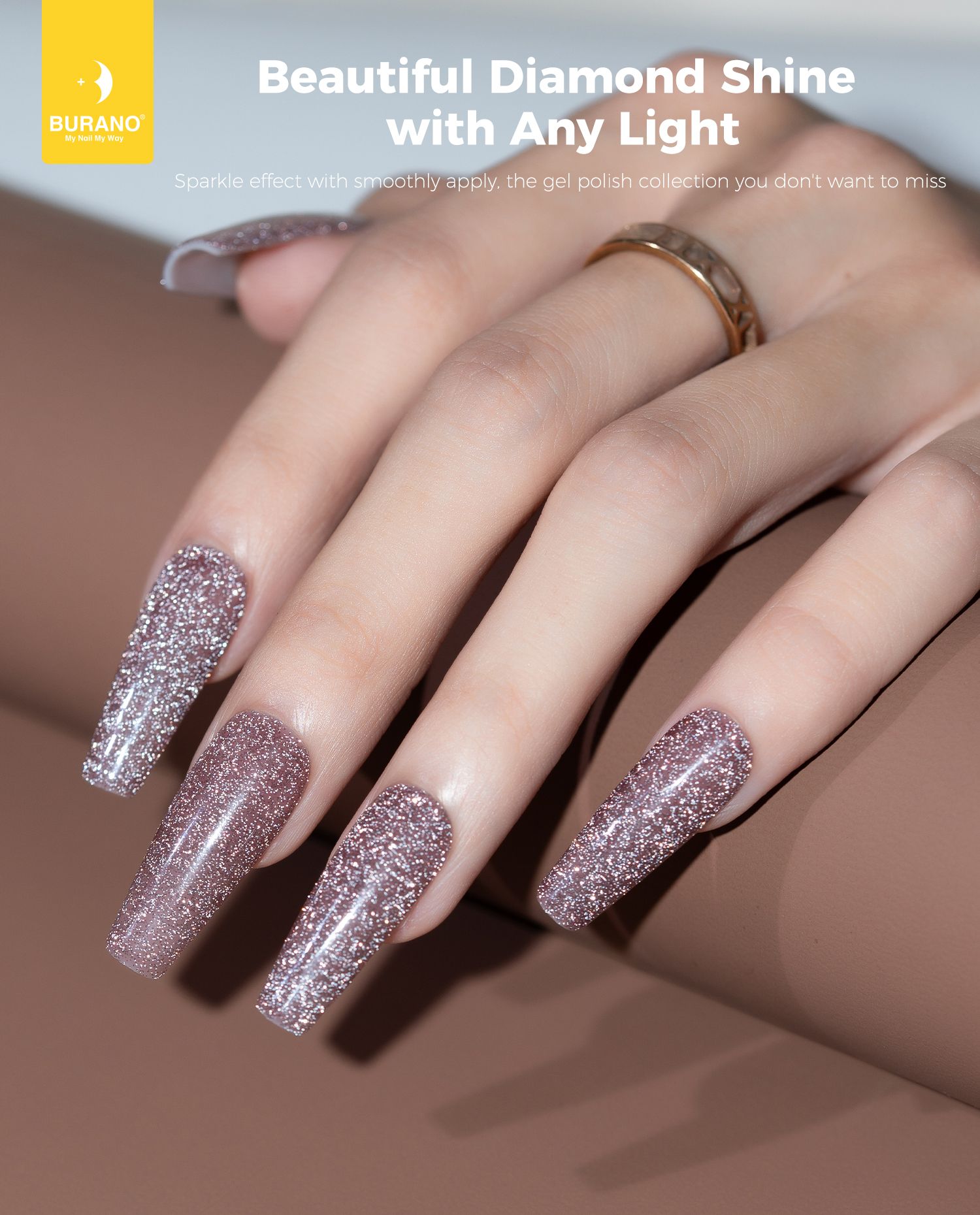 BURANO Reflective Glitter Gel Nail Polish, Diamond Brown UV LED 7.3ml Sparkle Nail Polish Holographic Glitter Gel Curing Need for DIY Home S3