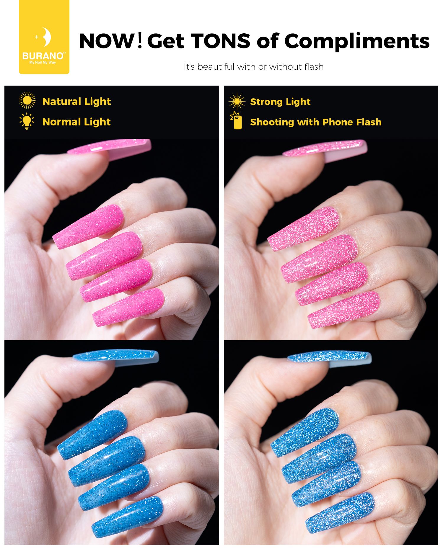 BURANO Pink Reflective Glitter Gel Nail Polish, 2 Bottles UV Sparkle Nail Polish Blue Gel, 7.3ml Holographic Glitter Polish Curing Need for Nail Salon Home DIY S5 S23